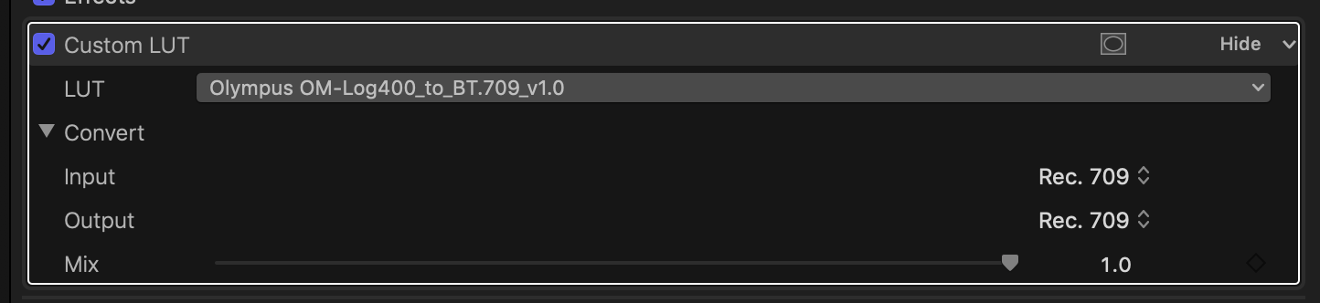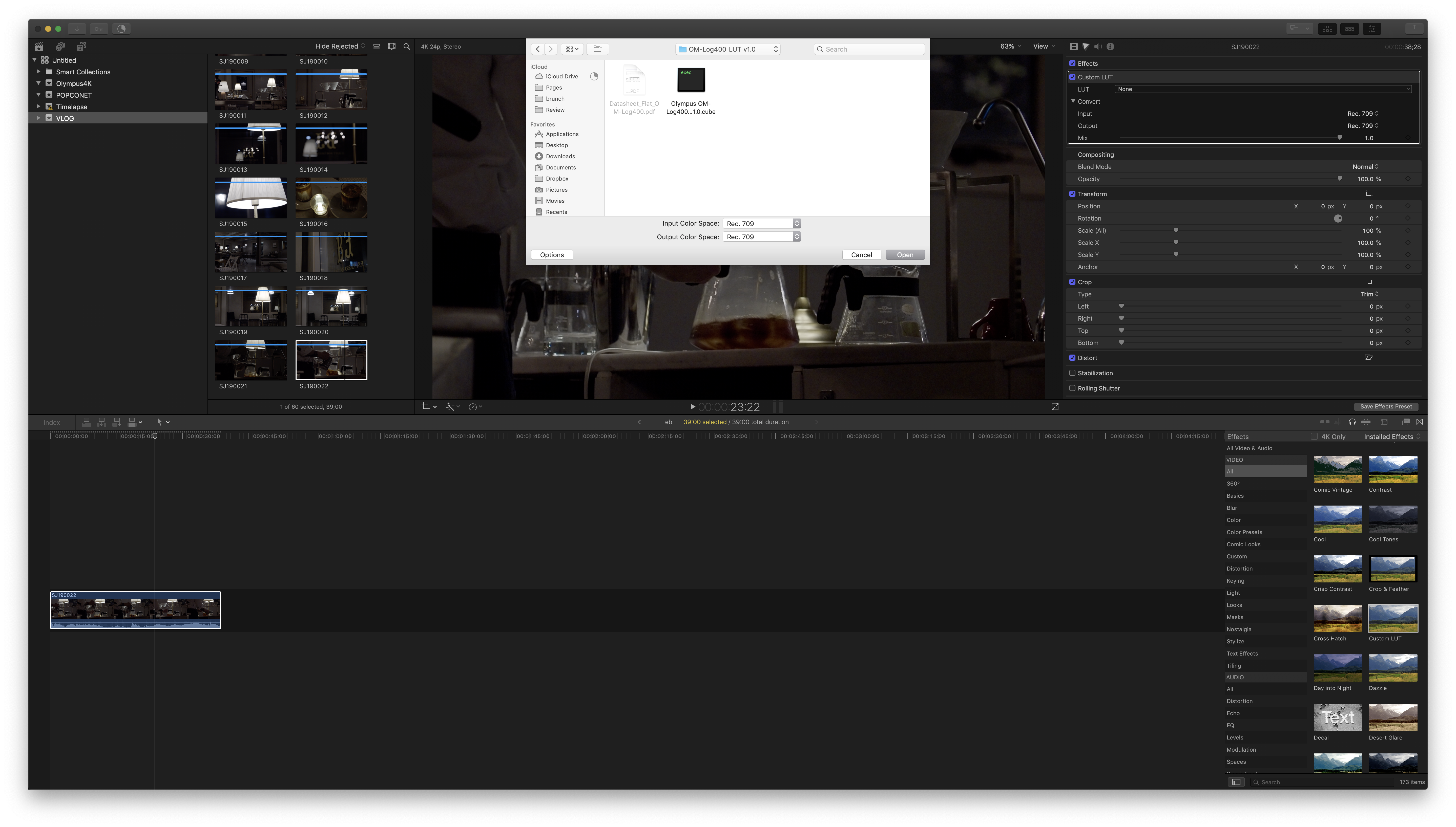 저는 맥의 파이널 컷 프로 X에서 E-M1X OM-LOG400용 LUT를 불러와 적용했습니다. LUT를 적용한 것만으로도 대비와 컬러가 살아나지만, 추가로 컬러와 노출, 채도 등을 보정하면 더 좋은 결과물을 얻을 수 있습니다. 무엇보다 일반 영상 촬영에서 명/암부 손실 때문에 노출 보정에 제약이 있었던 것과 컬러 보정시 색이 틀어지는 것에서 자유로워진 것이 만족스럽습니다.