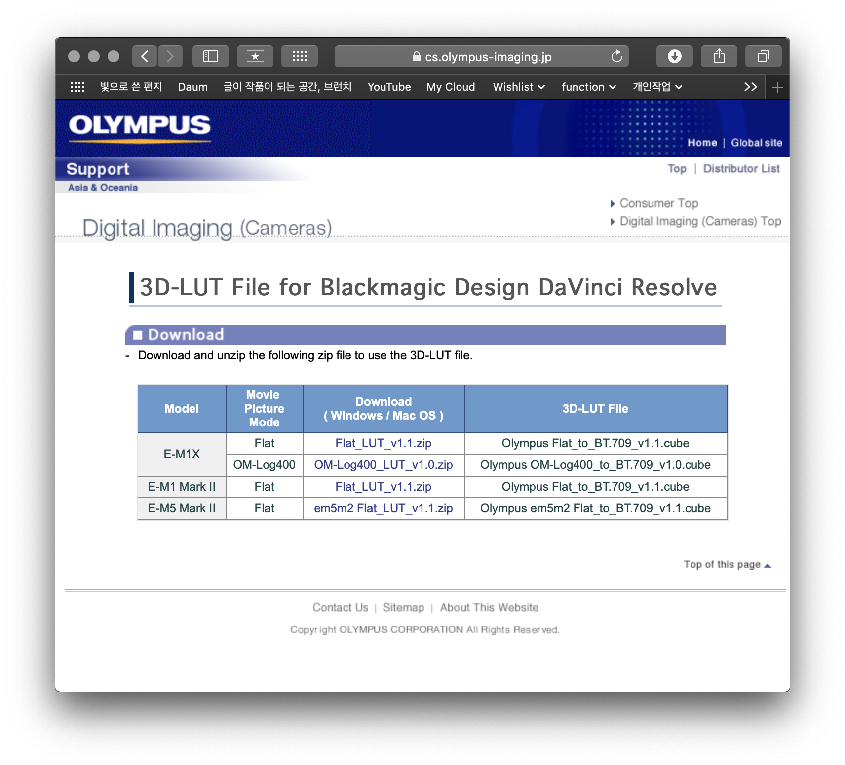 하지만 편집 프로그램에서 OM-LOG400 적용 영상을 조금만 만져봐도 그 장점이 대단하다는 것을 알게 됩니다. 그리고 손쉽게 OM-LOG400 영상을 보정할 수 있도록 올림푸스에서 LUT 파일을 배포하고 있습니다.