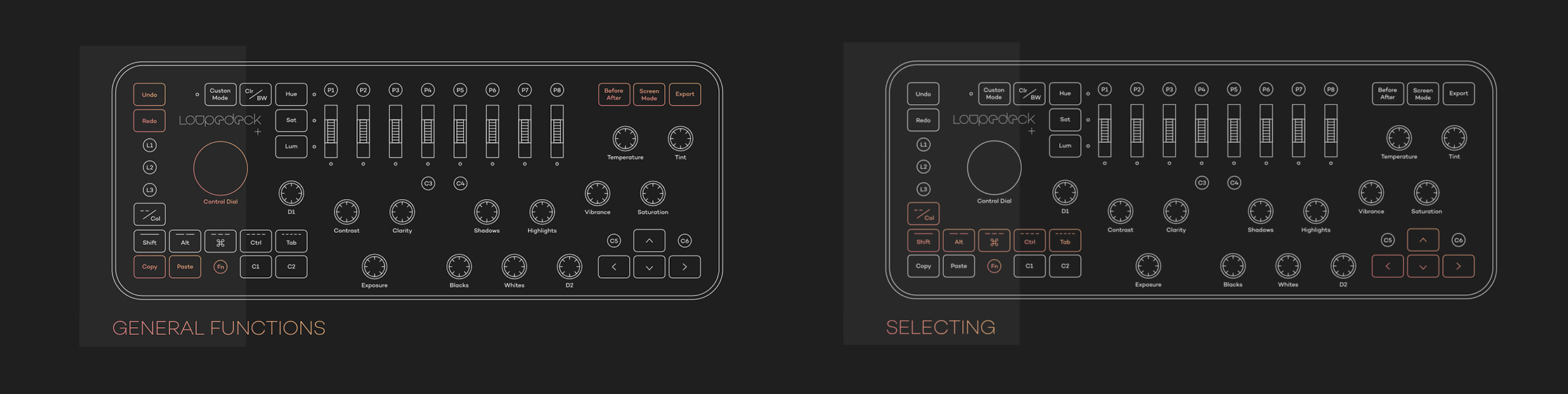 전용 버튼과 다이얼로 작업 효율을 향상시키는 것이 루프덱 플러스의 가장 큰 장점이지만, 그 못지 않게 큰 매력은 사진과 영상을 넘나들며 다양한 편집 프로그램에 사용할 수 있다는 점입니다. Adobe의 포토샵, 프리미어, 라이트룸에 모두 호환되고 MacOS의 동영상 편집 프로그램 파이널 컷 프로 X에도 사용이 가능합니다. 포토그래퍼와 비디오그래퍼를 겸하는 크리에이터에게는 하나 갖춰 놓으면 작업이 즐거워지는 뛰어난 도구인 셈이죠.