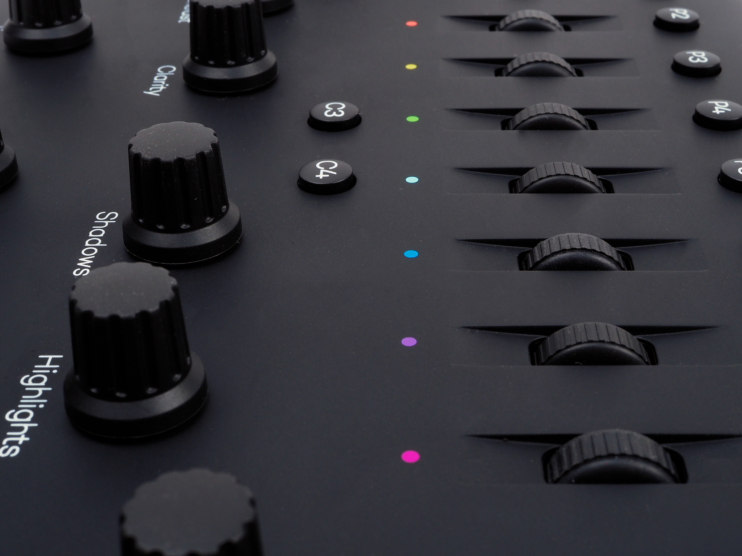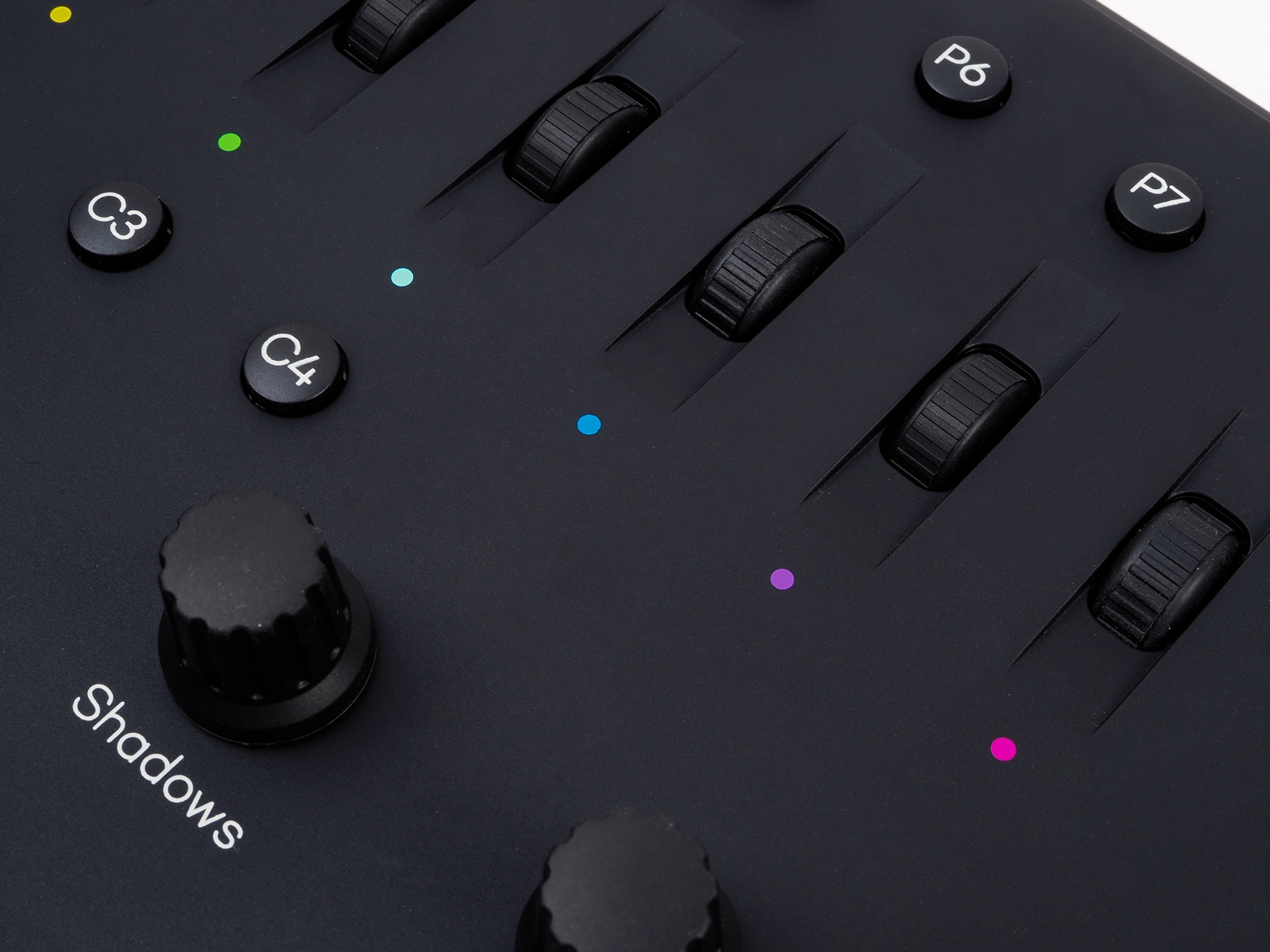 섀도우와 미드 톤, 하이라이트로 나눠 밝기, 채도, 색조 설정이 구분된 컬러 휠의 조작을 루프덱 플러스의 노브를 이용하면 매우 간편하고 빠르게 조작할 수 있습니다. 9개의 노브를 왼쪽, 가운데, 오른쪽으로 나눠 각각의 영역을 조작할 수 있고, 커스텀 모드를 활성화하면 색조를 섬세하게 조작할 수 있습니다. 마우스보다 세부 조작에서 월등한 것은 당연합니다.