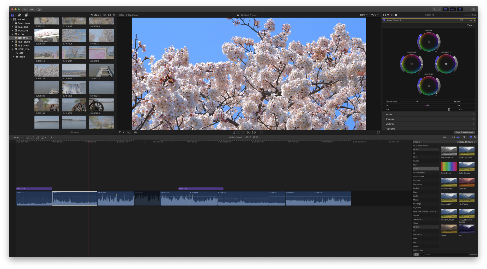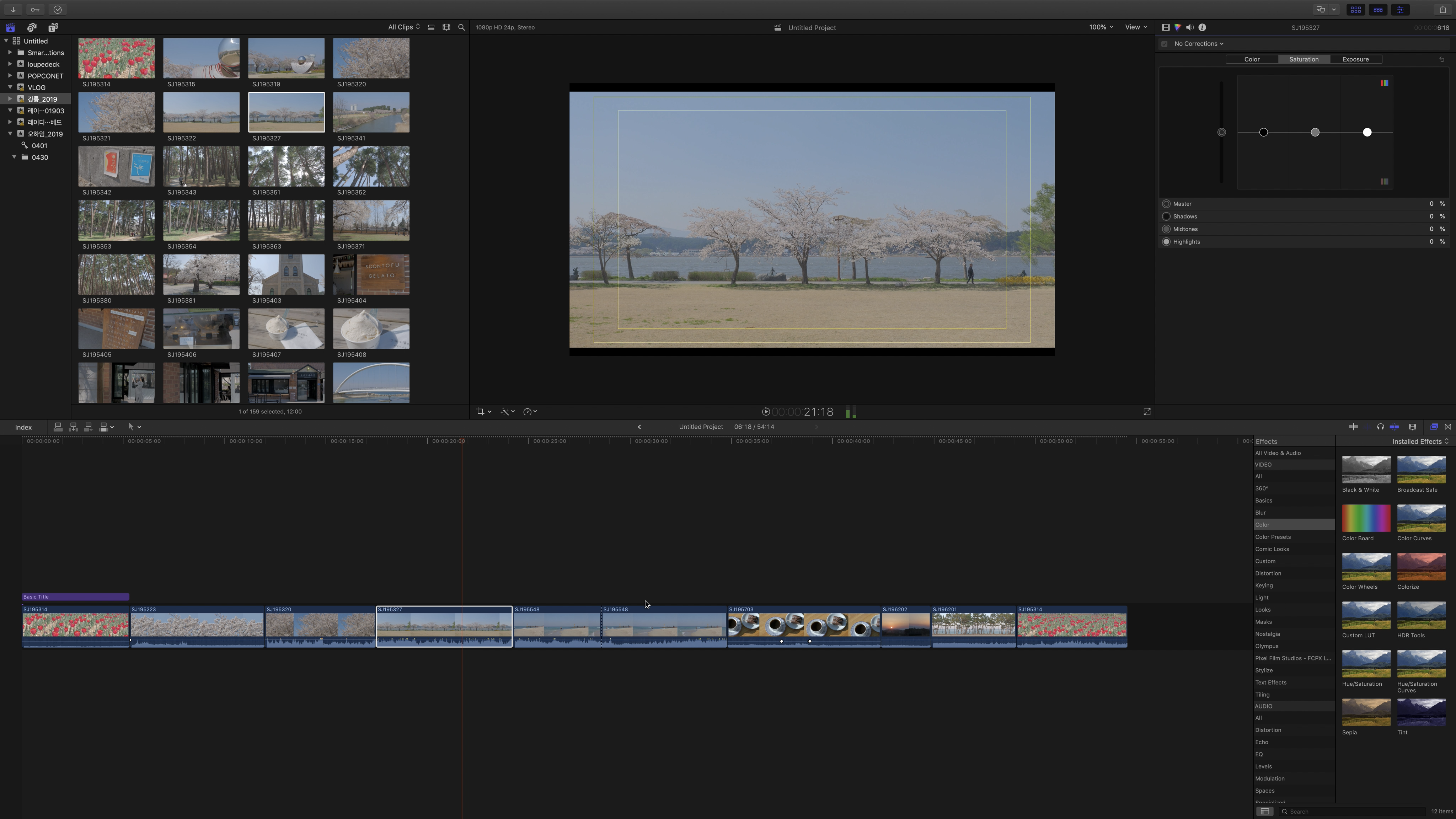 나머지 노브 역시 버릴 것 하나 없이 컬러 그레이딩부터 구간 탐색 등 편집에 자주 사용하는 기능들을 충실히 담당하고 있습니다. 처음 파이널 컷 관련 설정을 볼 땐 라이트룸에서 제공하는 기본 옵션에 비해 다소 부족하다는 생각이 들어 아쉬웠는데, 컬러 휠을 이용해 영상의 컬러그레이딩 작업을 해 보니 오히려 우위에 있다는 생각이 들었습니다.