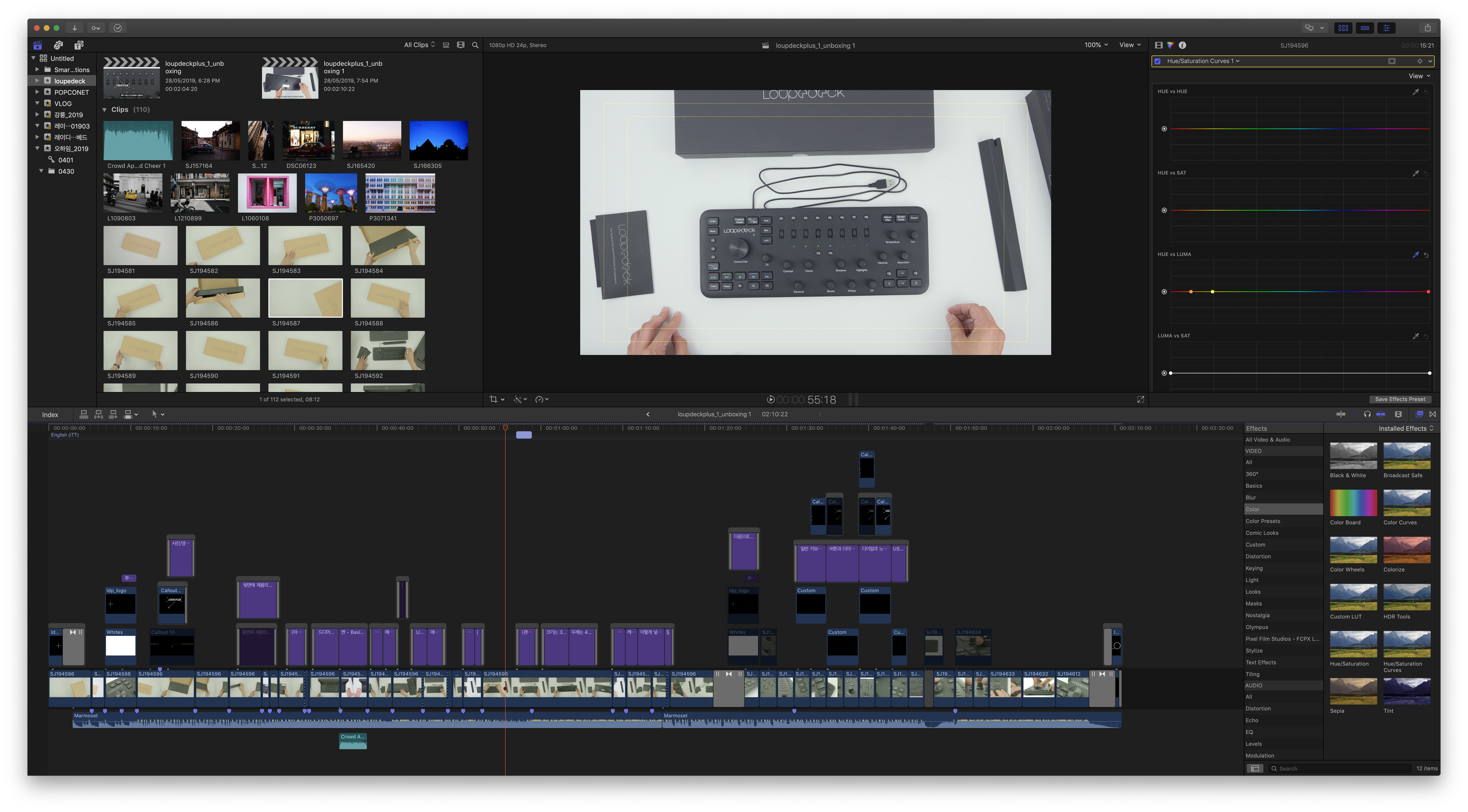 루프덱 플러스는 많은 분들이 사용하는 영상 편집 툴 Adobe 프리미어 프로와 Mac OS의 파이널 컷 프로 X를 모두 지원합니다. 저는 맥을 사용하고 있어 파이널 컷 프로 X를 통해 영상 편집 작업을 하고 있습니다.