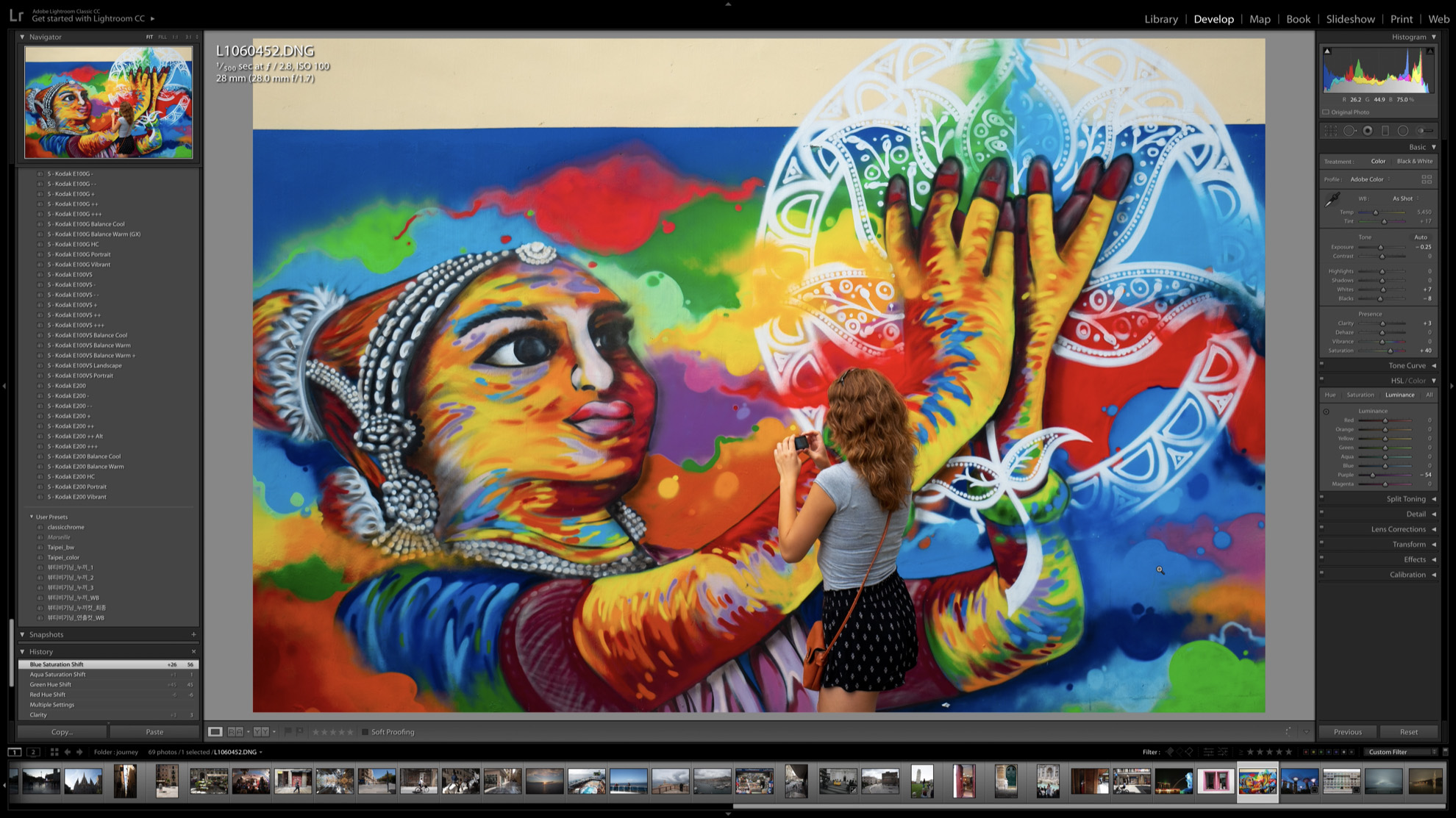 루프덱 플러스는 라이트룸을 이용한 디지털 이미지 보정에 최적화 된 전용 키보드입니다. 버튼과 다이얼에 새겨진 명칭부터 조작계 배치, 사실상 라이트룸 전용에 가까운 컬러 다이얼의 존재가 그렇습니다. 그런만큼 라이트룸 편집 작업에서는 대단한 효율을 자랑합니다. 라이브러리/현상 모드 전환은 물론 사진 탐색, 노출부터 색온도, 커브 조절 등 폭 넓은 이미지 보정 그리고 프리셋 적용까지. 라이트룸 환경에서는 마우스나 키보드를 전혀 조작하지 않고 작업이 가능했습니다.