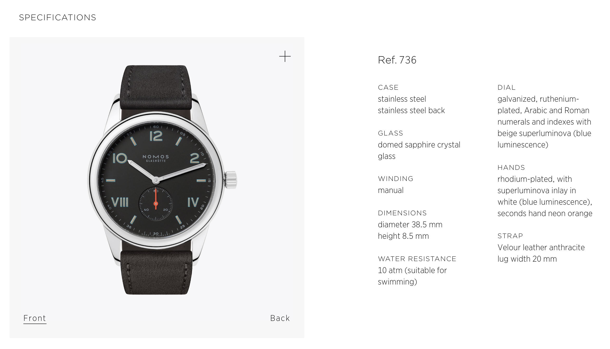 비싼 시계에 큰 관심이 없는 제가 그나마 늘 지켜보는 브랜드입니다. 바우하우스 기반의 디자인, 자사 무브먼트를 생산하는 기술력, 낮은 인지도, 상대적으로 저렴한 가격(?) 등이 제 취향에 맞아요. 가장 유명한 모델은 탕겐테지만 최근에는 라인업이 꽤나 비대해져서 저도 몇몇만 알고 있는데, 클럽(Club)은 가장 저렴한 라인입니다.