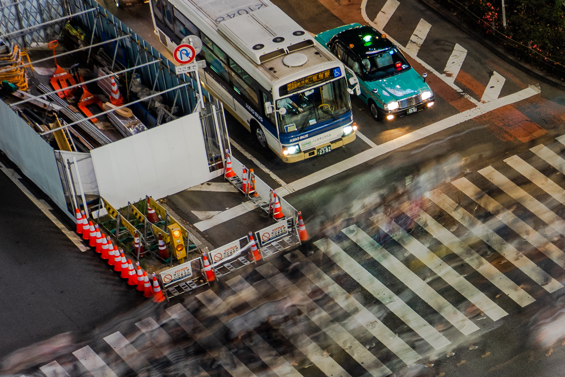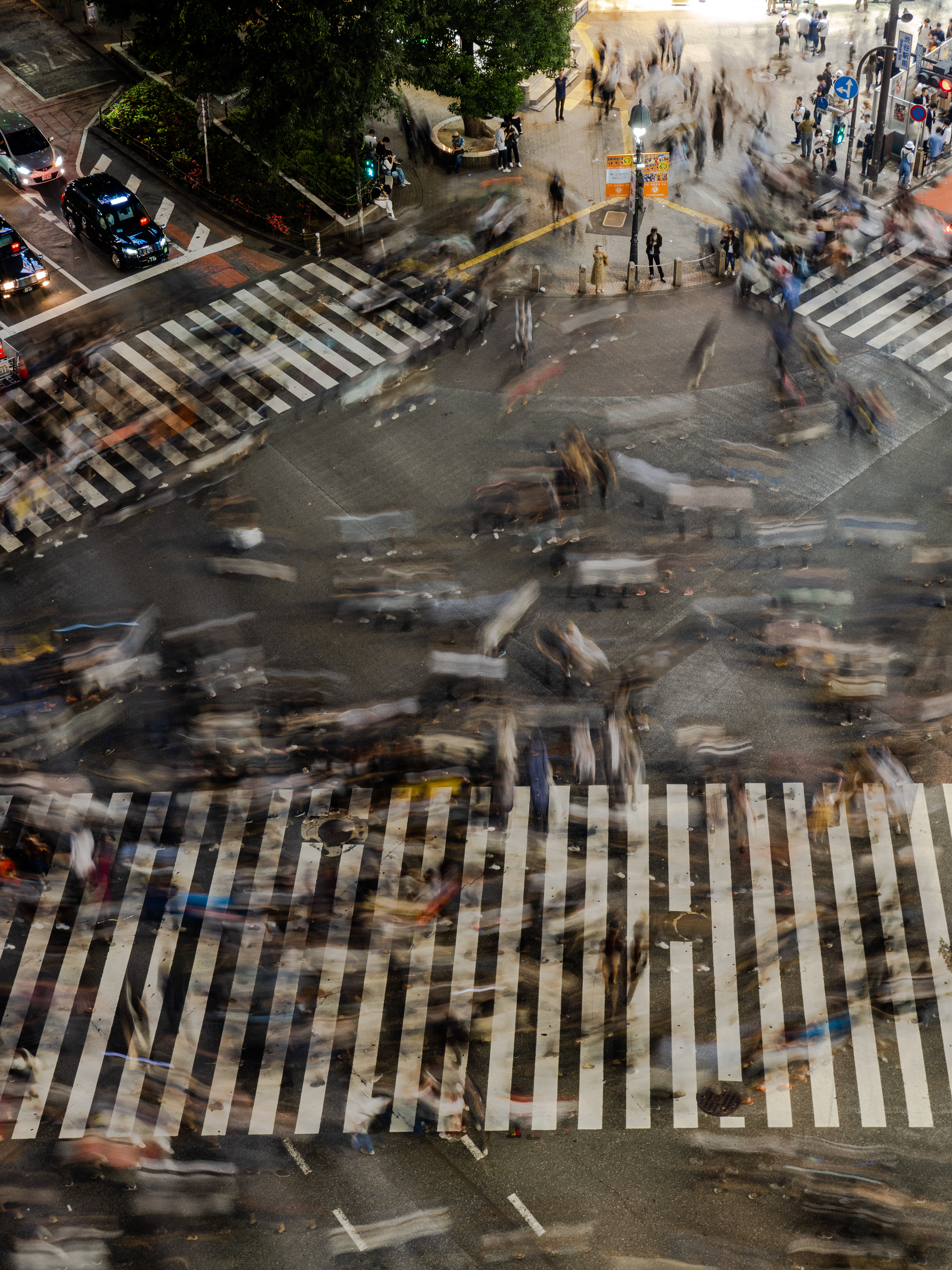 시부야 스크램블 교차로에서는 조금 더 과감한 시도를 해 보았습니다. 삼각대를 사용할 수 없어 핸드 헬드로 촬영을 해야 했는데, 사람들의 움직임을 담고 싶어 1초 이상의 셔터 속도를 설정했습니다. 처음엔 1/2초로 시작해 1초, 1.6초 마지막엔 2초까지 셔터 속도를 늘렸습니다. 물론 카메라는 손으로 든 채 촬영했고요.