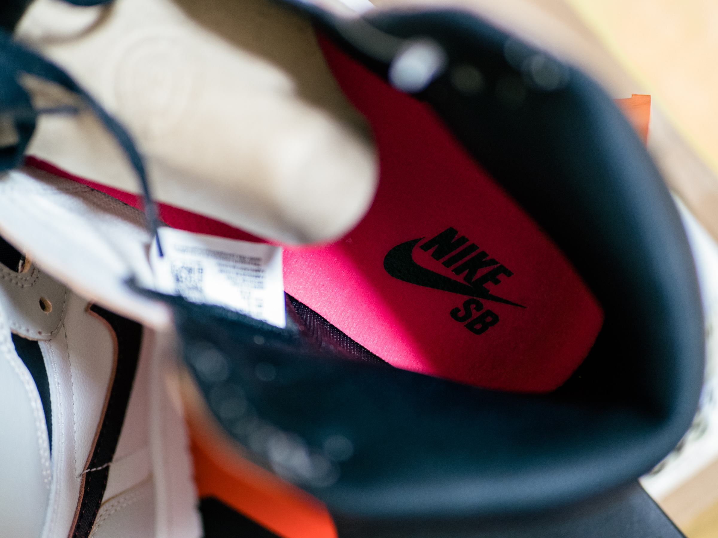 조던 1을 이렇게 직접 받아 보는 건 처음이라 차이를 잘 알지 못하지만 혀 부분이 다른 SB 모델들과 같이 두툼하게 디자인 된 것으로 보입니다. 인솔은 이 모델의 컨셉에 맞춰 핑크색으로 제작됐습니다. 사실 여기서 저는 이 모델을 소화해 보기로 한 것을 포기하고 다음 기회를 노리기로 결정했습니다.