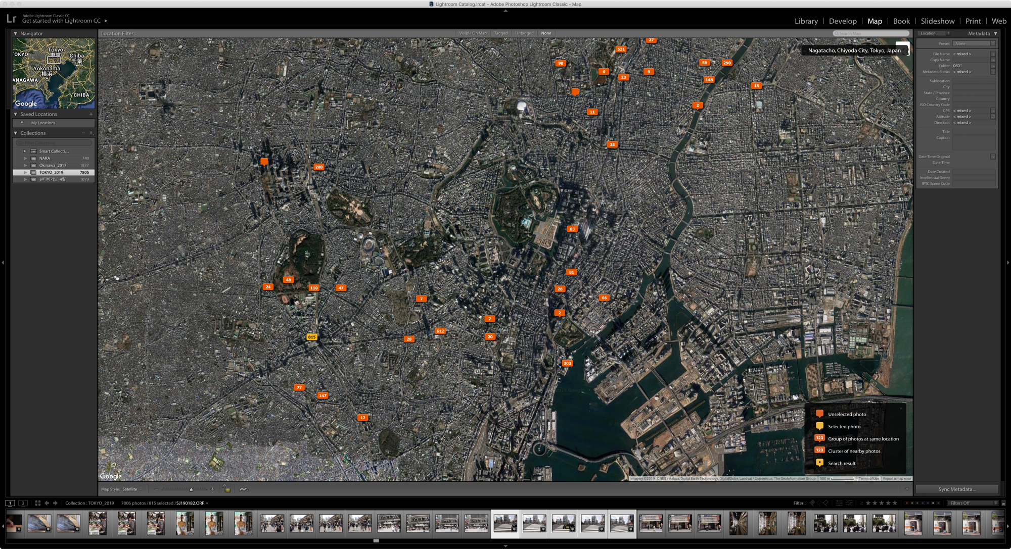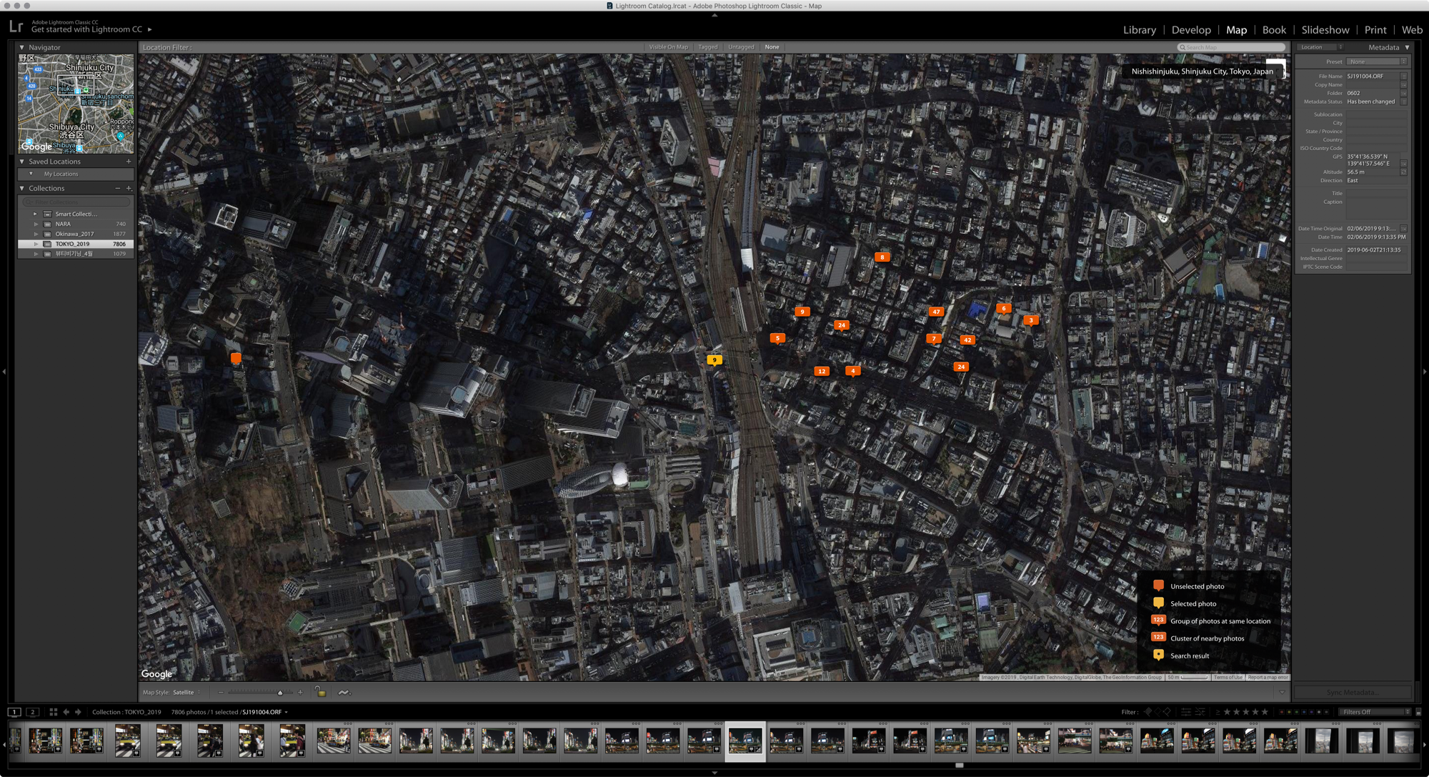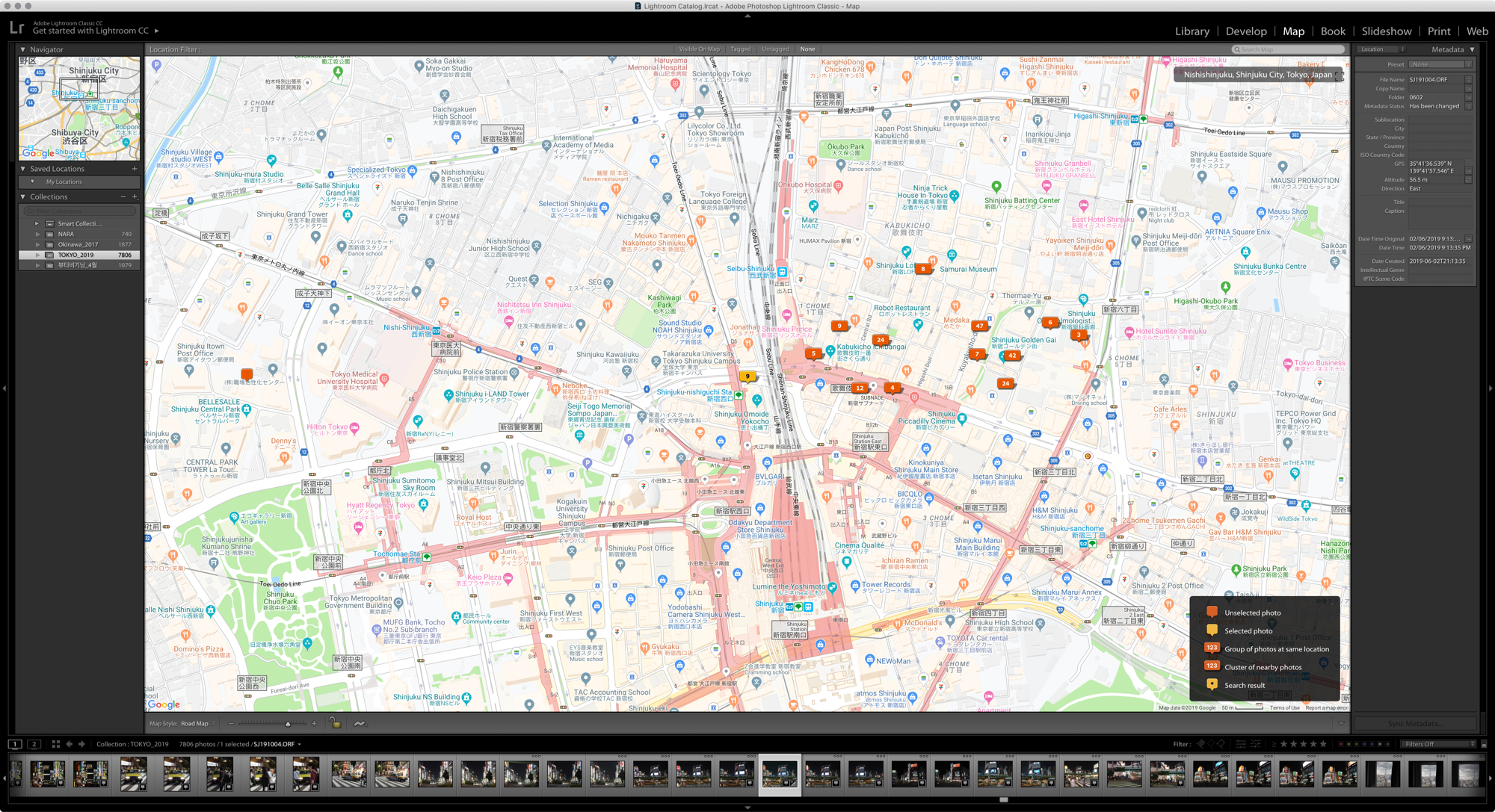 동경에 7박 8일간 머물며 7000여 장의 사진을 촬영했습니다. 바쁘게 다닌터라 기대했던 위치 정보가 제대로 입력됐는지 확인을 못했는데, 돌아와서 이미지들을 편집 프로그램에 넣으니 상당 수의 사진들이 지도에 표시됐습니다. 이 때의 짜릿함이란!