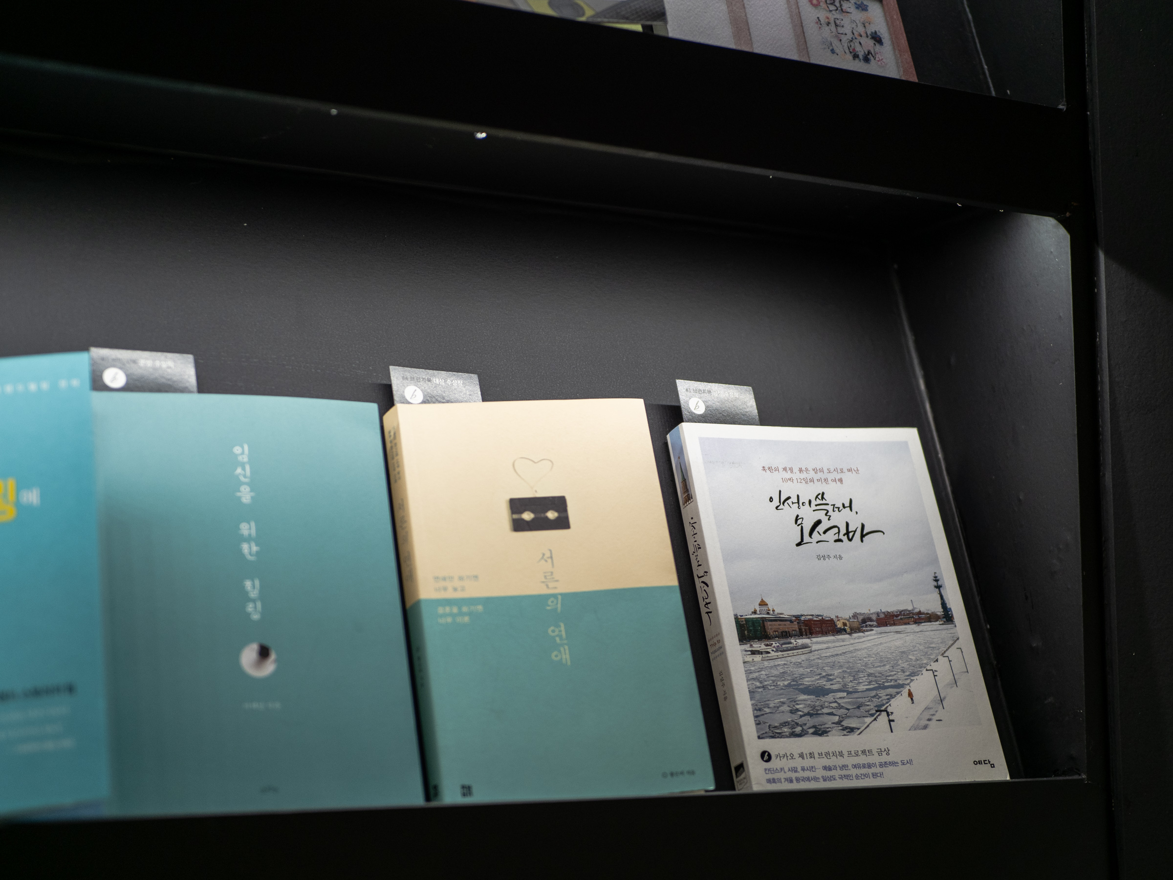 서재에는 브런치북 프로젝트에서 수상하고 출간된 책들이 진열돼 있었습니다. 구석에 제가 쓴 '인생이 쓸 때, 모스크바'도 있더군요. 오랜만에 봐서 반가웠어요.