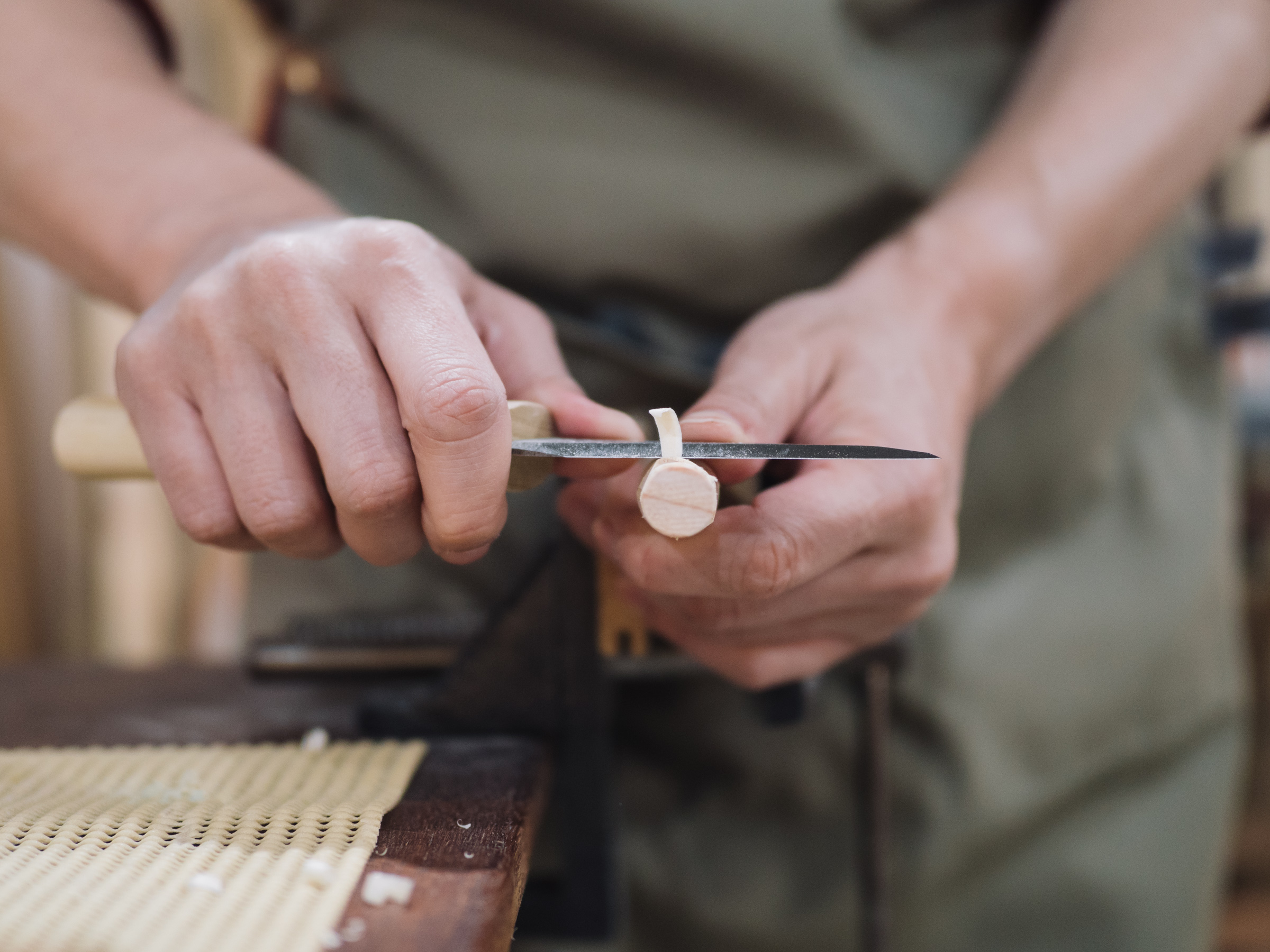 밝은 최대 개방 촬영은 카메라가 빛을 충분히 받아들일 수 있게 합니다. 이로 인한 장점은 크게 두 가지인데, 첫 번째로 낮은 ISO 감도의 깨끗한 이미지를 얻을 수 있고, 두 번째로 빠른 셔터 속도를 설정할 수 있어 순간 포착이 가능해집니다. 나무가 갈려 나가며 톱밥이 날리는 모습, 칼로 깎아낸 나무 조각이 튀어 나가는 모습 등 손길이 스치는 모습들을 더욱 다양하게 담을 수 있죠. 흔들림 없는 사진으로요.