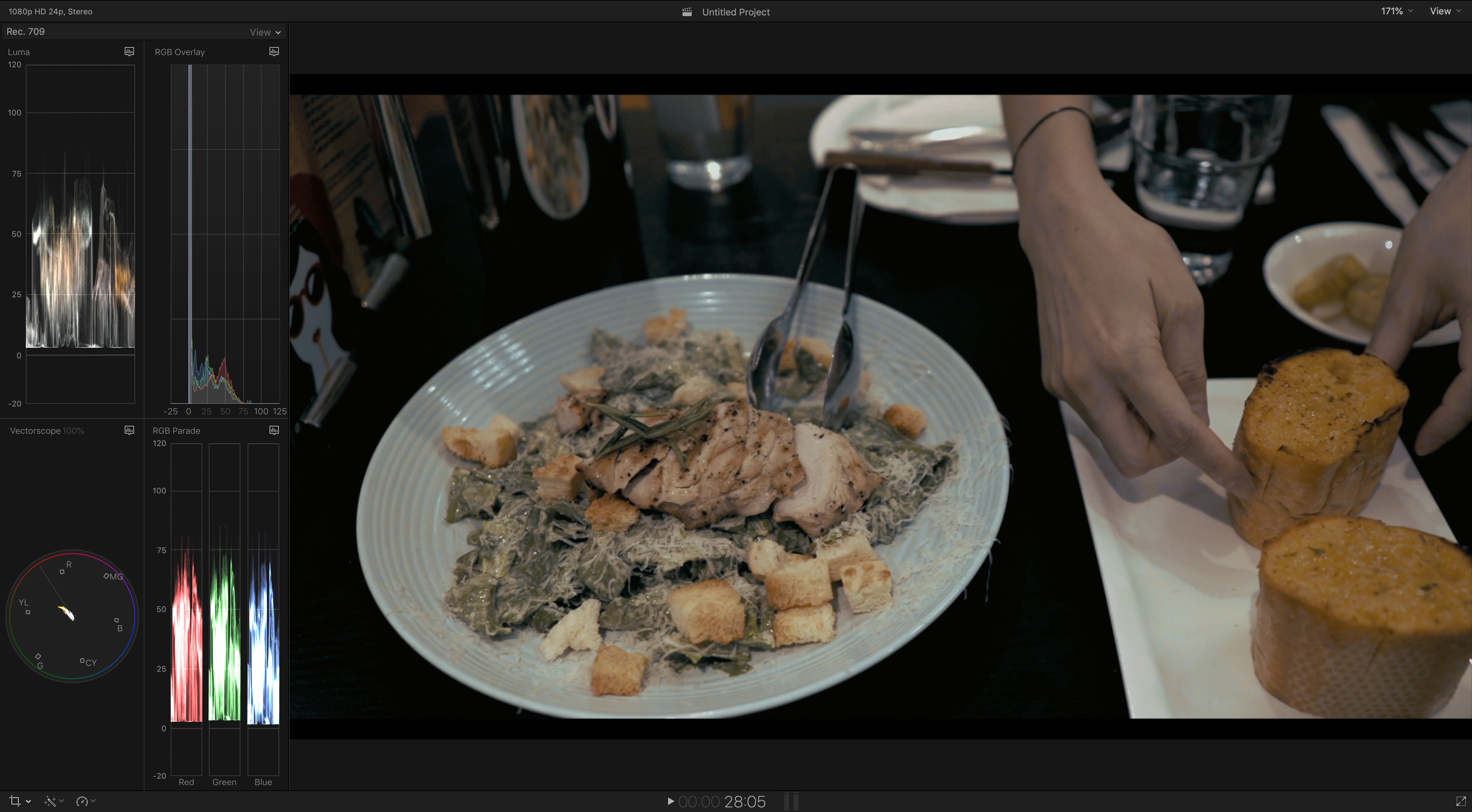 거기에 음식을 조금 더 생기있게 표현하기 위해 오렌지색 컬러 필터를 적용했습니다. 촬영 직후 실내 촬영 결과물을 보며 틀어진 컬러를 어떻게 바로잡을까 고민됐는데, OM-LOG400과 LUT 덕분에 괜찮은 분위기로 보정이 가능했습니다. OM-LOG400이 E-M1 Mark II까지 확대되면서 올림푸스 카메라도 조금씩 영상 작업의 가능성을 넓혀 나가고 있다는 생각이 들었어요.