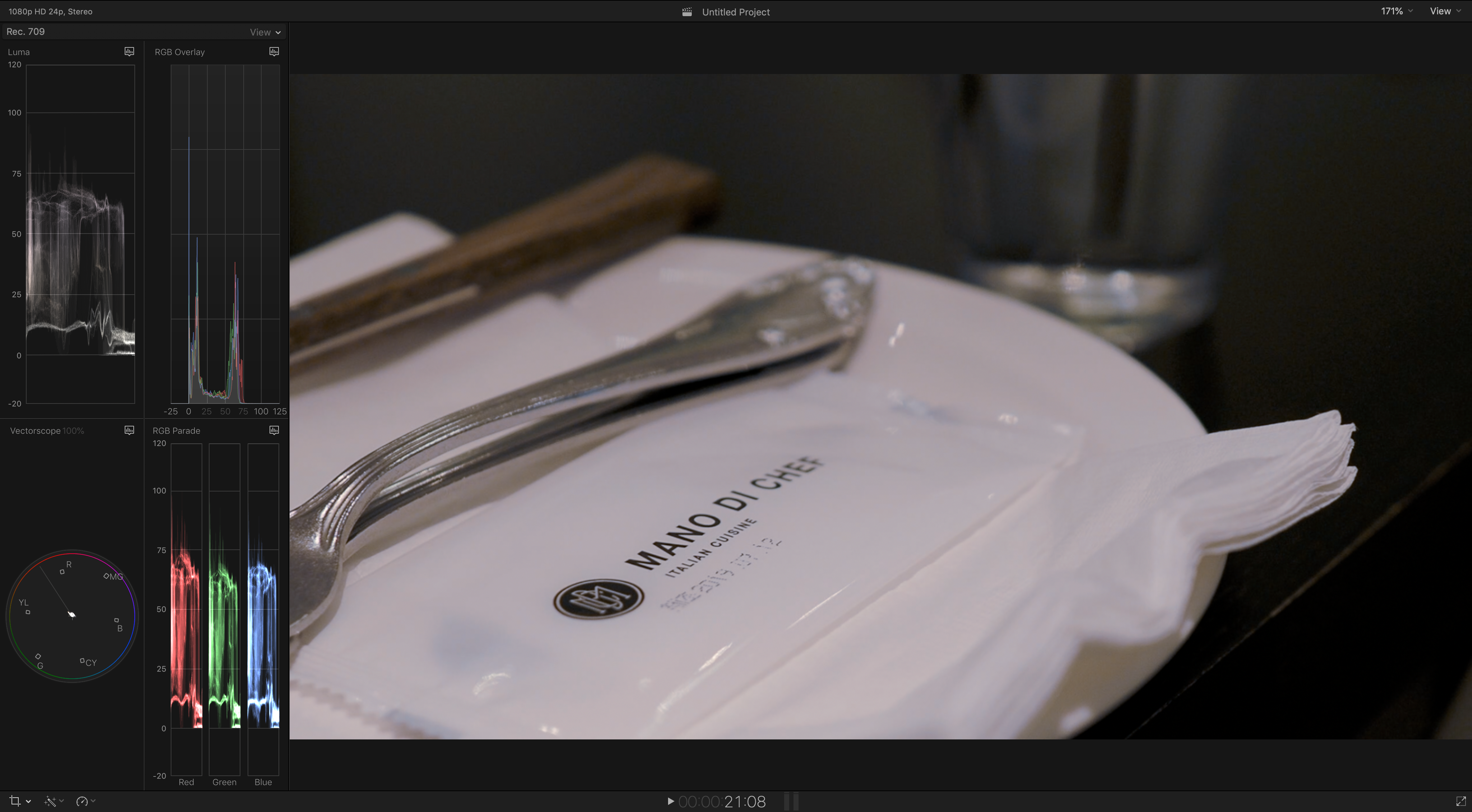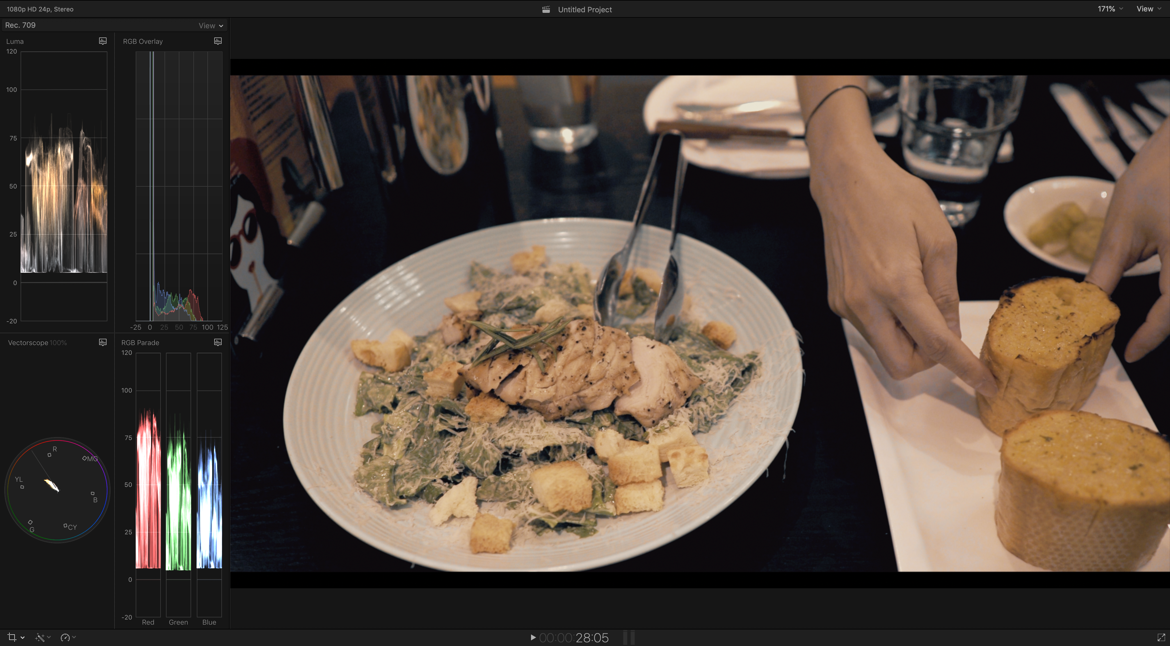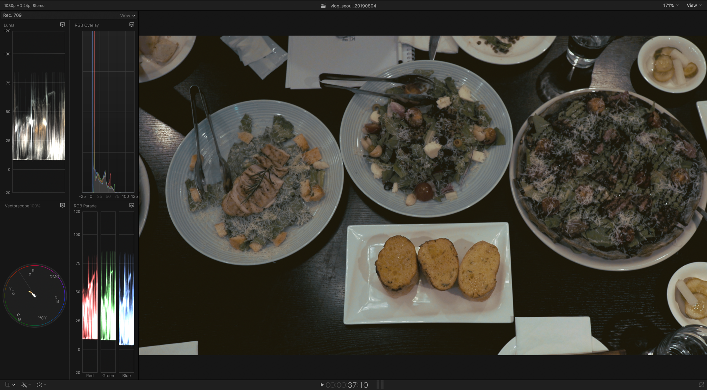 거기에 음식을 조금 더 생기있게 표현하기 위해 오렌지색 컬러 필터를 적용했습니다. 촬영 직후 실내 촬영 결과물을 보며 틀어진 컬러를 어떻게 바로잡을까 고민됐는데, OM-LOG400과 LUT 덕분에 괜찮은 분위기로 보정이 가능했습니다. OM-LOG400이 E-M1 Mark II까지 확대되면서 올림푸스 카메라도 조금씩 영상 작업의 가능성을 넓혀 나가고 있다는 생각이 들었어요.