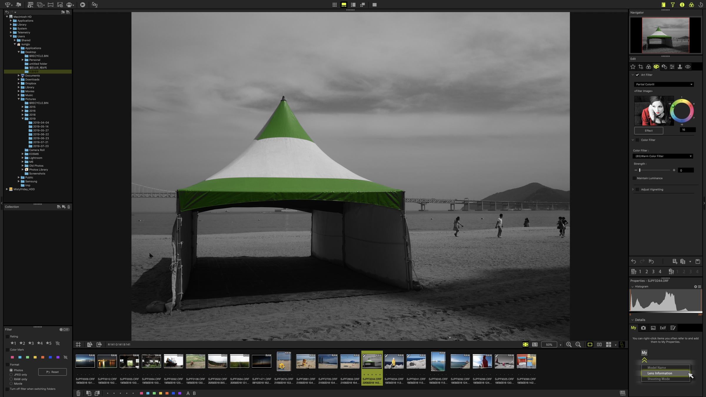 마지막으로 이미지 편집 프로그램인 Olympus Workspace를 통해 RAW 파일에 아트 필터를 적용하는 방법입니다. 카메라의 내장 편집 기능을 이용하는 것과 같은 원리인데, 카메라의 컬러 보정, 아트 필터 옵션을 모두 제공하는 점이 인상적입니다. 이론적으로는 RAW 촬영을 할 경우 카메라의 컬러/아트 필터 등의 설정을 신경 써서 할 필요가 없다는 것이 되겠죠.