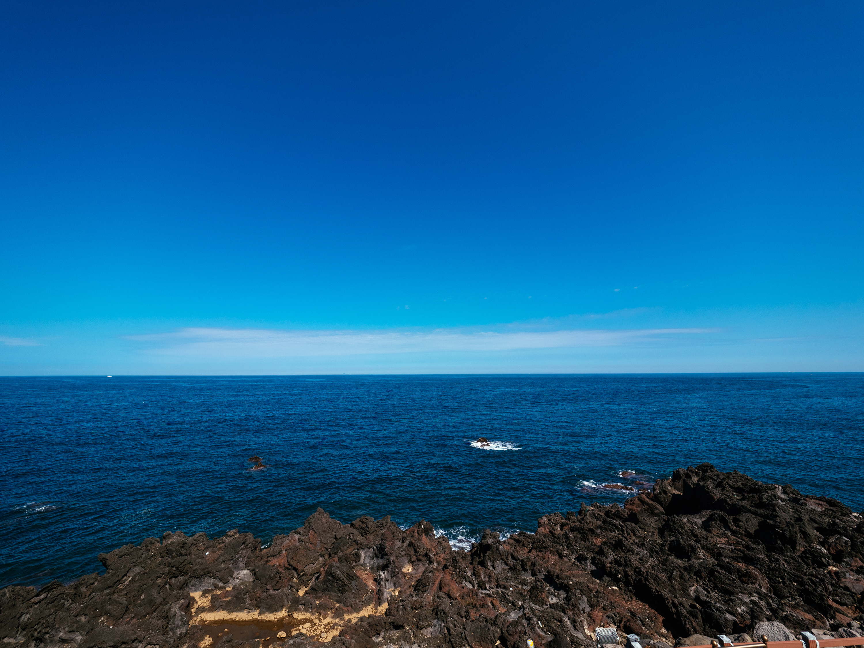 근사하게 낡은 테이블과 해를 가려주는 지붕, 그리고 애월 바다를 한 번에 담기에 7-14mm F2.8 PRO 렌즈가 무척 좋았습니다. 위 사진은 7mm 최대 광각으로 촬영한 것인데 눈 앞은 물론이고 머리 위와 양 옆 풍경까지 부족함 없이 담을 수 있었습니다. 이래서 초광각 렌즈가 여행용으로 사랑받는 것이겠죠.