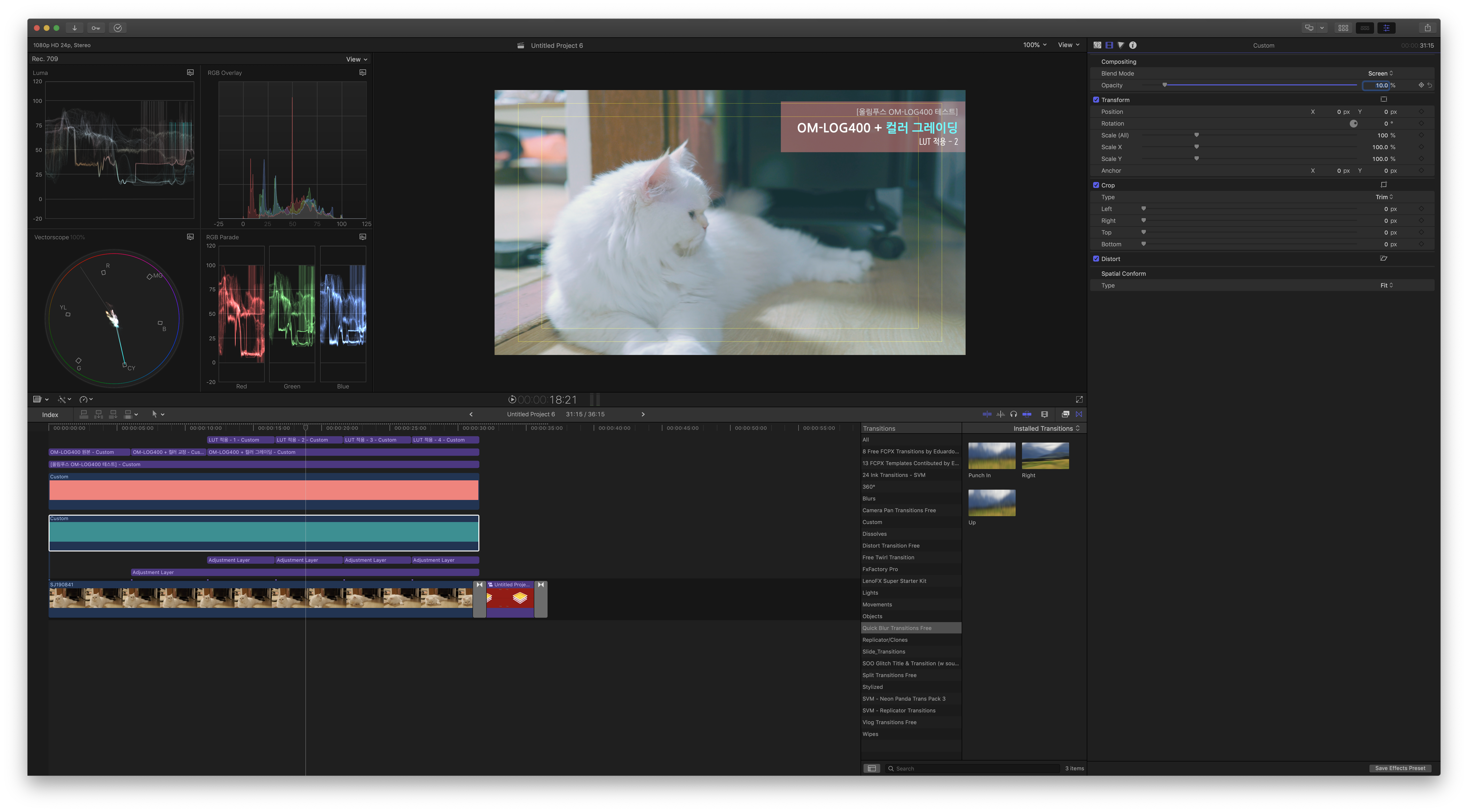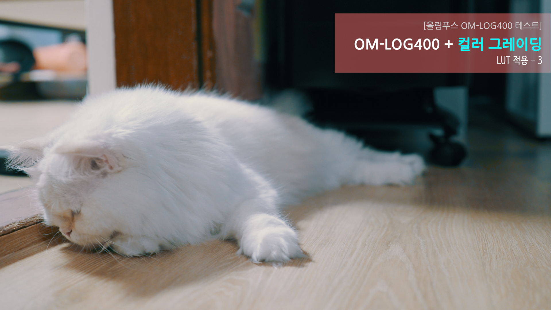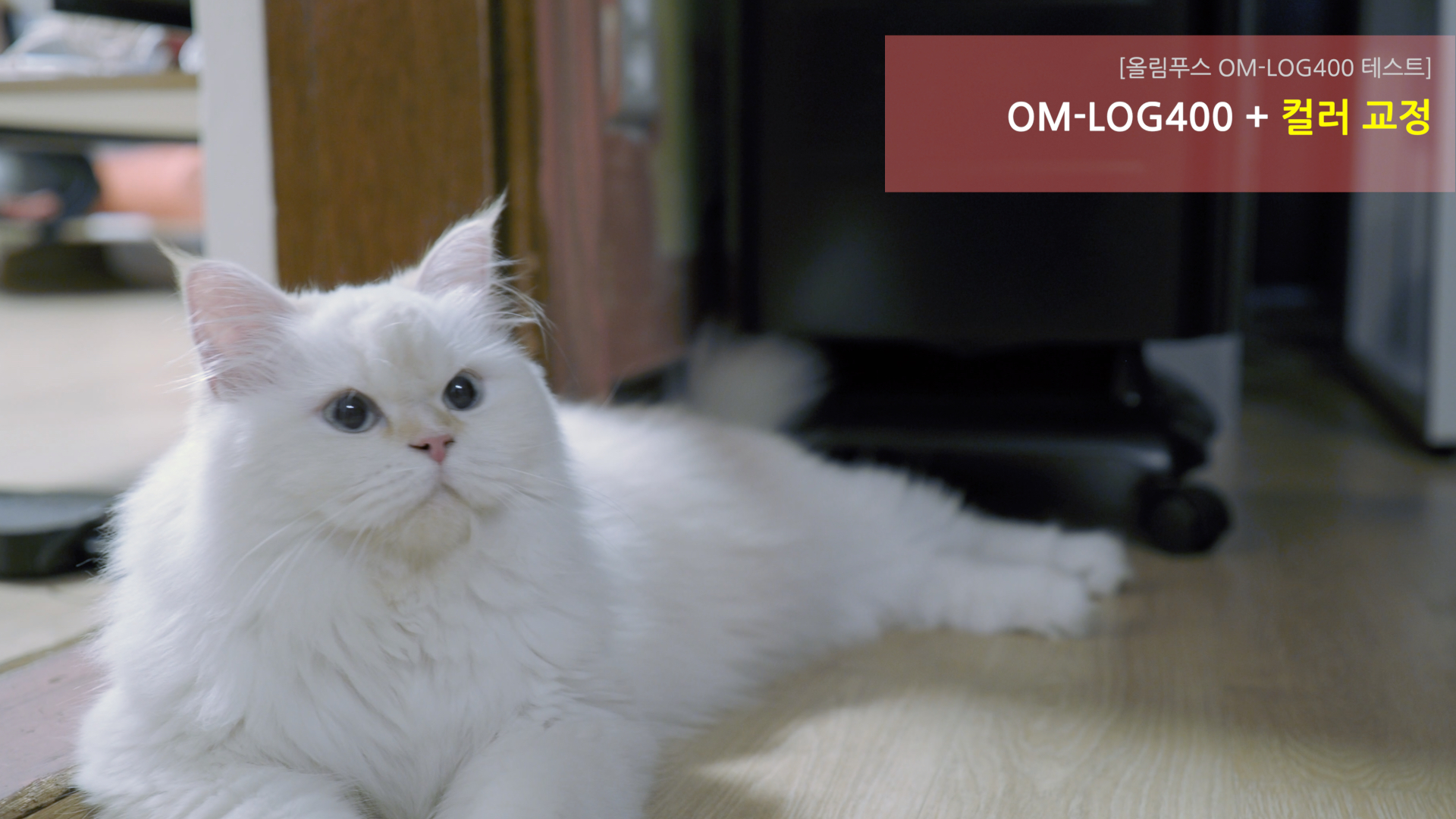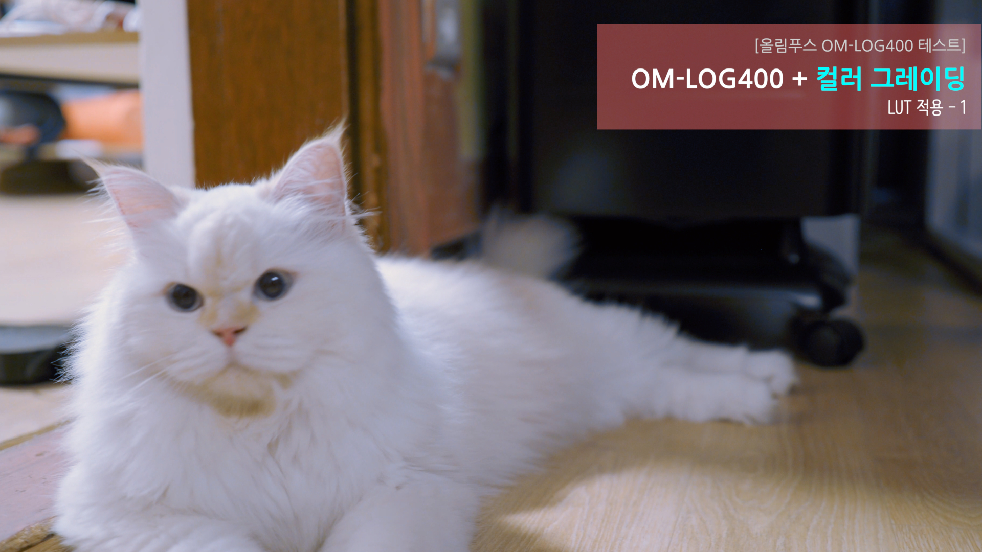 얼마 전 업무차 촬영을 진행하며 생긴 짧은 클립에 컬러 교정과 보정을 적용해 화질과 보정 관용도 등을 테스트 해보았습니다. 귀여운 고양이가 주인공인 아래 영상에서 OM-LOG400의 보정 관용도와 LUT를 활용한 컬러 그레이딩 예를 볼 수 있습니다.