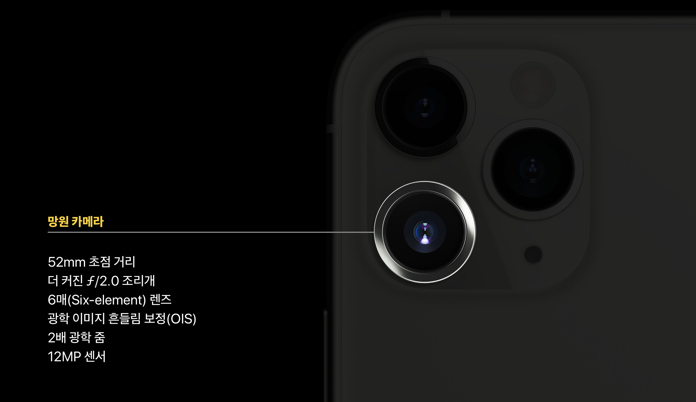 아이폰 11 프로 시리즈는 기존의 광각/망원 카메라를 유지하면서(물론 성능은 향상됐습니다) 초광각 카메라를 추가해 총 3개의 후면 카메라를 사용할 수 있게 됐습니다.