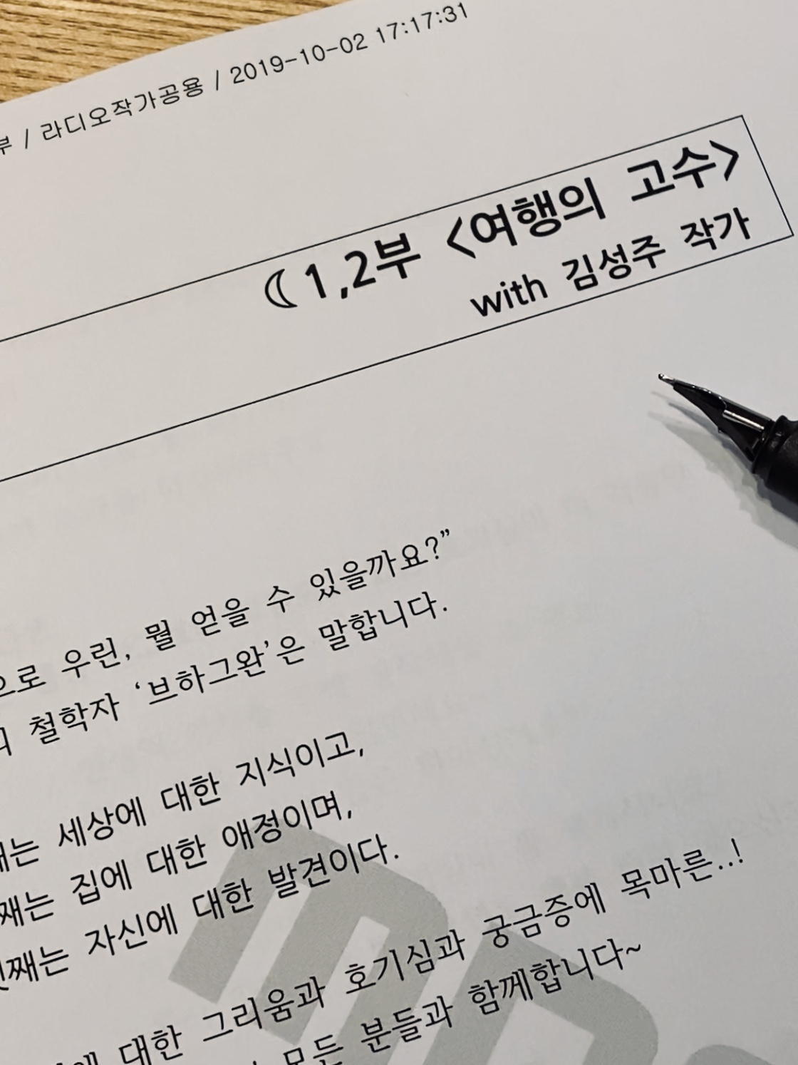 첫 녹음을 준비하며 여행하는 사람으로 또 이야기하는 사람으로 제 생각들을 정리했습니다. 시간이 지나며 여행을 돌아보는 시선도, 하고 싶은 말들도 조금씩 달라지지만 첫 운을 떼는 말은 언제나 같습니다. 제 이름과 책 제목보다 유명한 제 소개글. 아마 몇몇 독자분은 기억하실 그 문장을 끙디 박경 DJ가 읽는 짧은 시간 동안 참 많은 장면들이 스쳐 지났습니다.
