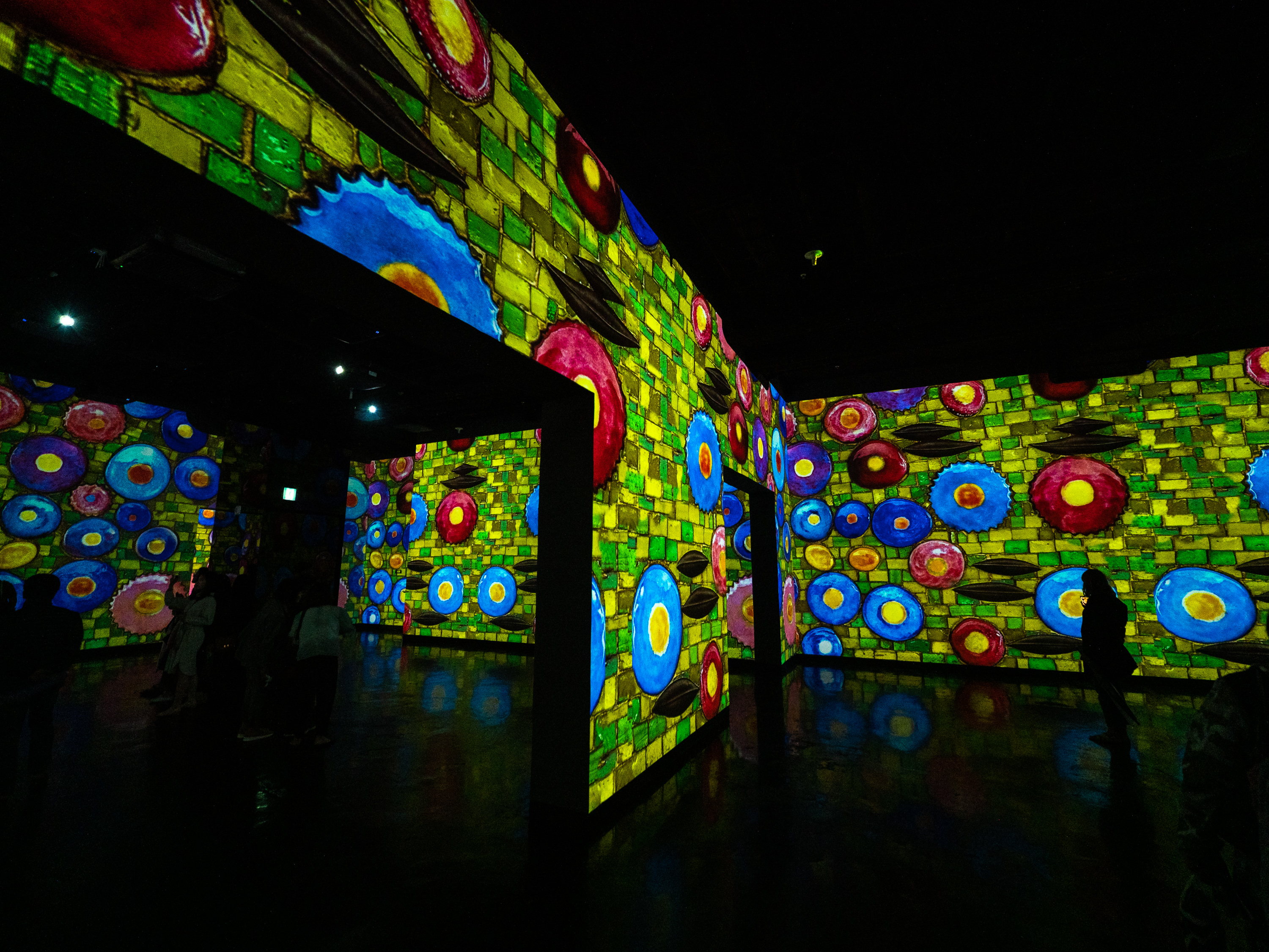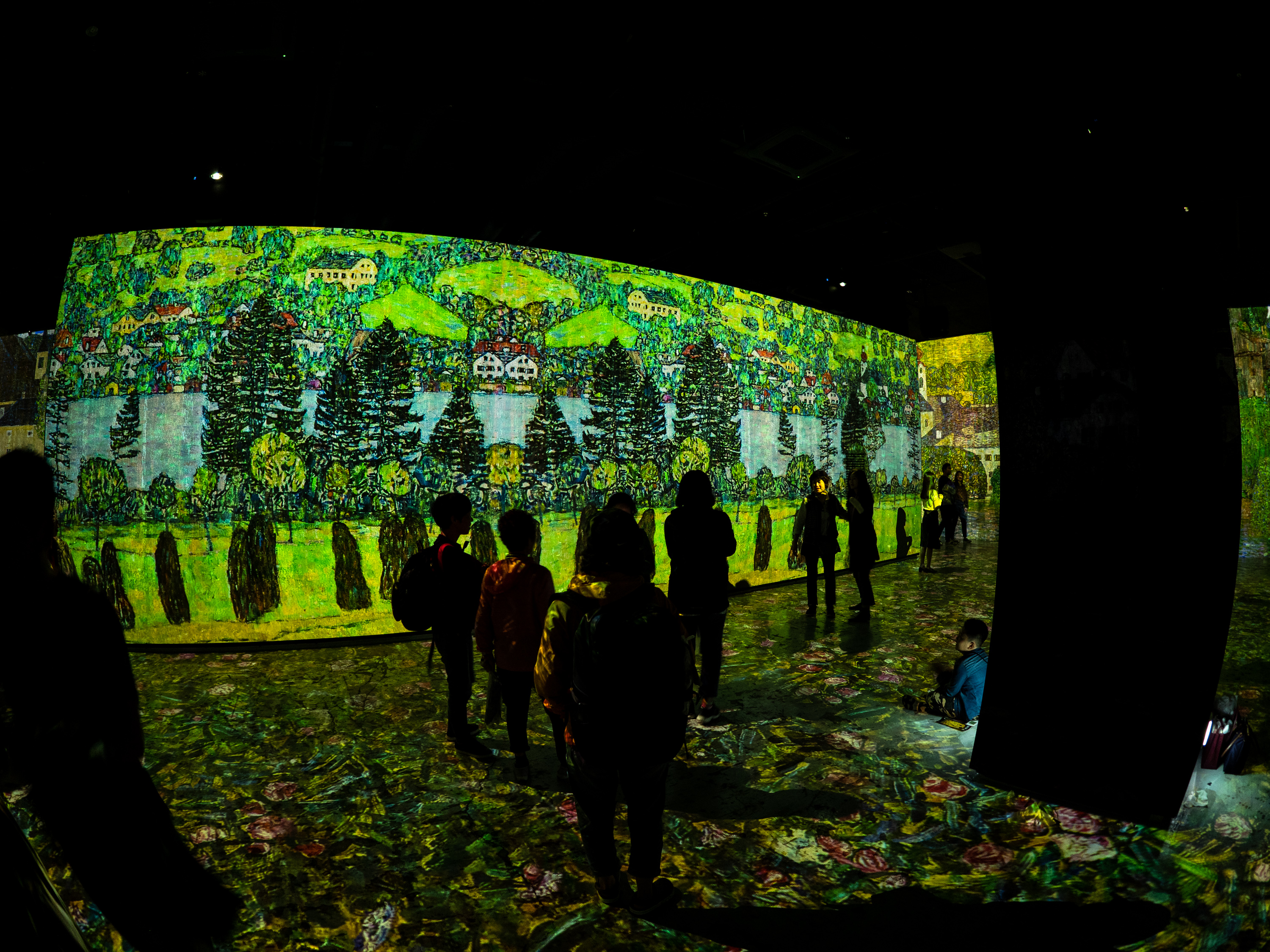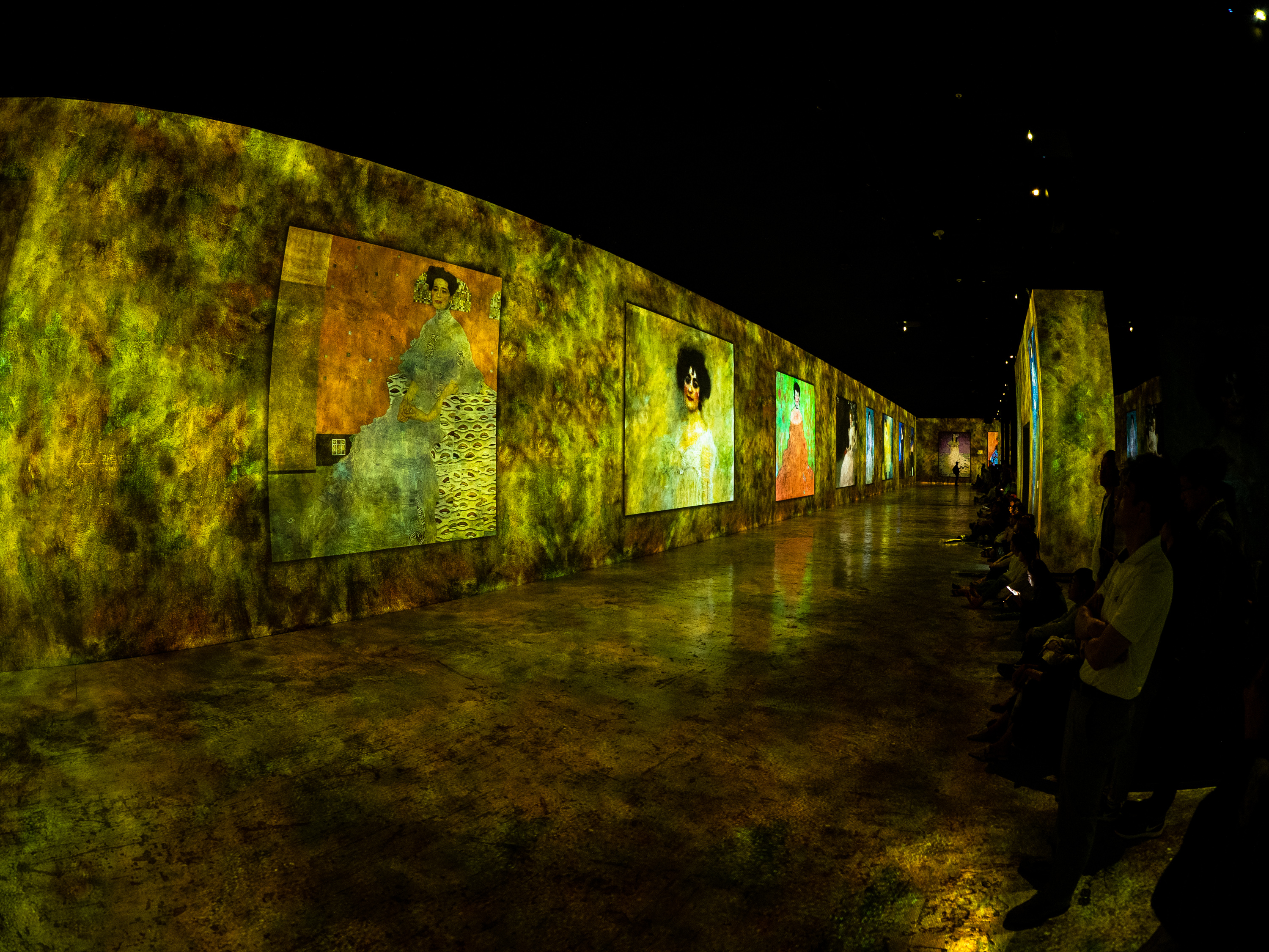 제가 방문했을 때는 구스타프 클림트의 작품이 전시되고 있었습니다. 들어서는 순간 꽤 넓은 내부 공간에 놀라게 되는데, 그 벽과 바닥에 여러 작품들이 번갈아가며 표시되는 것이 이전에 봤던 일반적인 미술 전시와 달라서 제법 환상적인 느낌입니다. 거기에 귀가 멍해질듯 커다란 사운드 덕분에 많은 사람이 있는 공간이지만 높은 몰입감을 느낄 수 있었고요.