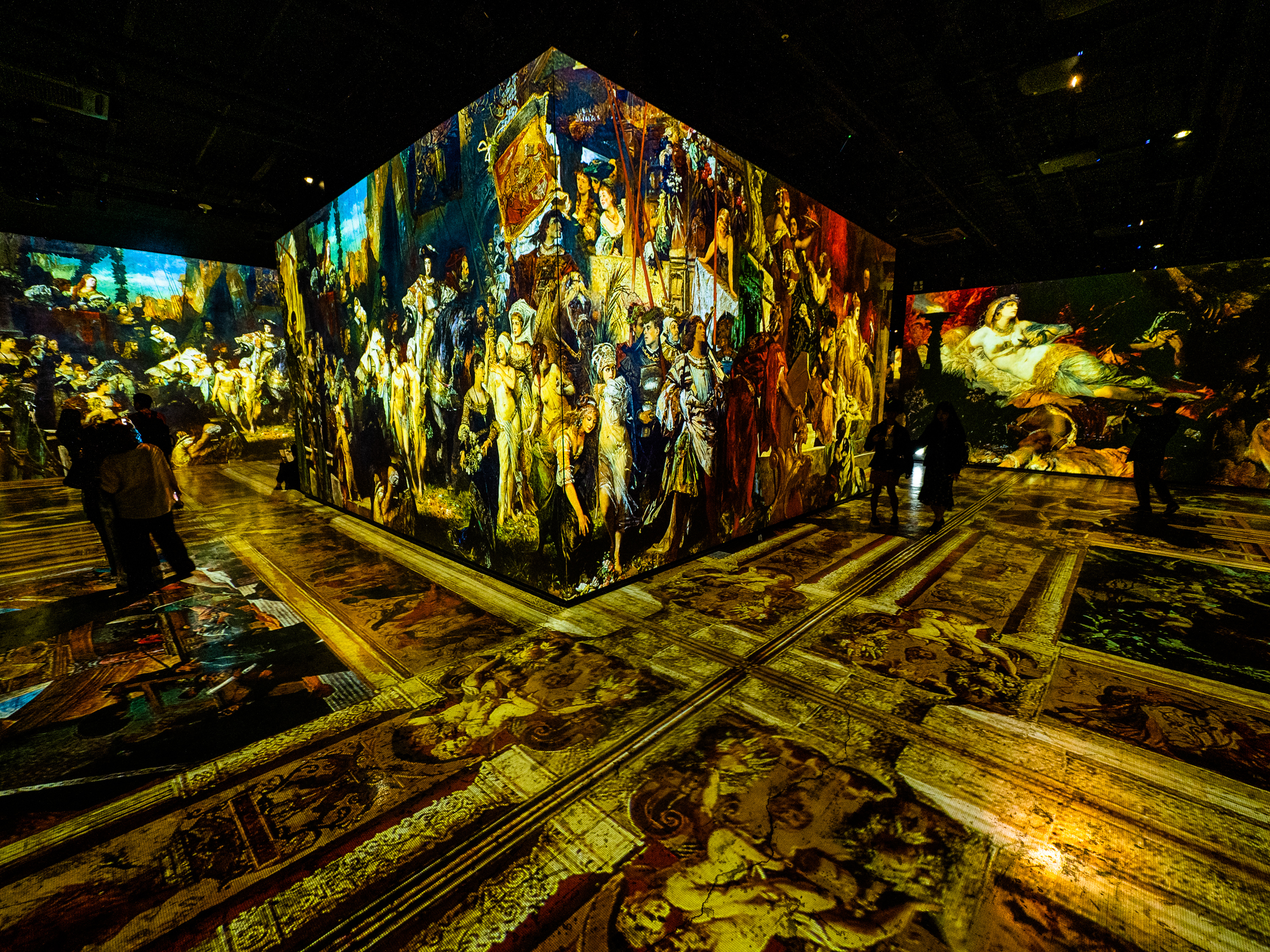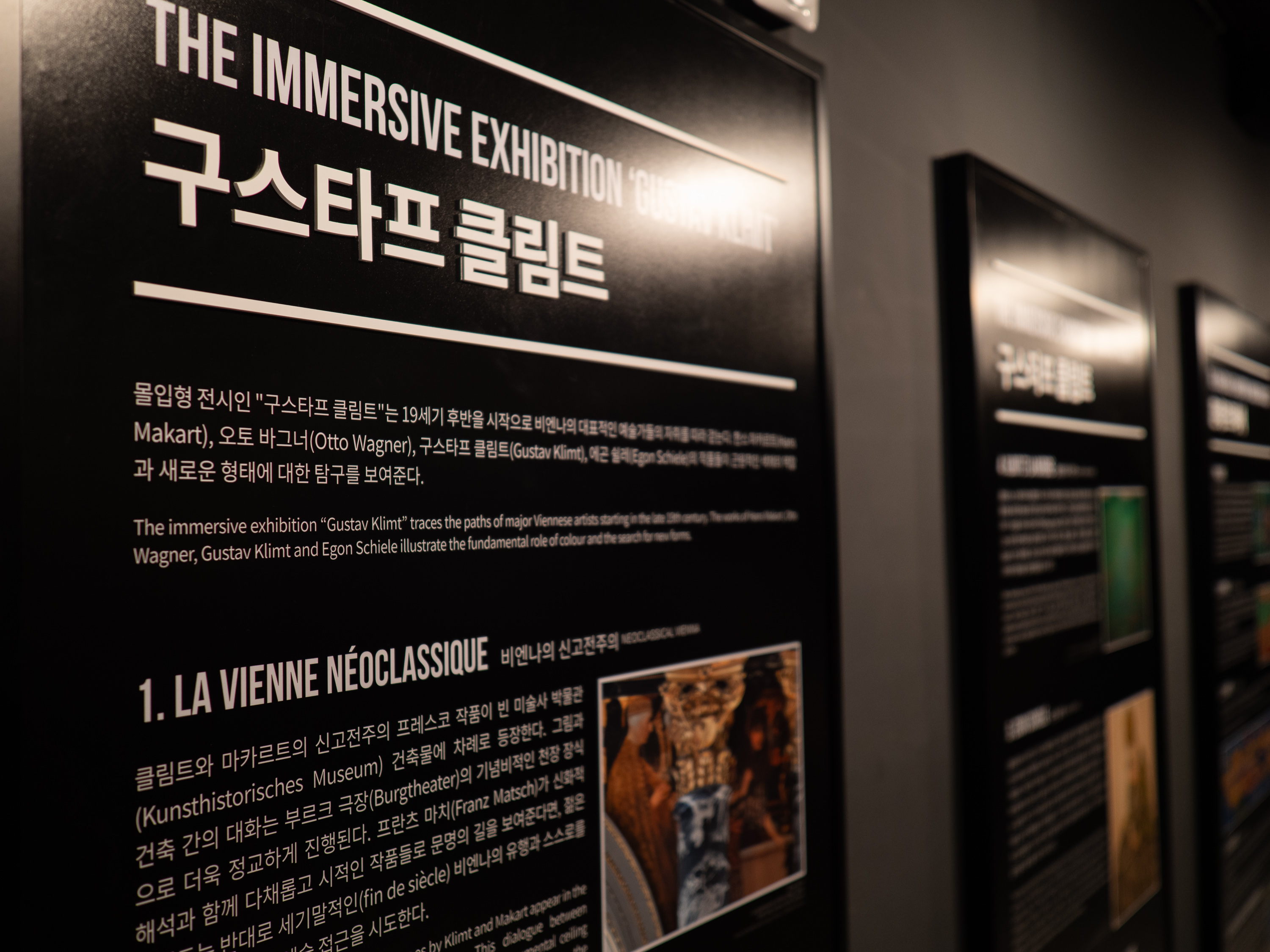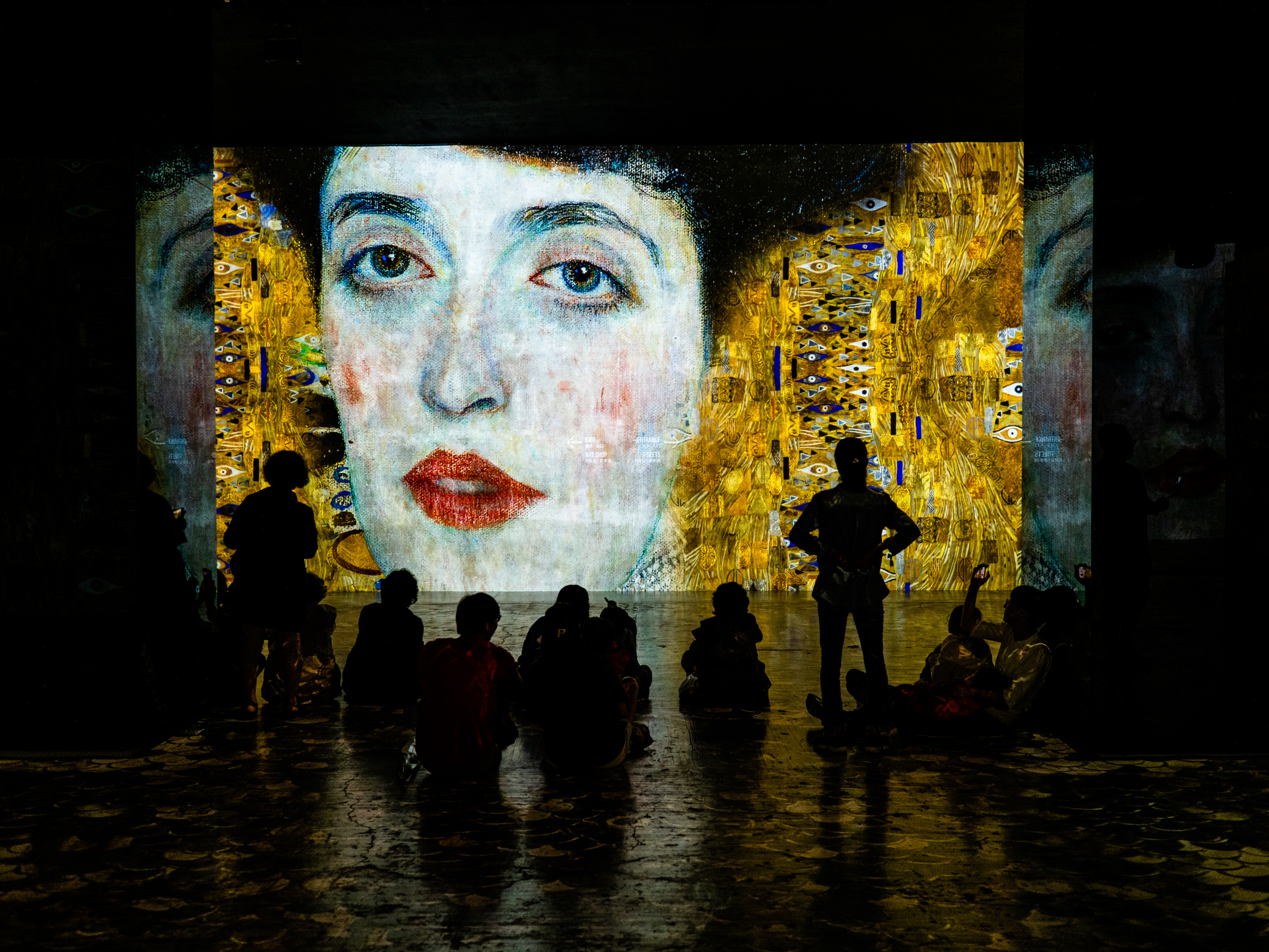 제가 방문했을 때는 구스타프 클림트의 작품이 전시되고 있었습니다. 들어서는 순간 꽤 넓은 내부 공간에 놀라게 되는데, 그 벽과 바닥에 여러 작품들이 번갈아가며 표시되는 것이 이전에 봤던 일반적인 미술 전시와 달라서 제법 환상적인 느낌입니다. 거기에 귀가 멍해질듯 커다란 사운드 덕분에 많은 사람이 있는 공간이지만 높은 몰입감을 느낄 수 있었고요.