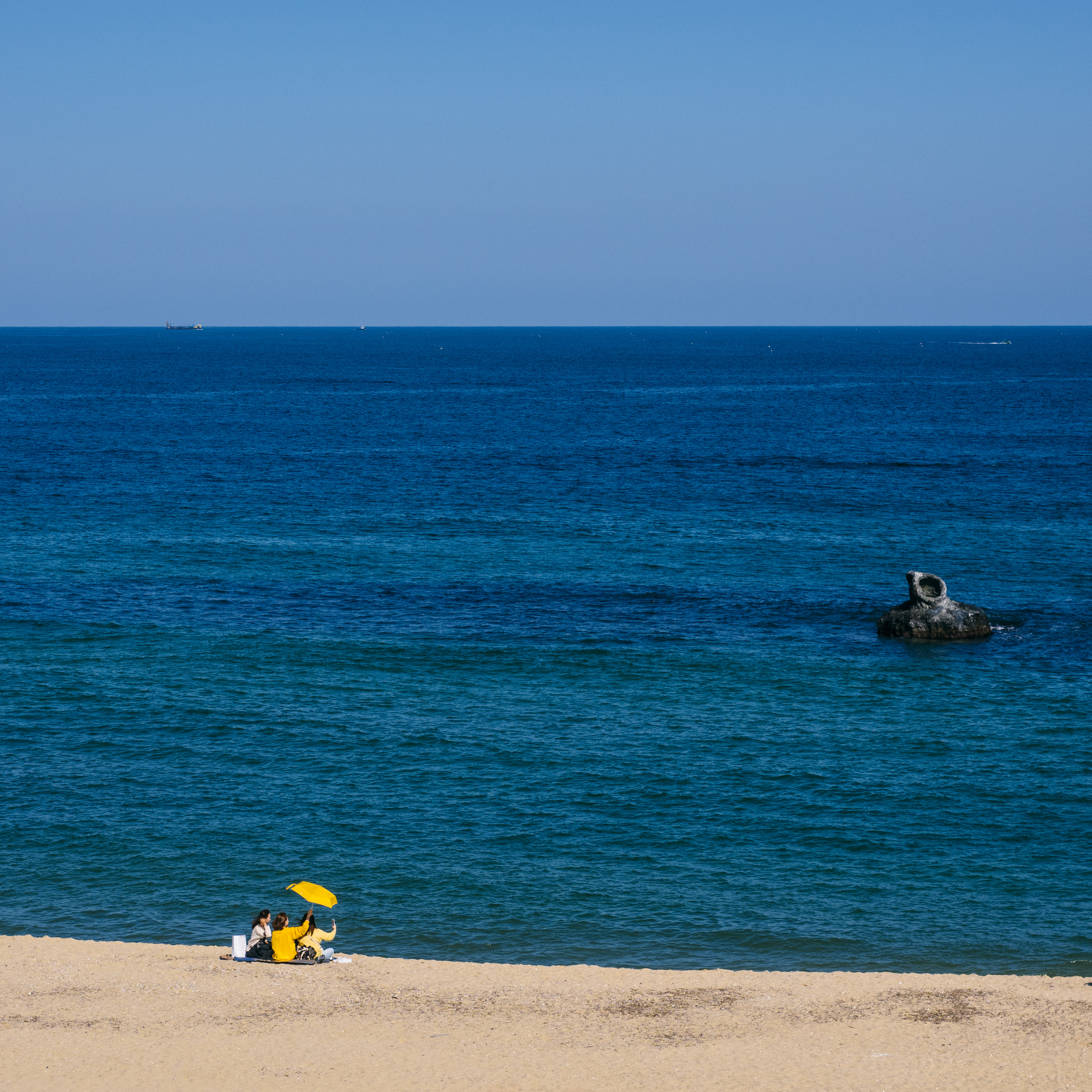 돌아가기 전 잠시 모래 사장에 앉아있는다는 게 파도와 햇살에 취해서 두어 시간을 보냈습니다. 돌아가는 버스를 몇 번이나 취소하고요. 시간이 더 있었다면 강문 해변 근처에 숙소를 잡고 하루 더 여유있게 둘러보고 싶었지만 다음을 기약했습니다. 언젠간 느긋하게 함께할 날이 있겠죠.