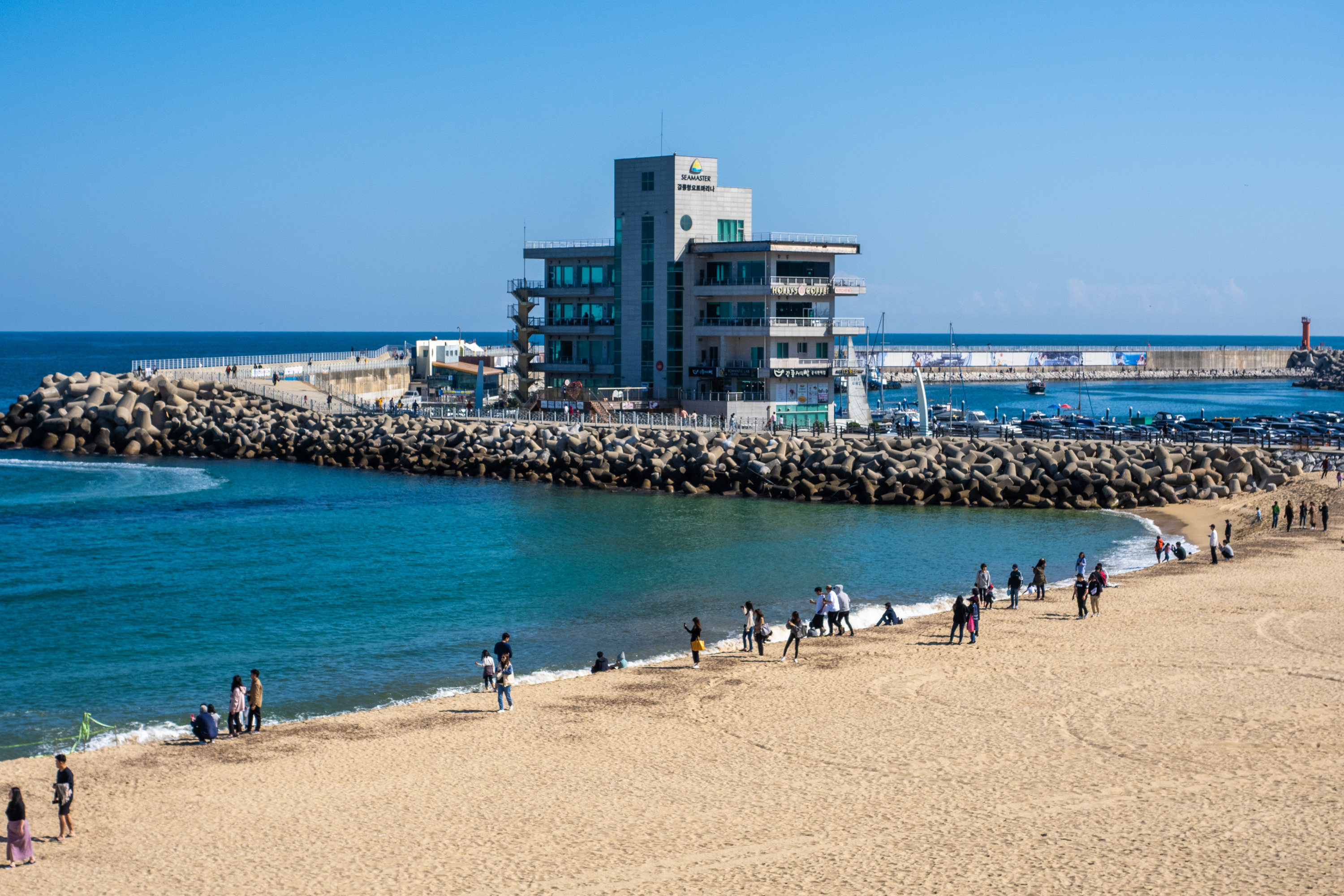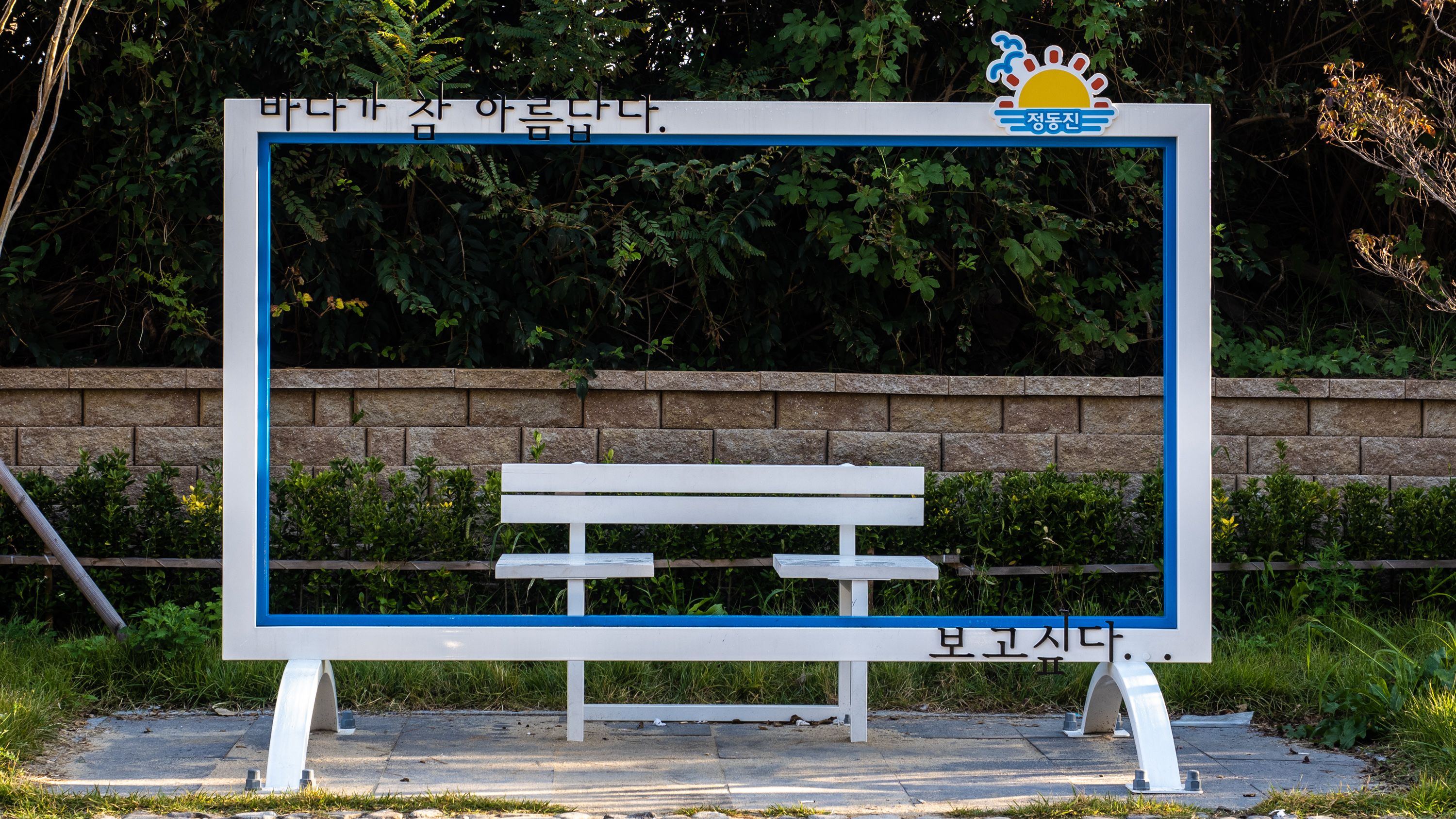 경포보다 소박한 해변이 언제고 언제까지고 머물기 좋아서 늘 여기 머물다 갑니다. 북쪽으로 경포, 남쪽으로 안목이 있지만 여기만큼 설레진 않습니다. 유독 함께 온 청춘들이 많은 해변이라 저도 괜히 가슴이 뛰는지도 모르겠어요. 모래사장 입구에는 사진 찍기 좋은 액자형 구조물이 띄엄띄엄 서 있어서 동해 여행 인증샷 찍기에도 좋습니다. 저녁에는 솟대 다리가 조명으로 물드니 만약 숙소를 이 주변으로 결정하셨다면 밤바다 산책을 다니시는 것도 좋고요.