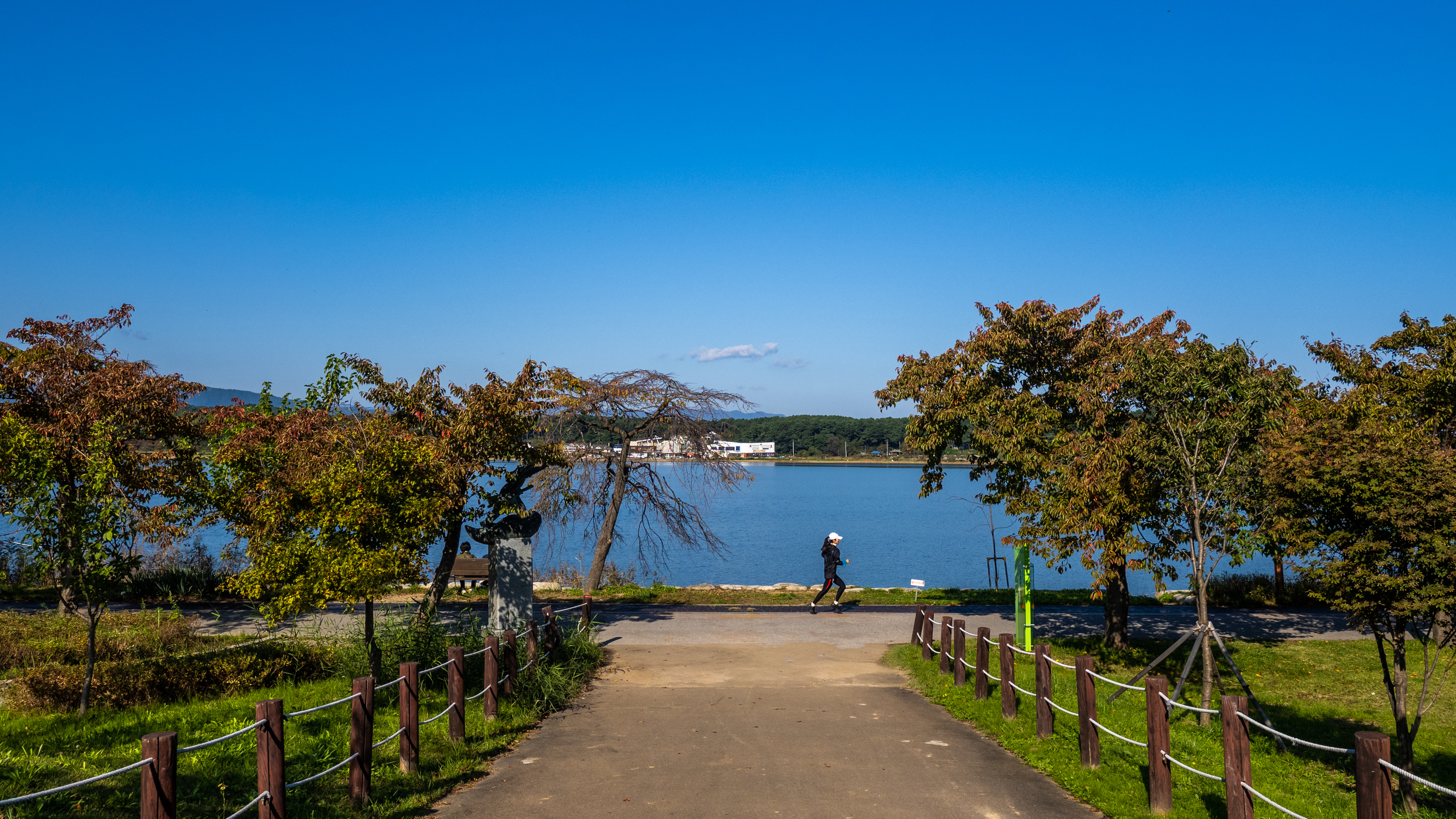 넓은 호수 주변을 두르는 산책길은 심심치 않게 있지만, 경포호만이 주는 고즈넉함이 있습니다. 특히 봄이 되면 꽃망울을 터뜨린 벚나무가 호수를 빙 두르고 있는 풍경이 장관이죠. 이날은 시간이 많지 않아 빠르게 걸어 나왔지만 허난설헌 생가 터, 경포 해변과 초당 마을까지 가까이에 있기 때문에 잠시라도 들러볼만한 곳이에요.