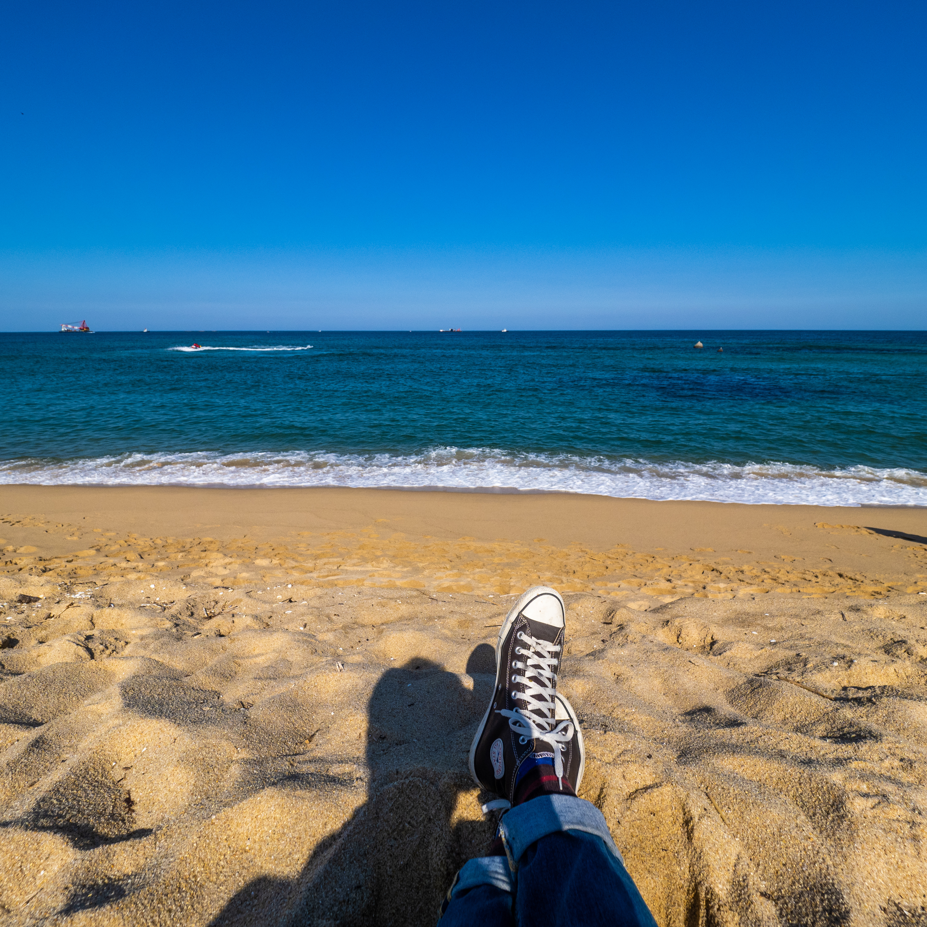 돌아가기 전 잠시 모래 사장에 앉아있는다는 게 파도와 햇살에 취해서 두어 시간을 보냈습니다. 돌아가는 버스를 몇 번이나 취소하고요. 시간이 더 있었다면 강문 해변 근처에 숙소를 잡고 하루 더 여유있게 둘러보고 싶었지만 다음을 기약했습니다. 언젠간 느긋하게 함께할 날이 있겠죠.