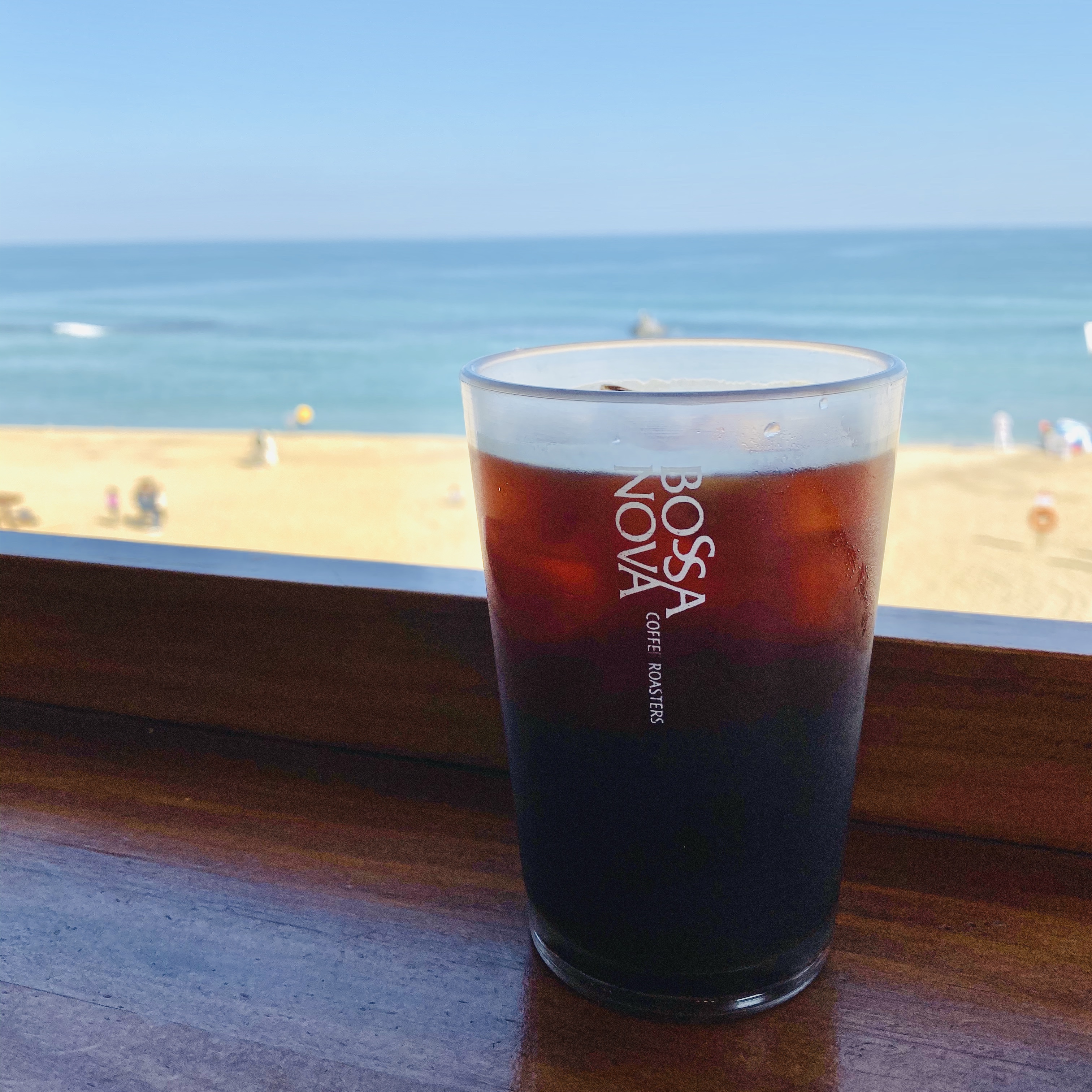 밤을 새고 다닌 피로가 이때 몰려와서 바다가 보이는 카페에서 시원한 커피 한 잔을 마셨습니다. 안목 해변의 매력이죠. 이 한 잔의 여유만으로도 충분히 찾아올 가치가 있습니다.
