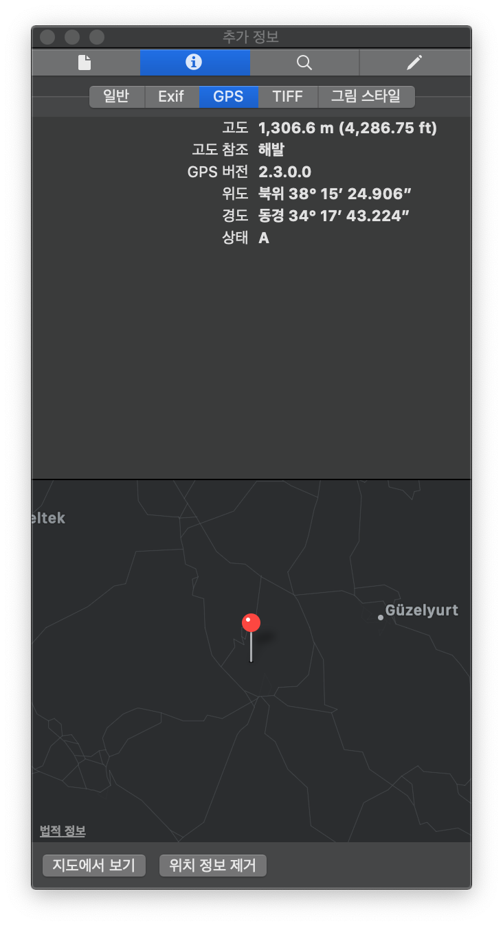 이스탄불에서 찍은 사진에도 위치 정보가 잘 남아있죠. 맥OS의 경우 이미지 정보 탭에서 '지도에서 보기'를 누르면,