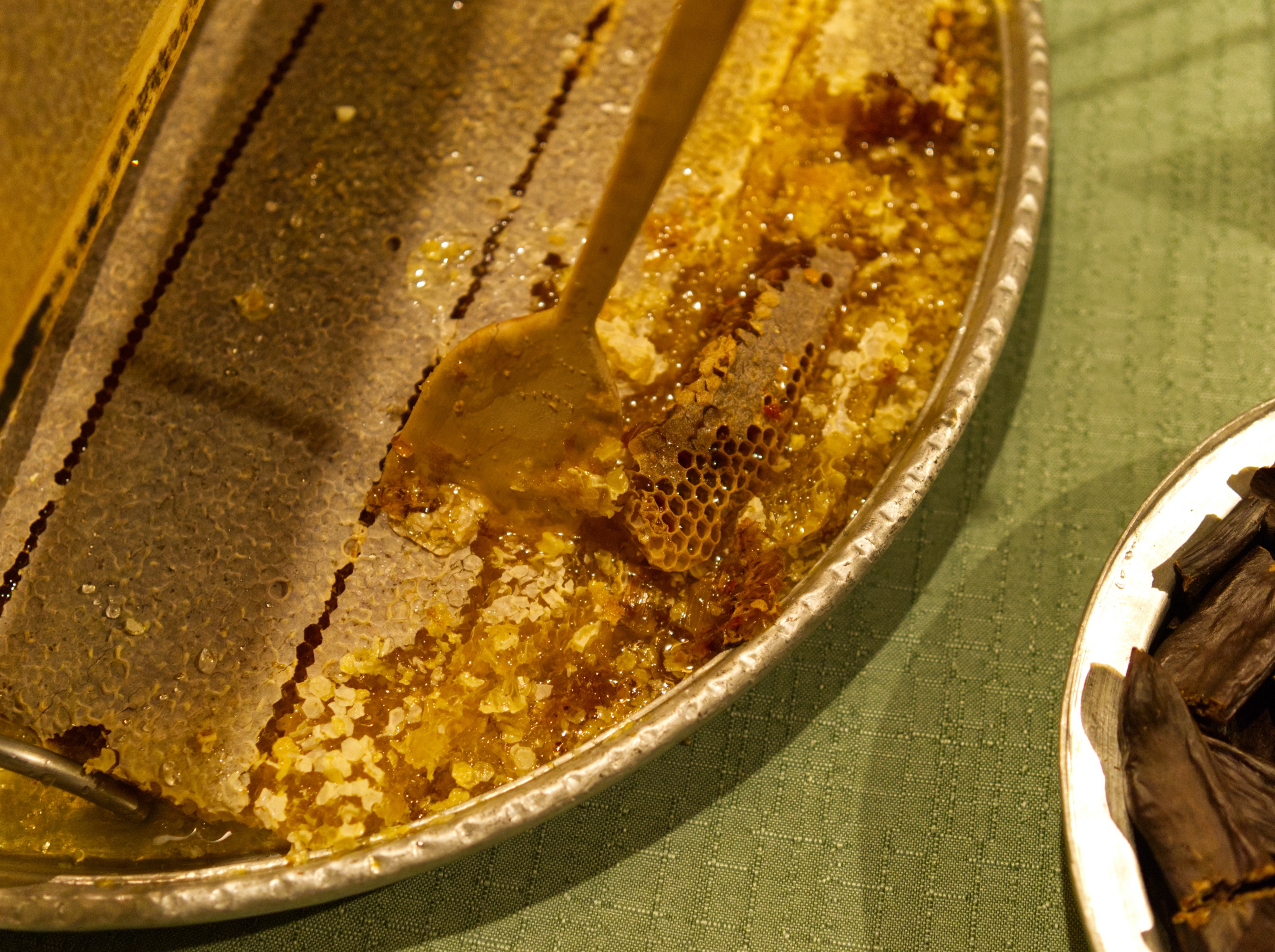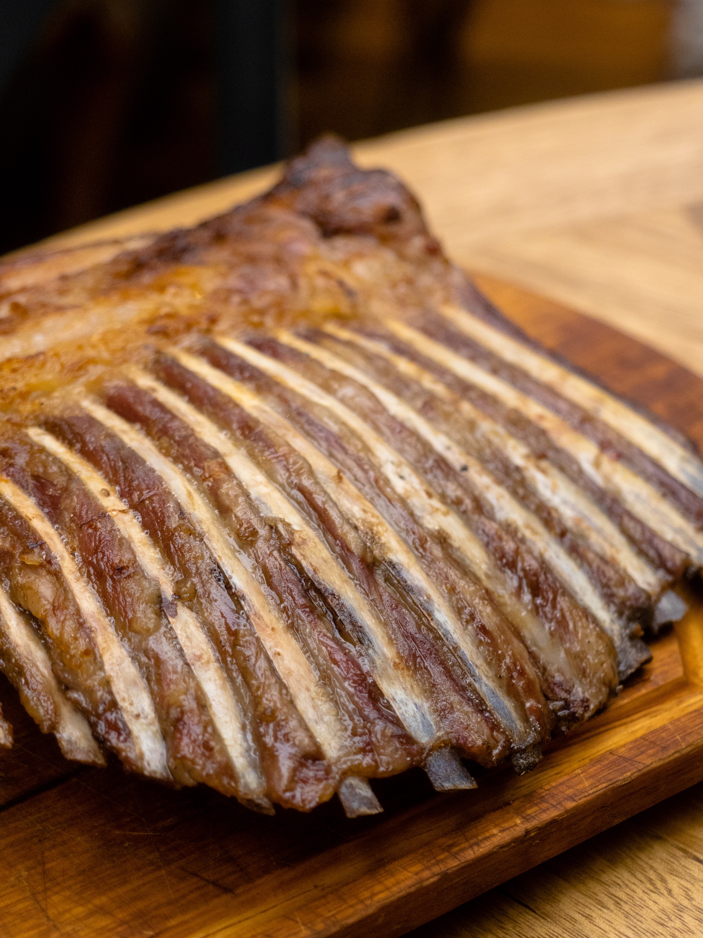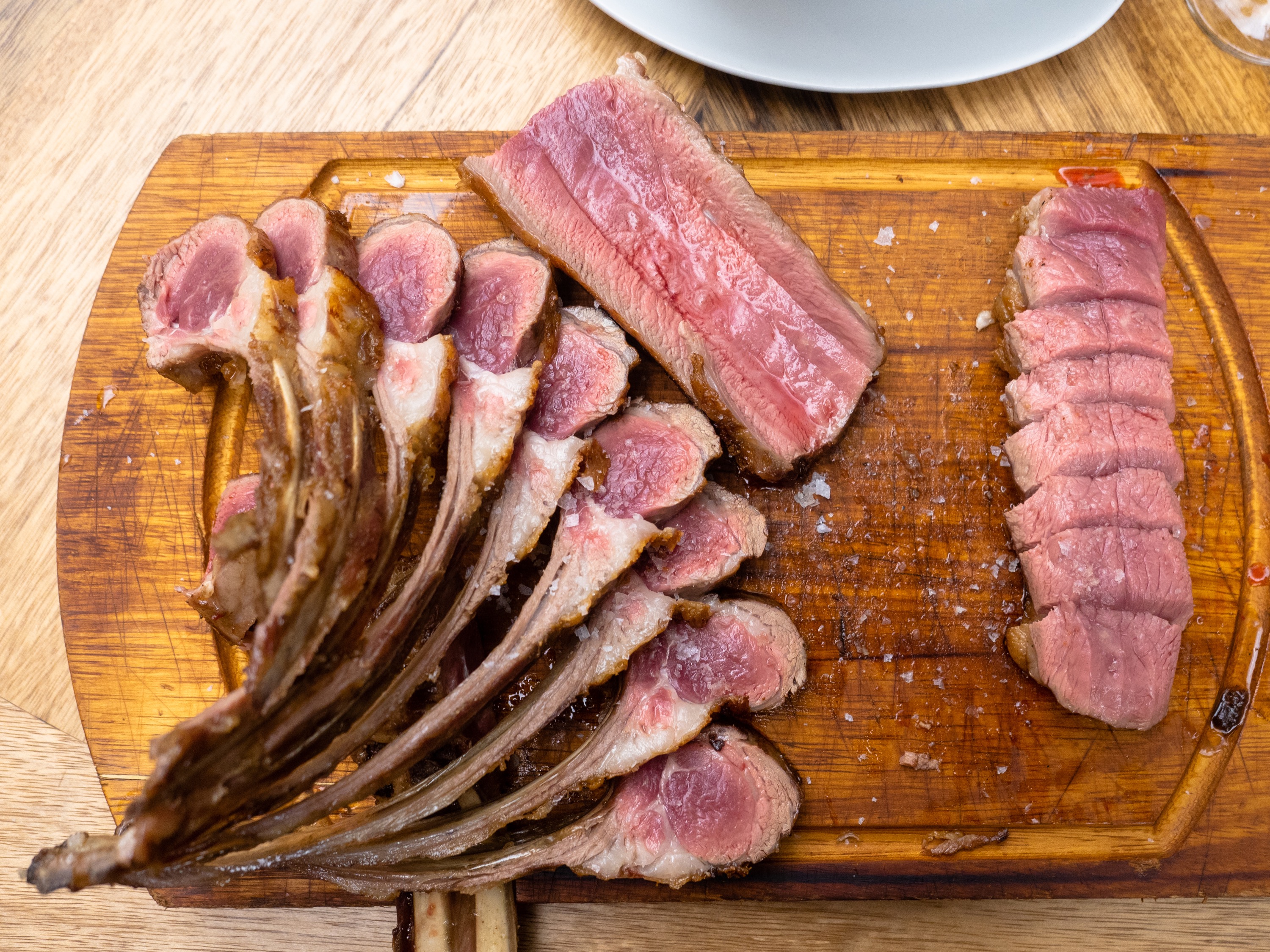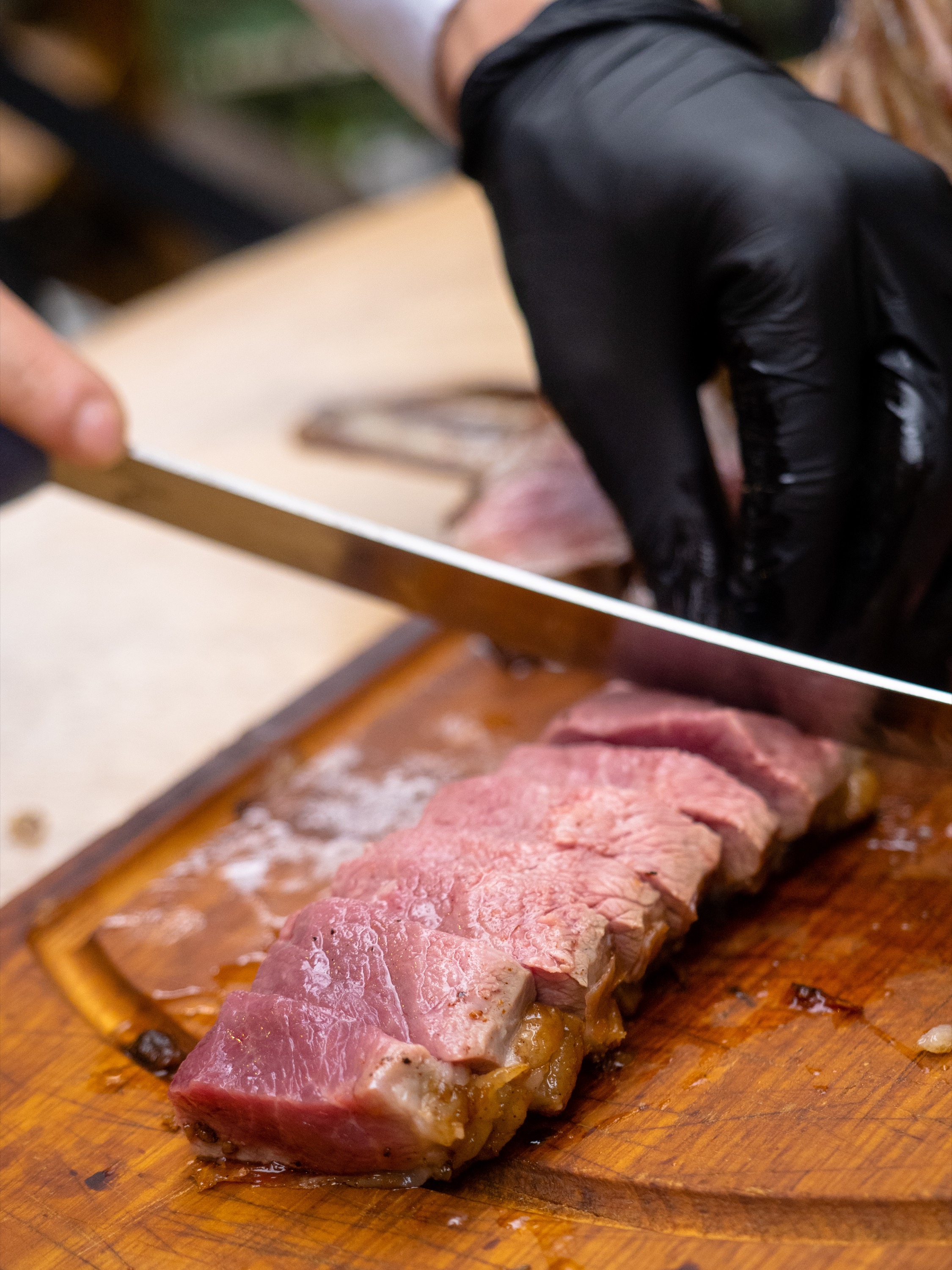 통째로 나온 양갈비 한 쪽. 직접 보니 평소 양고기를 좋아하는 저도 이걸 다 먹을 수 있을까 싶더라고요. 갈빗대는 물론 안쪽에 있는 갈비살까지 눈앞에서 정성스럽게 손질을 합니다. 아마도 평생 다시 먹을 일 없는 식사라 열심히 사진을 찍었죠.