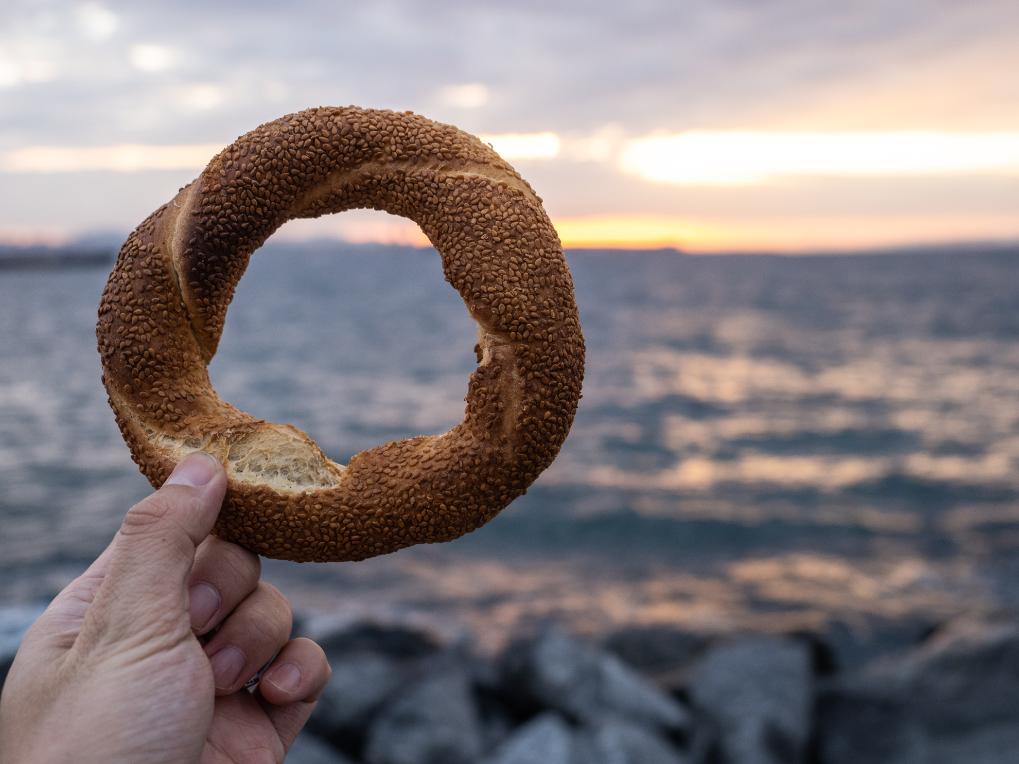워낙에 저렴한 빵이라 아침에 바닷가에 가면 빵 바구니를 짊어지고 다니는 할아버지가 갈매기에게 주기 좋다며 빵을 권하는 풍경도 볼 수 있었습니다. 저도 2리라, 한국돈 약 400원에 구입한 시미트를 뜯어 갈매기들을 유인해 보았죠.