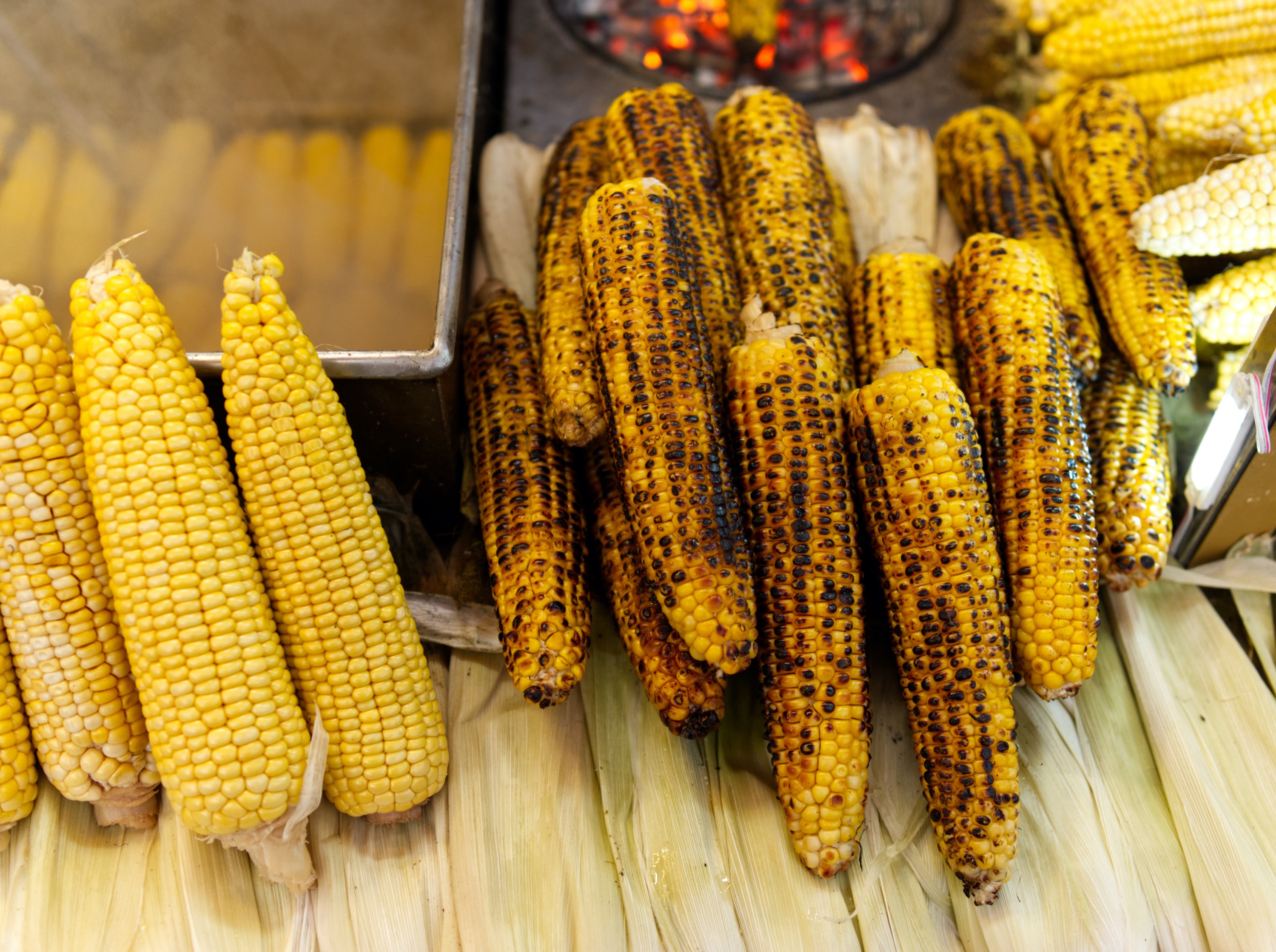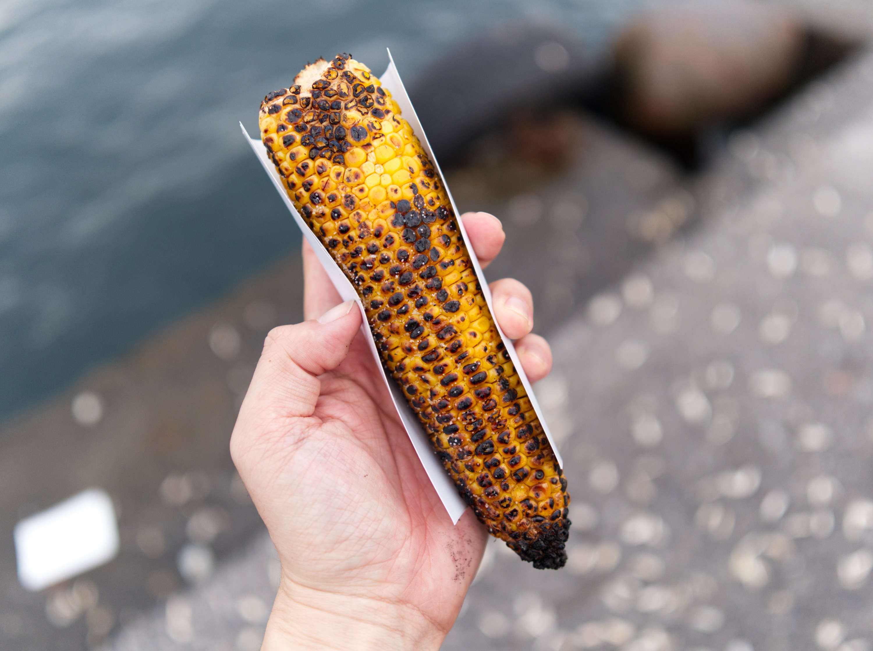 물에 한 번 삶은 뒤 구운 옥수수는 씹을 때 채즙이 입안을 가득 채우는 매력이 있습니다. 독특하게 여기선 소금을 뿌려서 먹더라고요. 저는 설탕쪽이 더 좋다고 생각합니다만 짭짤한 군옥수수 맛이 나쁘지 않았습니다.