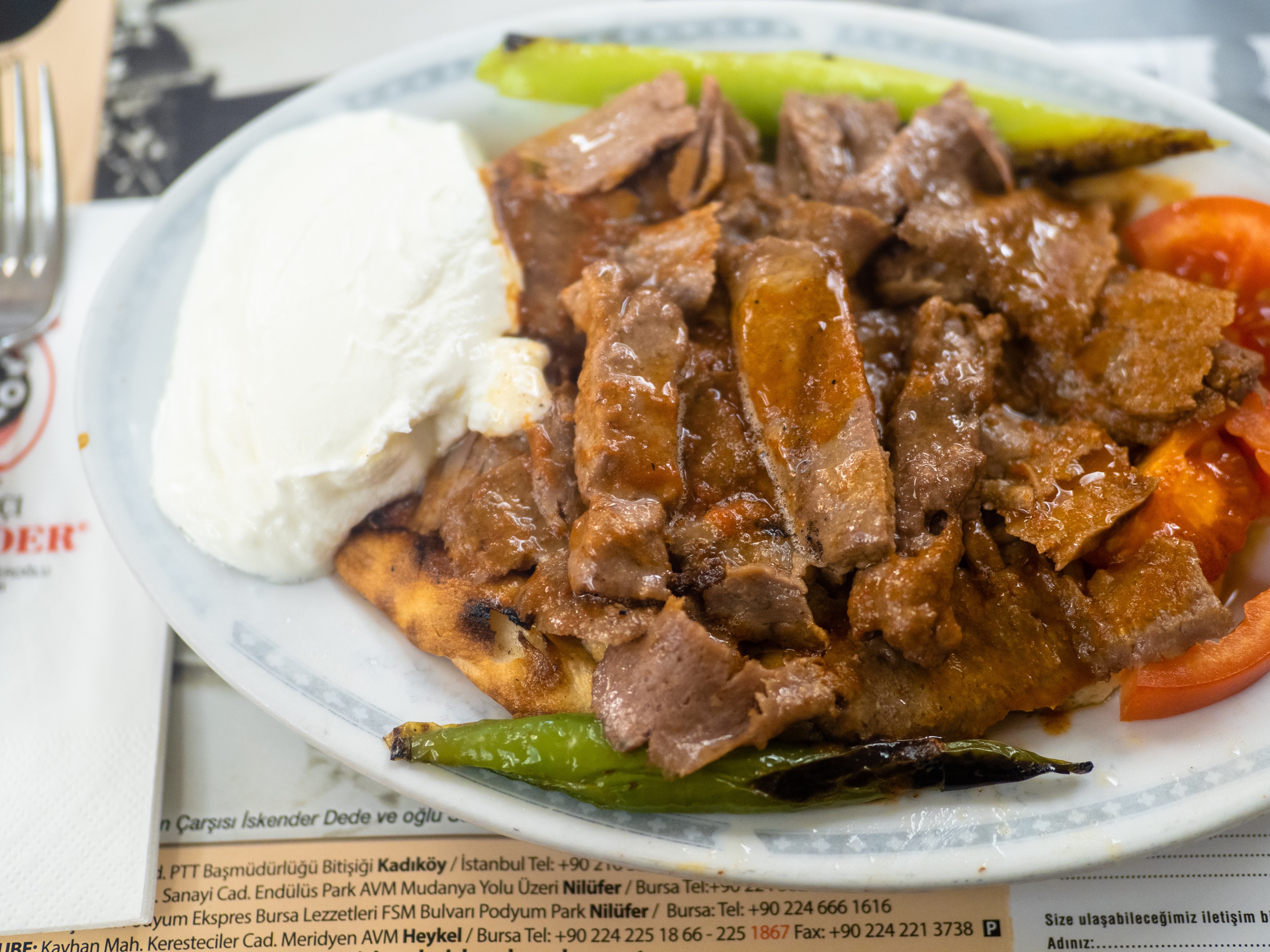 그 중에서 가장 맛있게 먹었던 건 이스켄데르 케밥. 1867년부터 시작된 이 케밥은 얇게 썬 양고기와 피데 빵, 토마토와 요거트, 채소로 구성된 근사한 한 접시의 케밥입니다. 거기에 먹기 직전 녹인 버터를 끼얹어 풍미를 살리는 것이 핵심이죠.