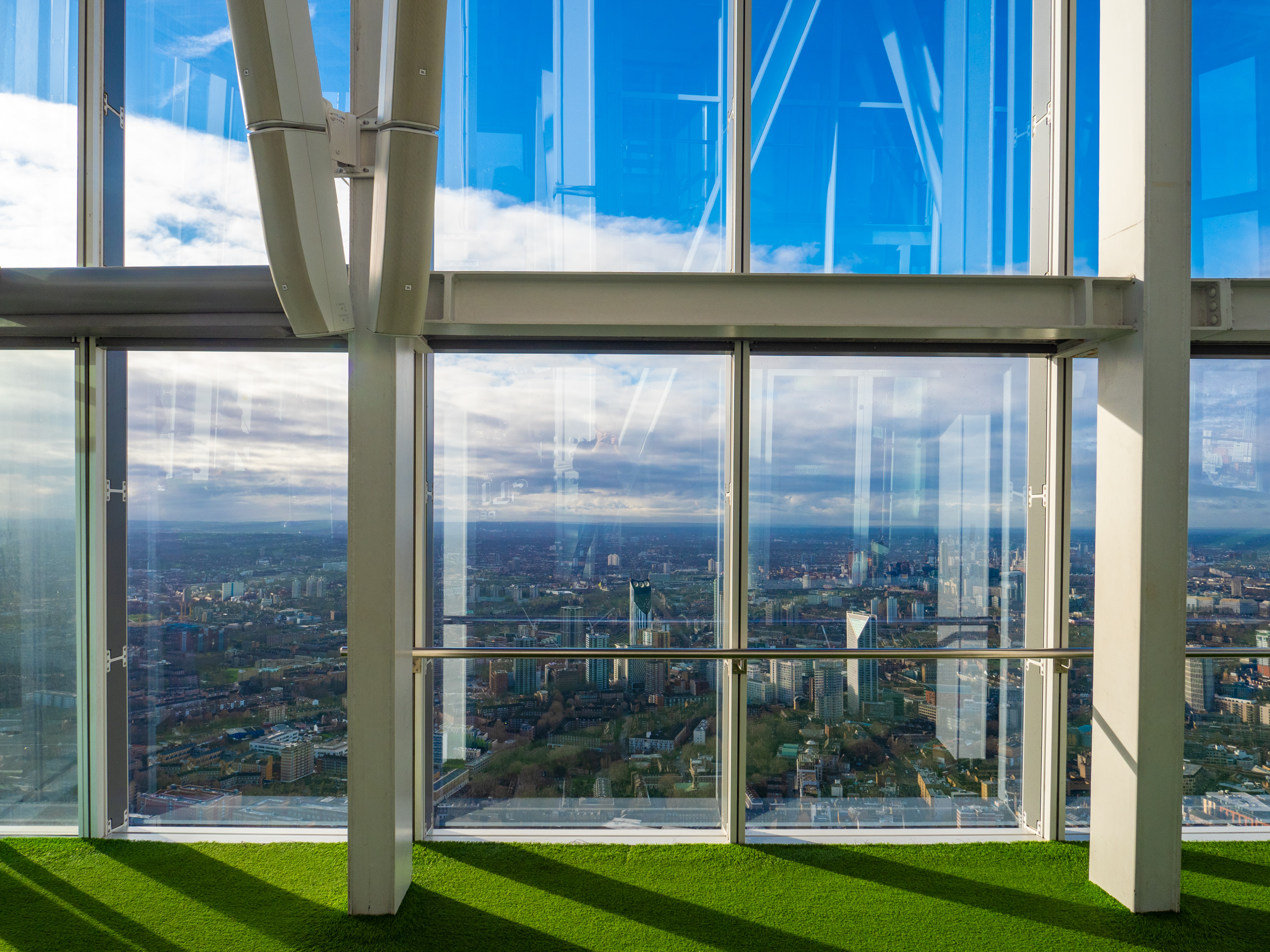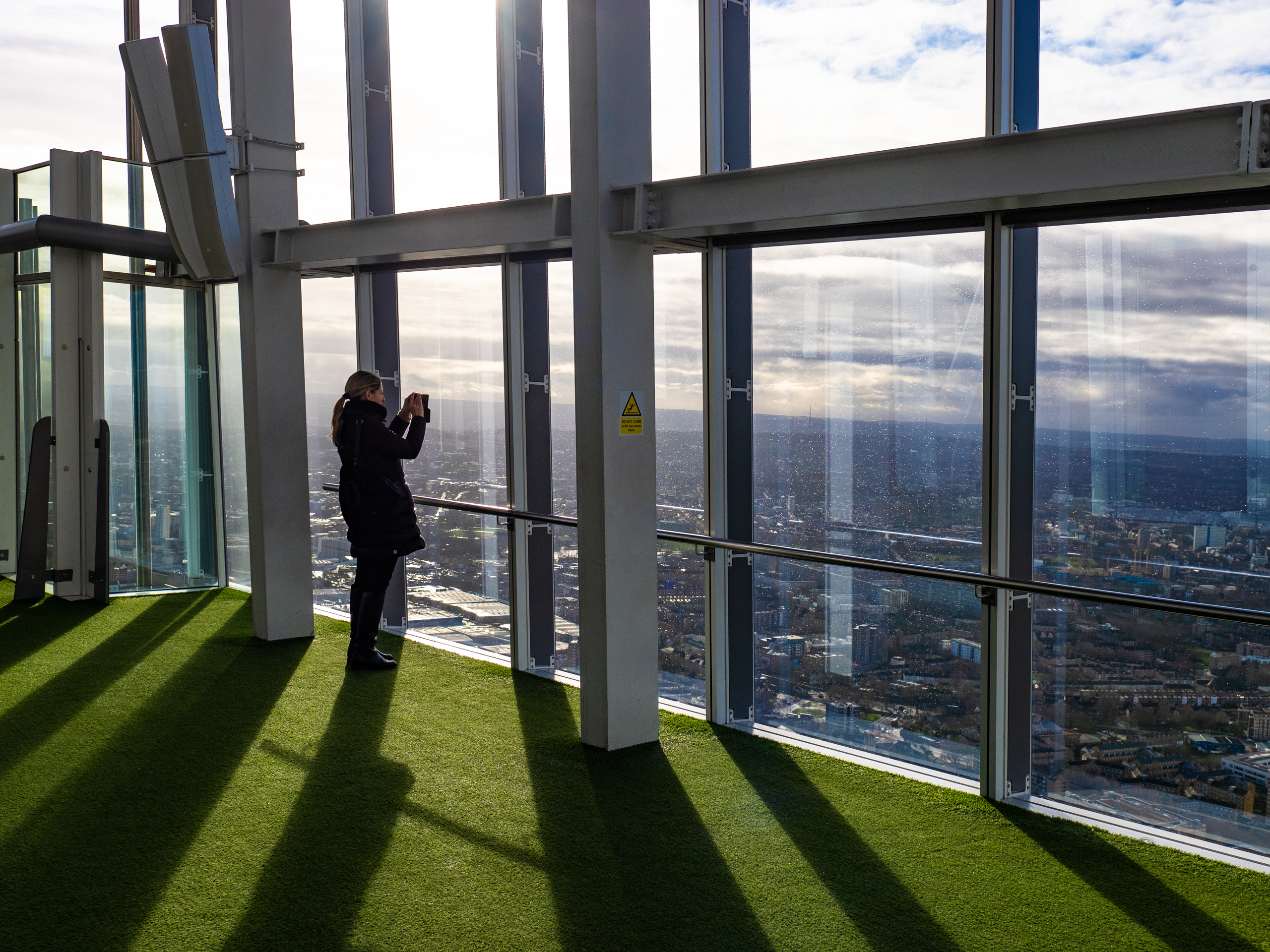 더 샤드의 전망대는 두 개 층으로 나뉘어 있습니다. 가장 윗층은 꼭대기가 오픈된 야외 공간으로 가장 높다는 상징적인 의미에 어울리는 곳이지만 고지대다보니 기온이 낮습니다. 그래서 그 아래 비교적 따뜻한 실내 전망대에서 감상하시는 것도 좋겠어요. 저는 추위를 타지 않으니 역시 가장 높은 곳으로 갑니다.