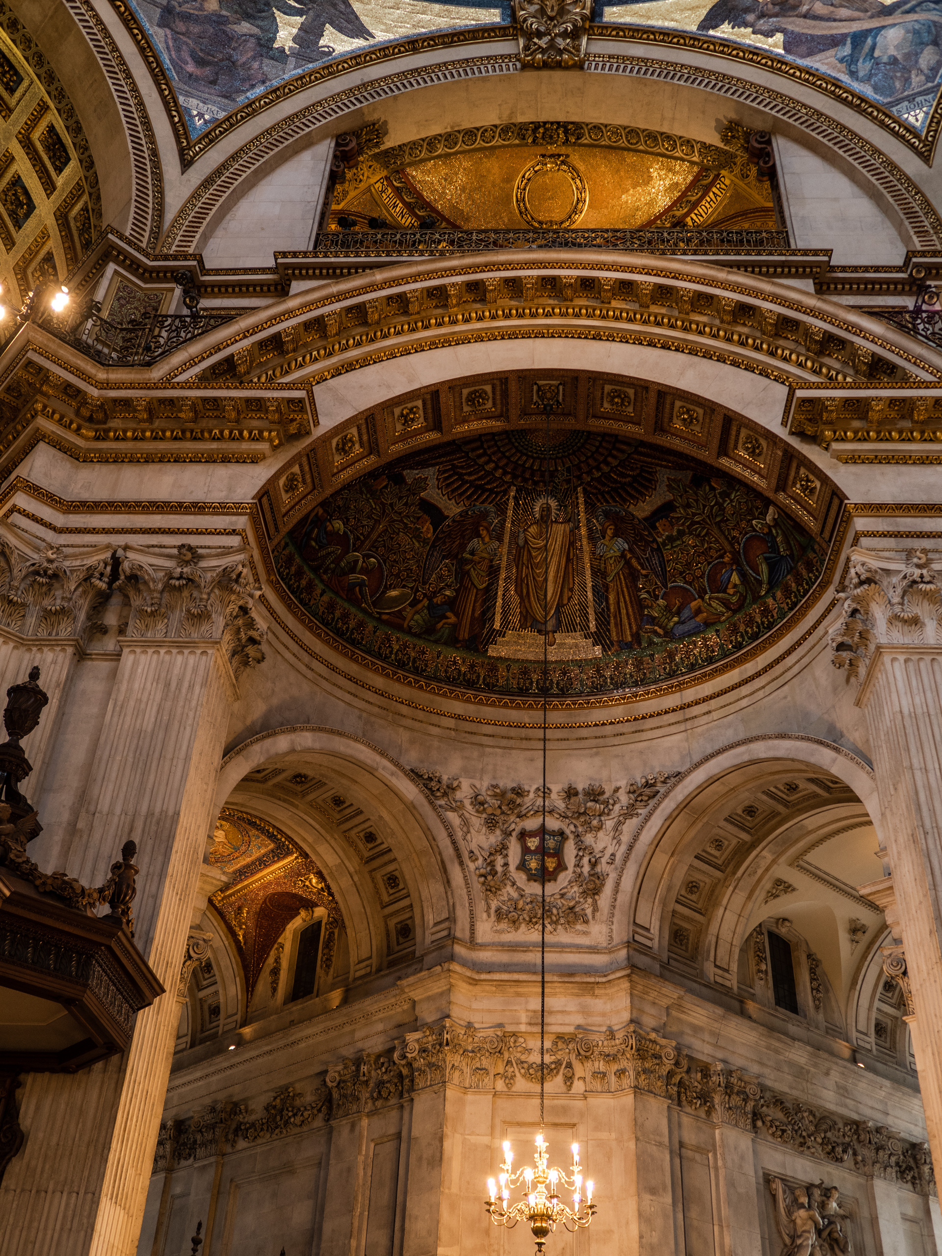 여행 다니면서 여러 성당을 다녔지만 세인트 폴 대성당의 내부는 그 중에서도 손에 꼽을 수 있을만큼 고풍스럽고 우아합니다. 내부 장식과 모자이크, 조각상의 보존 상태도 좋아서 오디오 가이드와 함께 내부 관람하는 즐거움도 다른 곳보다 컸습니다. 2차 세계대전 중 주변 건물 중 상당수가 소실됐지만 세인트 폴 대성당은 무사히 그 모습을 간직하고 있다고 합니다.