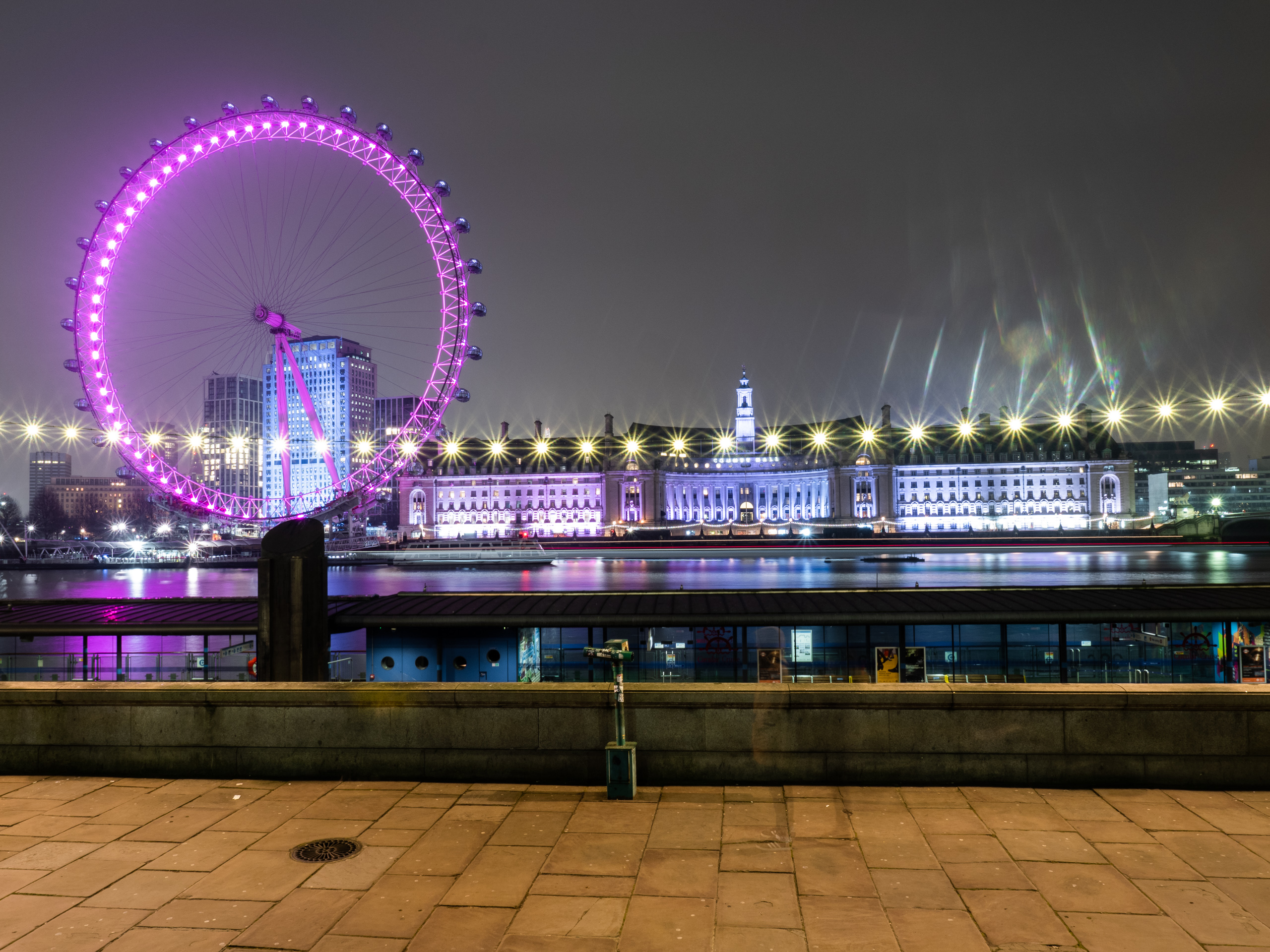웨스트민스터 브리지의 풍경을 아름답게 담으려면 역시 장노출을 이용해 템즈 강과 런던 아이를 선명하게 담아내는 것이 최고입니다. F11 이상의 높은 조리개 값을 사용하면 예쁜 빛 갈라짐 효과를 얻을 수도 있죠. 다만 삼각대와 긴 촬영 시간이 필요하니 F1.2와 같은 밝은 조리개 값을 가진 렌즈를 활용해 밤 풍경을 깨끗하게 담는 것도 좋겠습니다.