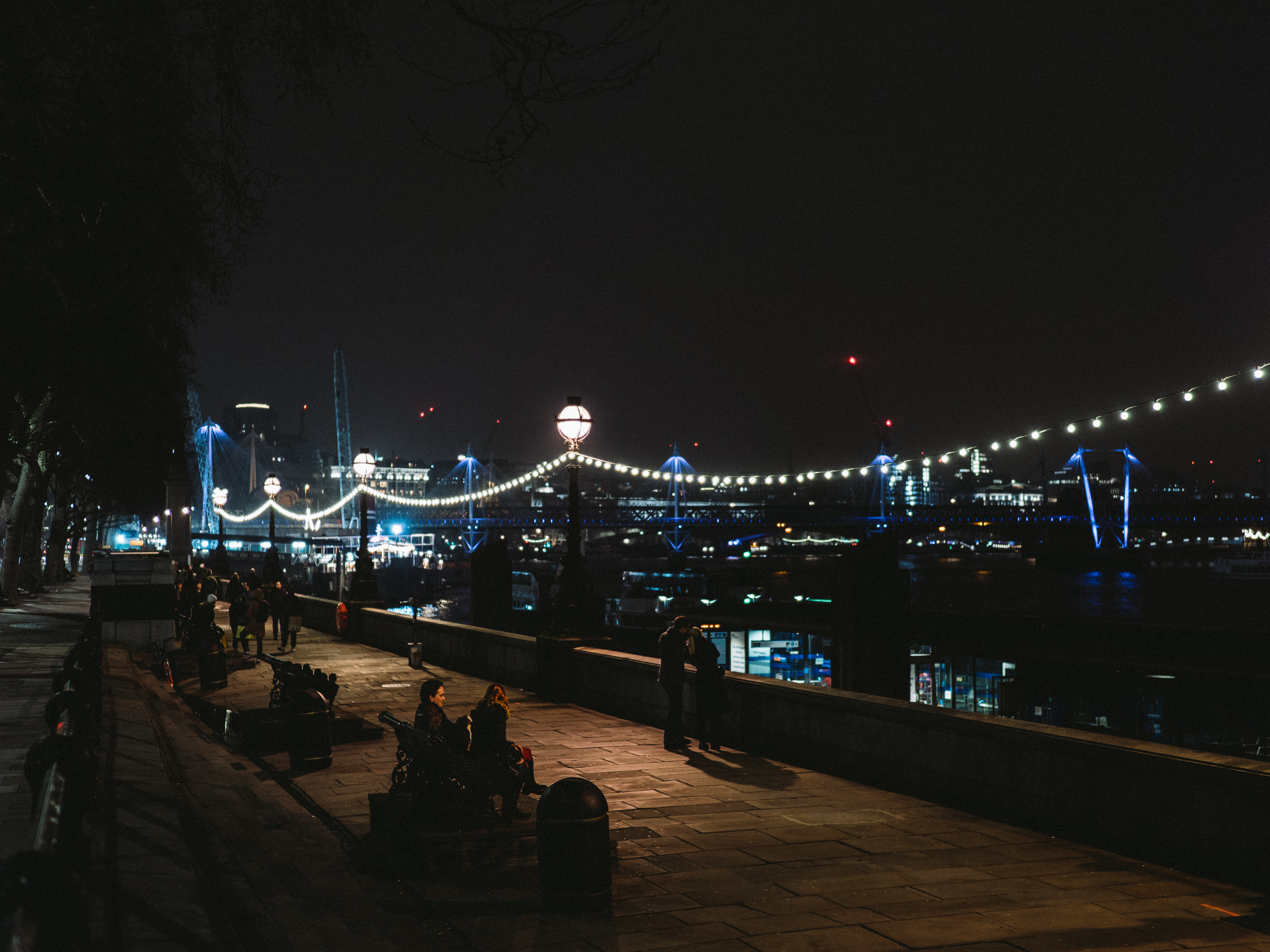특히 이 공간은 밤에 아름다운 것 같아요. 늦은 밤까지 불을 밝히는 보랏빛 런던 아이와 주변 건물들, 잠잠한 템즈 강 위로 이따금 지나가는 배가 만드는 궤적. 이것들이 만드는 조화가 마음에 들었습니다. 여행 첫 날의 아침과 밤을 이곳에서 보냈는데, 야경에 반해서 자정이 넘을 때까지 사진을 찍었습니다.