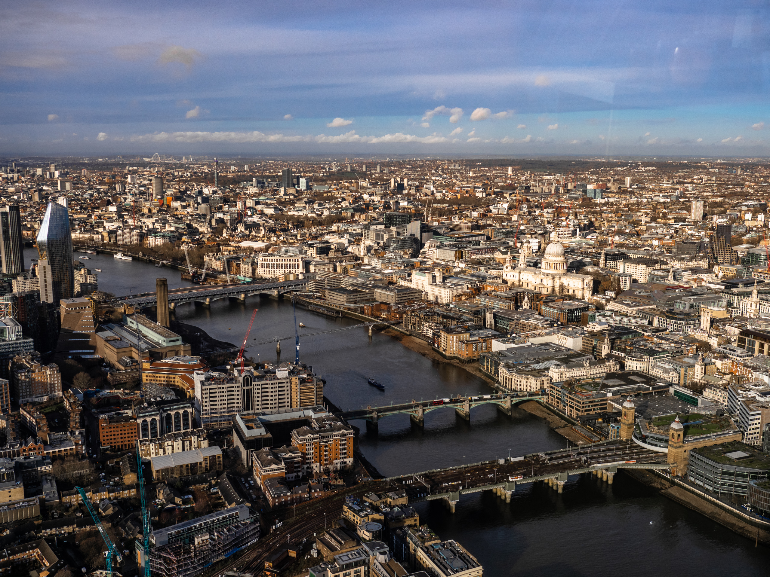 300m 위에서 내려다보는 런던은 역시 아름답습니다. 끝이 보이지 않았던 템즈 강의 굽이치는 형태, 그리고 조금 전까지 있었던 세인트 폴 대성당과 런던 아이 등을 찾아보는 즐거움까지. 운 좋게도 제가 더 샤드 전망대에 있던 두 시간동안 내내 꾸물거리던 런던 하늘이 화창하게 갰습니다. 덕분에 기억에 남는 런던 뷰를 감상하고, 사진으로 담아올 수 있었어요. 모든 도시에서 전망대를 찾는 저같은 마천루 마니아라면 런던에선 더 샤드에 가셔야 합니다.