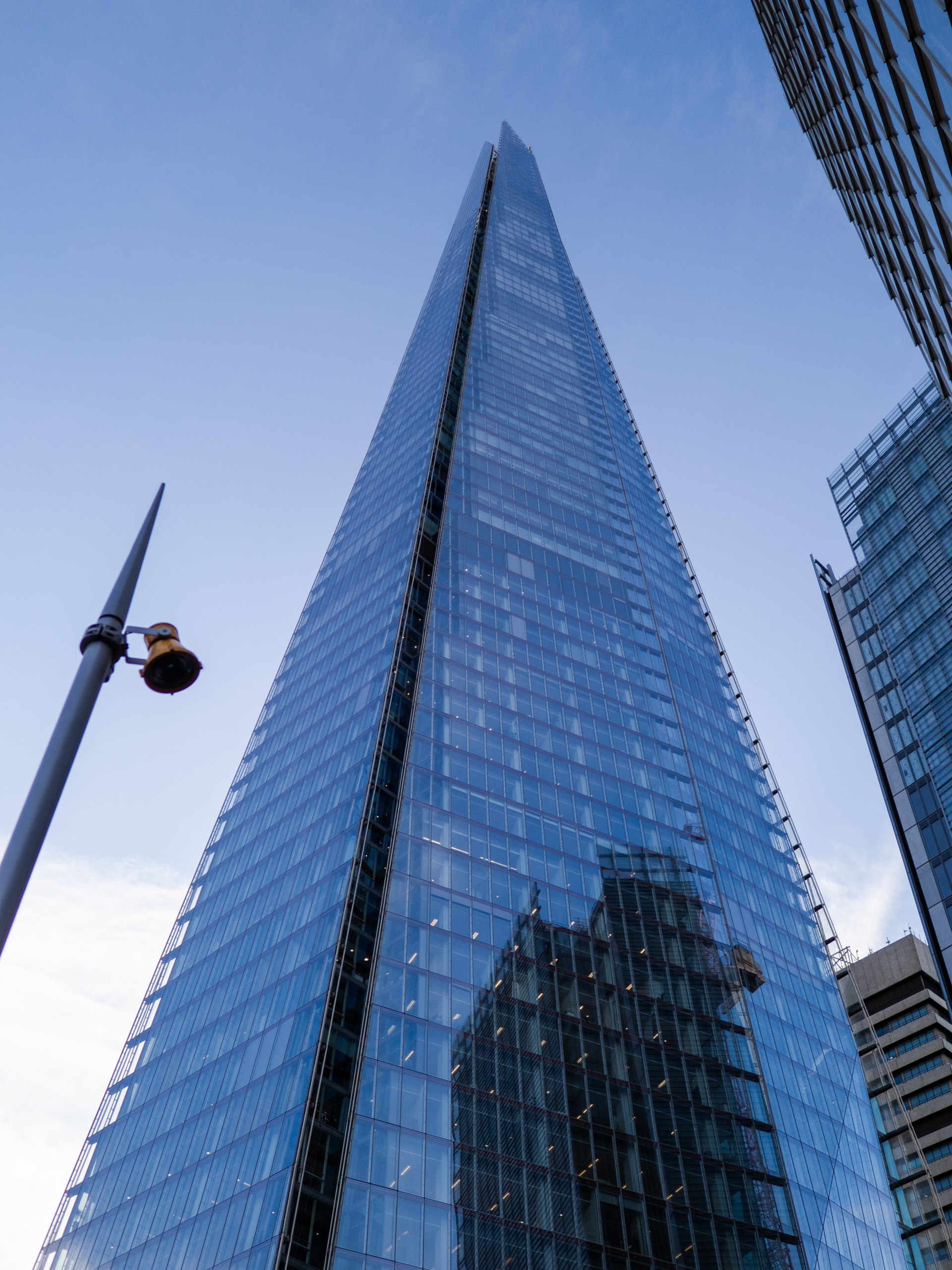 역사적인 성당을 보고 왔으니 그 다음은 런던에서 가장 현대적인 건축물로 가 봐야겠죠. 높이 300m로 런던의 마천루 역할을 담당하고 있는 더 샤드입니다. 칼날과 같은 모습이 잠실의 롯데 타워와 상당히 흡사합니다. 이 꼭대기에 런던 전경을 360도로 볼 수 있는 전망대가 있습니다.