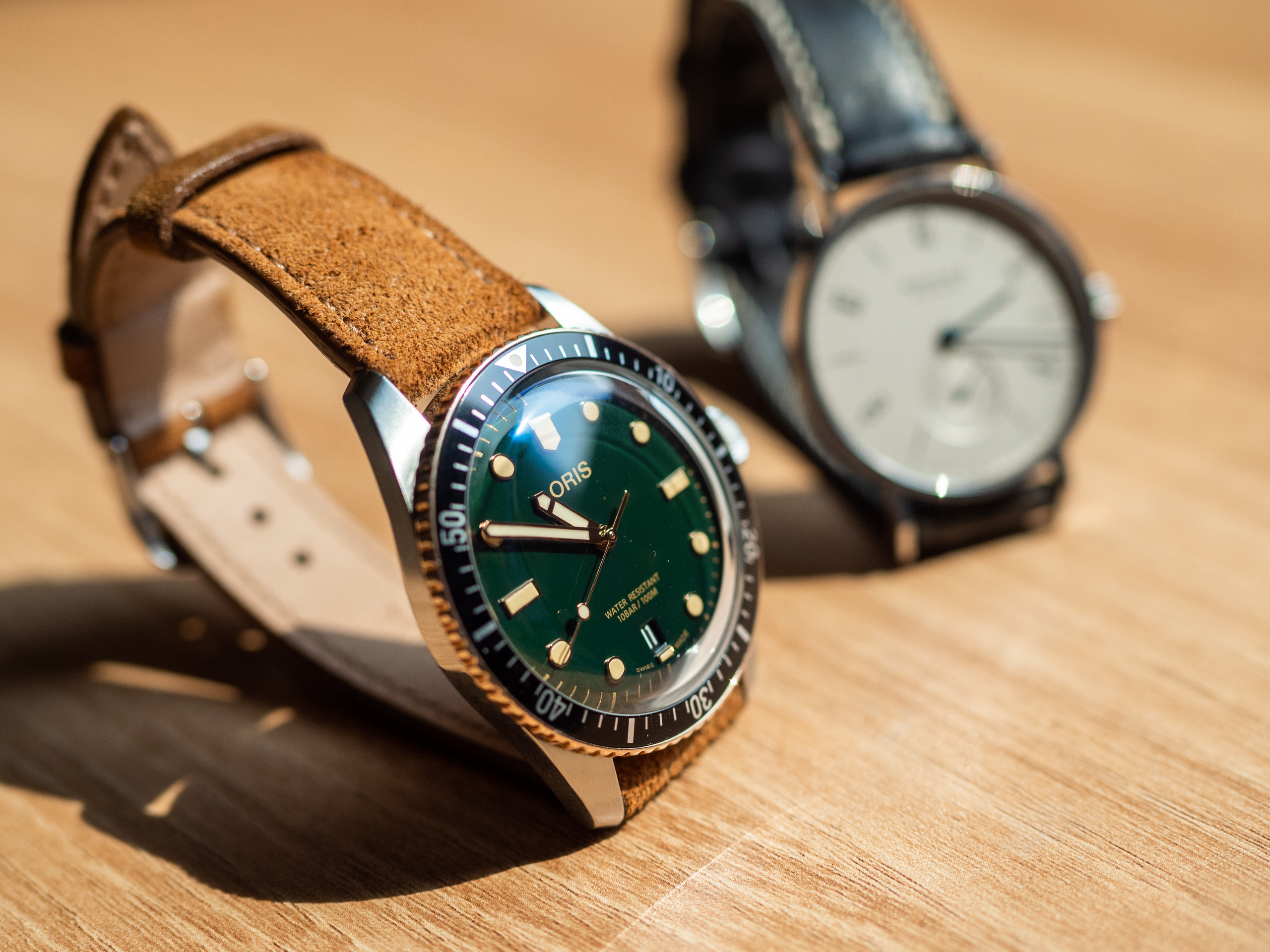 구매하자마자 찍은 사진들. 평소 좋아하던 그린 컬러의 다이얼 때문에 노모스 탕겐테를 제치고 가장 자주 손이 가는 시계가 됐습니다. 캐주얼한 차림, 포멀한 차림 모두 어울리는 것이 이런 빈티지 스타일 워치의 매력이죠.