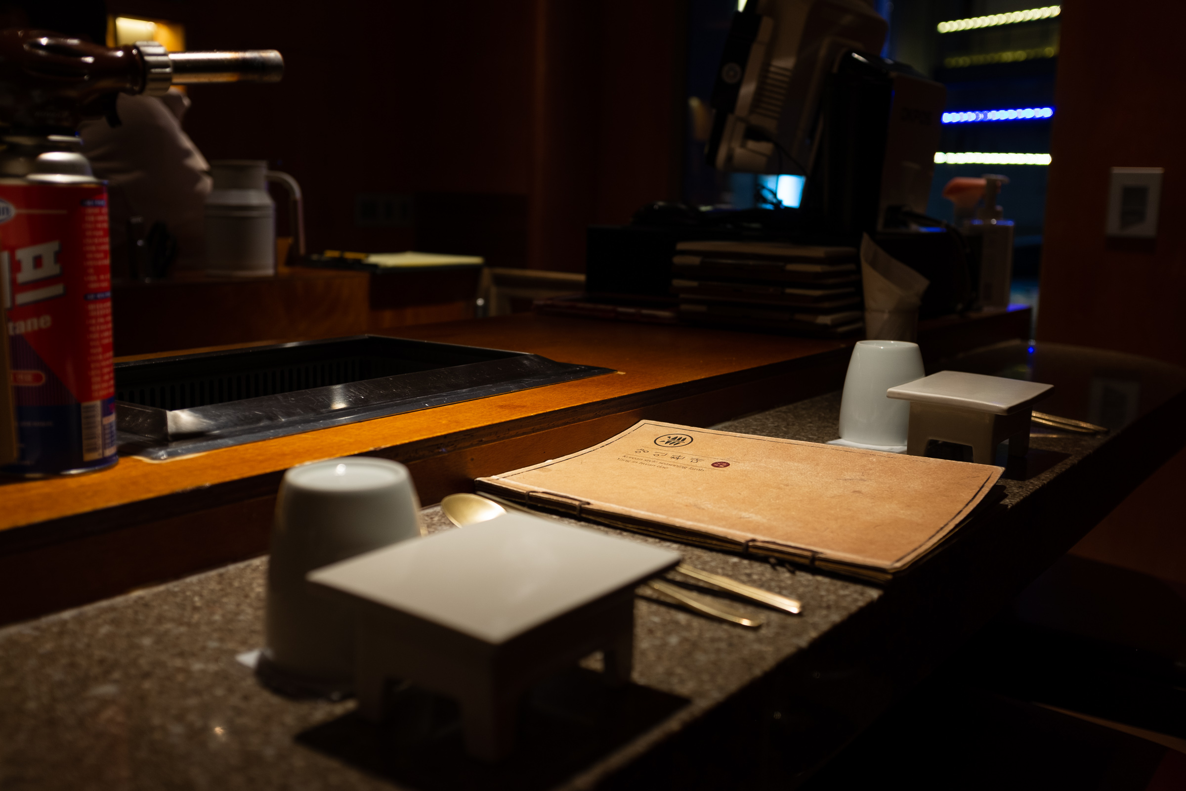 어둑어둑한 조명과 정갈한 상차림, 나란히 앉아 먹기 좋은 테이블 구성까지. 여느 양고기집과 다르지 않았지만 이곳엔 4인 테이블도 있어서 모임을 하기에도 좋아 보였습니다. 독립된 테이블이 아니고 바와 연결되어 있어서 직접 구울 필요도 없고요. 양고기와 와인을 드시는 분들도 계신 걸 보면 콜키지도 되는 것 같습니다. 양고기와 와인이 참 잘 어울리죠.