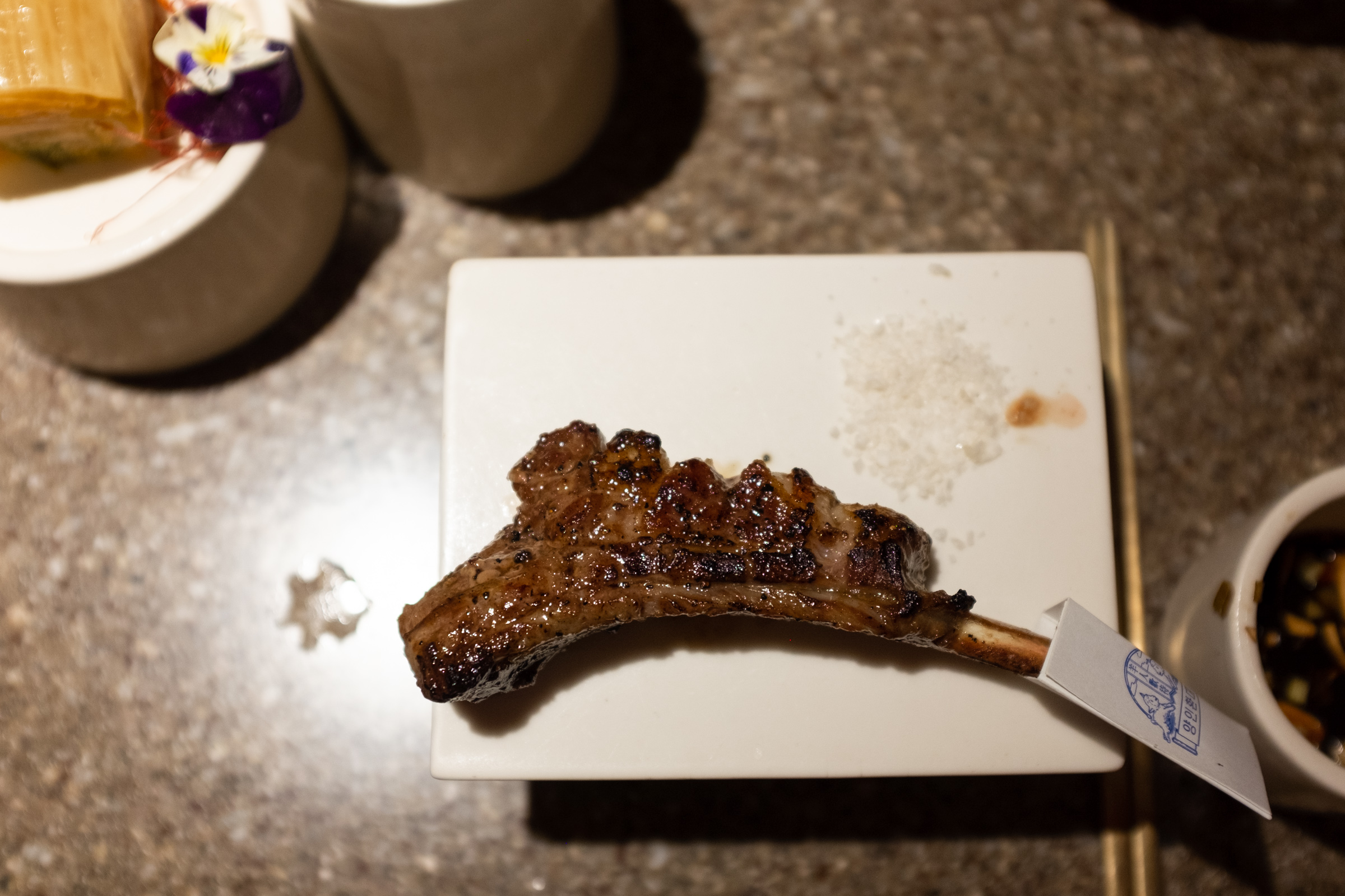 선홍빛 양갈비에 소금과 후추로 즉석에서 간을 하고 양 비계로 기름칠을 한 철판에 굽는 일련의 과정은 정말 아름답습니다. 다른 곳보다 좀 더 상세한 고기 설명, 그리고 숙련된 구이 실력이 인상적인 곳이었습니다. 저 작은 갈빗대 하나에도 부위를 잘게 나눠 한 점 한 점 특별한 기분으로 먹을 수 있어서 좋았고요.