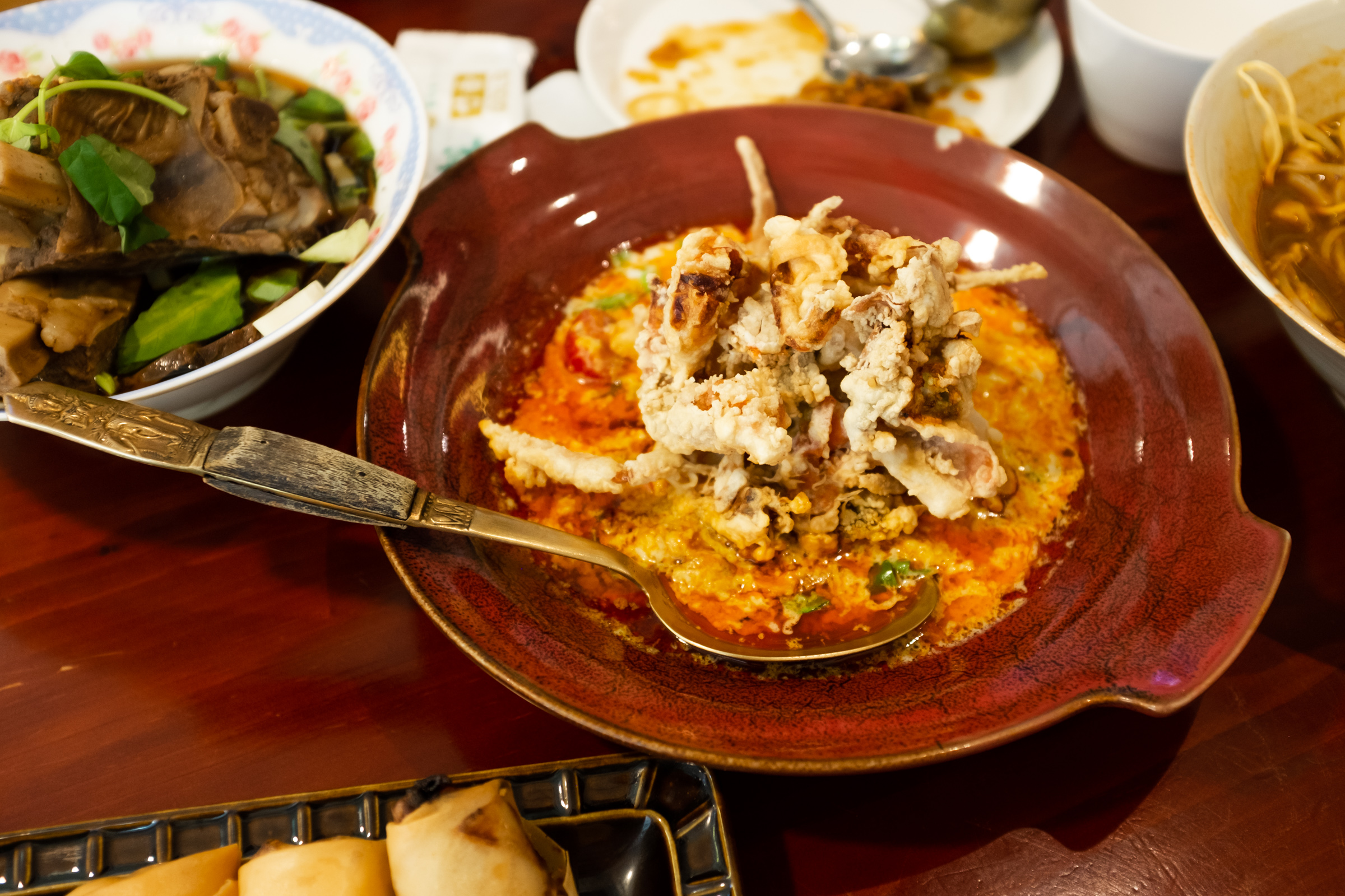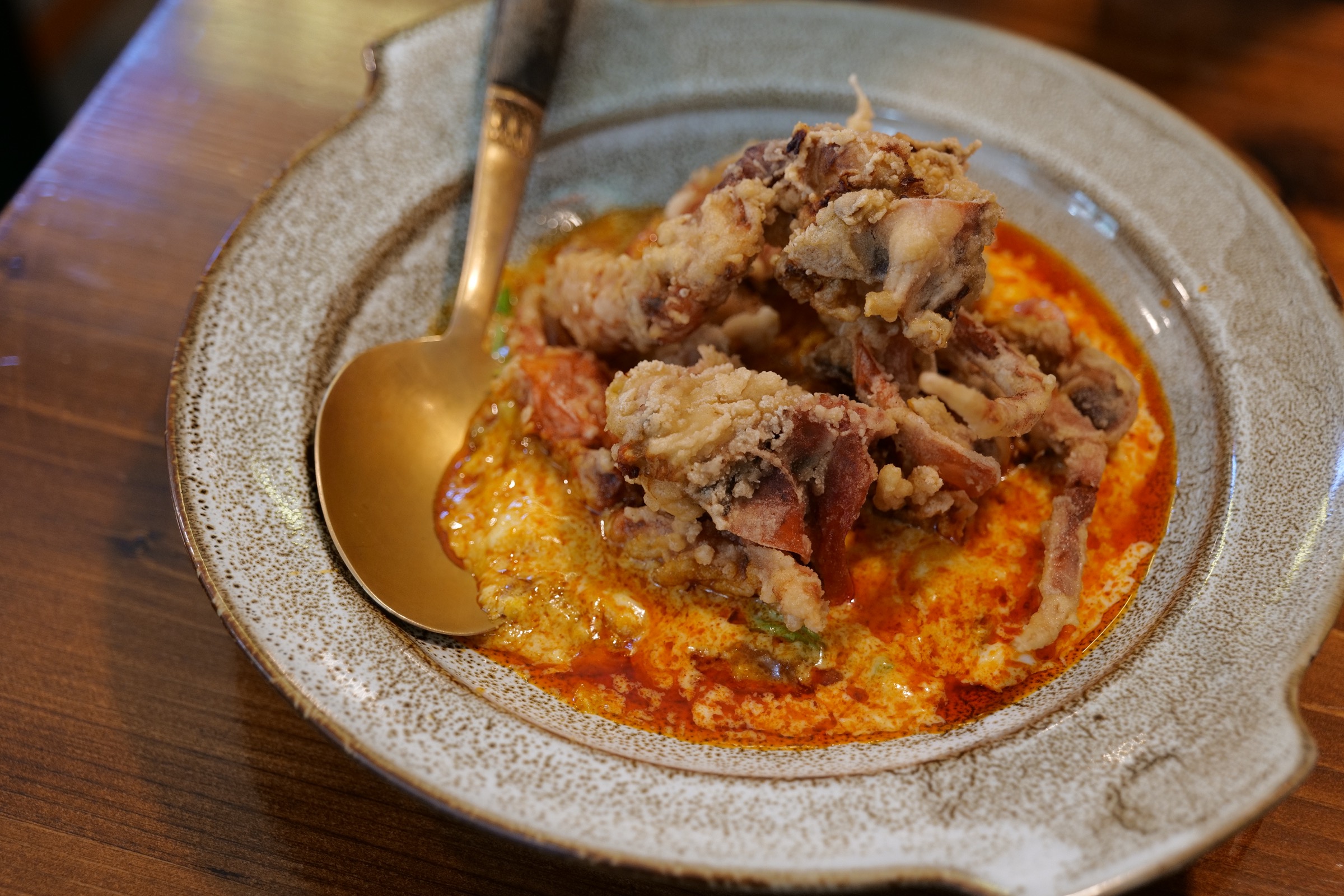 다음은 기대했던 푸빳퐁 커리. 점심 시간엔 만오천원에 먹을 수 있는데 두 사람이 먹기에 적당한 양입니다. 껍질째 먹을 수 있는 소프트쉘 크랩을 코코넛 향 가득한 커리 소스와 함께 먹는 요리입니다. 고소하면서 느끼함도 적당히 있고 끝맛에 살짝 도는 얼큰함까지 있어서 이곳에서 먹었던 메뉴 중 가장 마음에 들었습니다.