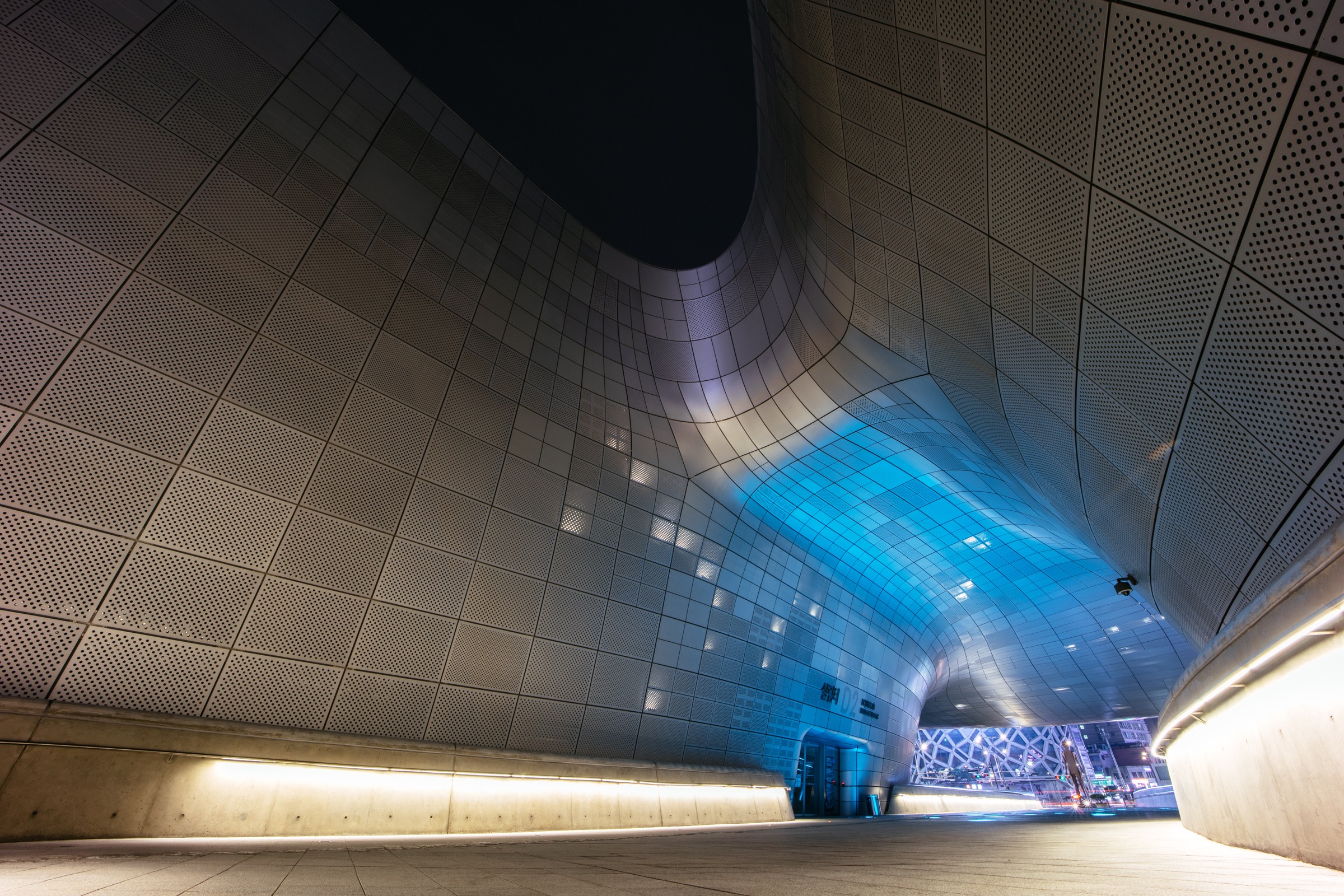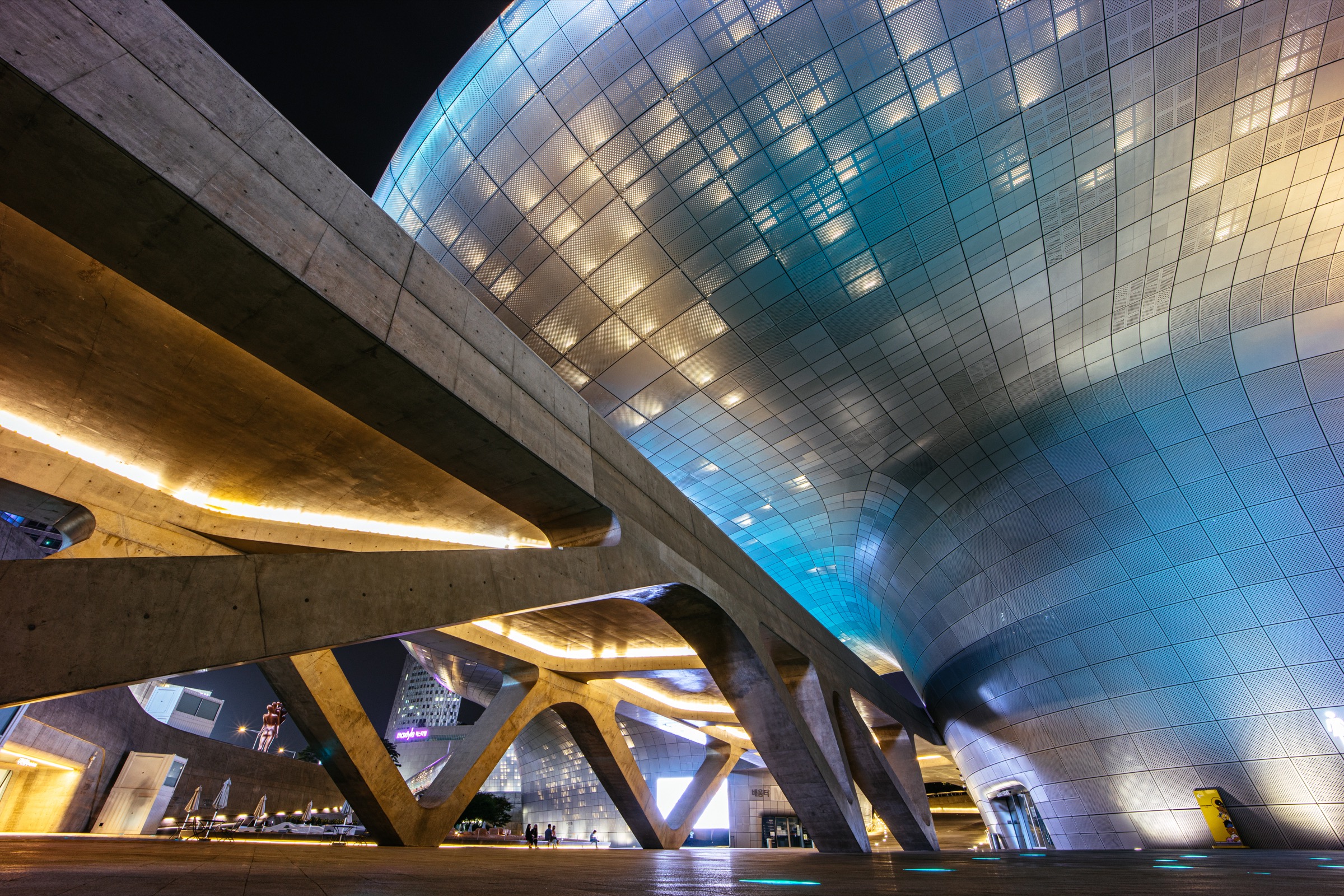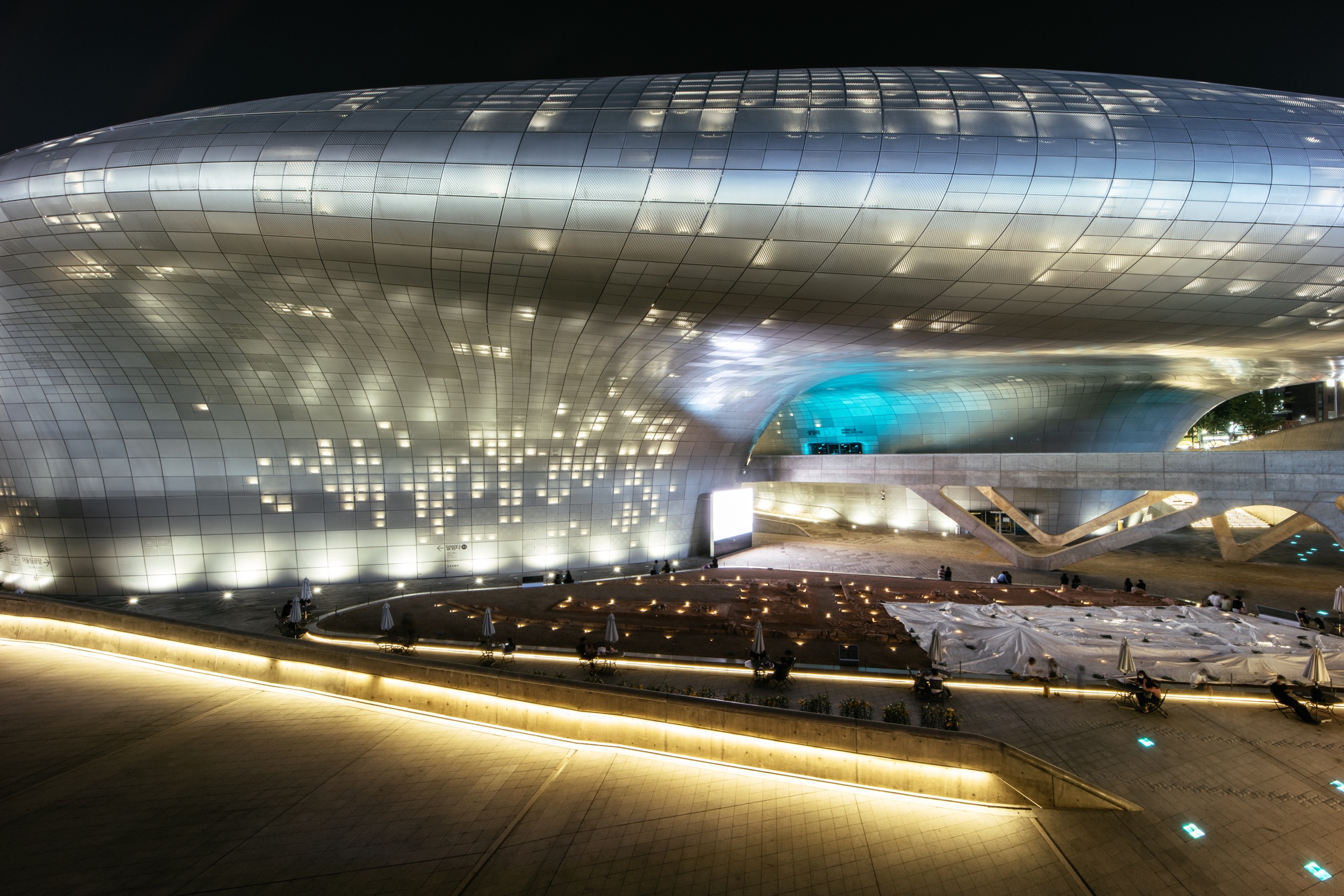 14mm 초광각의 매력은 풍경보다 오히려 이런 거대한 건축물을 찍을 때 도드라졌습니다. 표준-광각 렌즈로는 담을 수 없던 풍경이 프레임 안에 여유롭게 담기니 그 위력을 실감하게 되더군요. EOS R과 삼양 AF 14mm F2.8 RF 렌즈, 그리고 한 뼘 정도 길이의 미니 삼각대로 단촐한 구성이었지만 24mm 렌즈로 담을 수 없는 DDP 전경을 한 장에 다 담을 수 있었습니다. 건축물이 아름다운 유럽 여행에 초광각 렌즈가 필수라는 이야기를 많이 들었는데, 그간 애써 무시하며 여행했지만 경험해보니 인정하게 됩니다. 물론 주변부 왜곡에 대한 호불호가 갈리겠지만요.