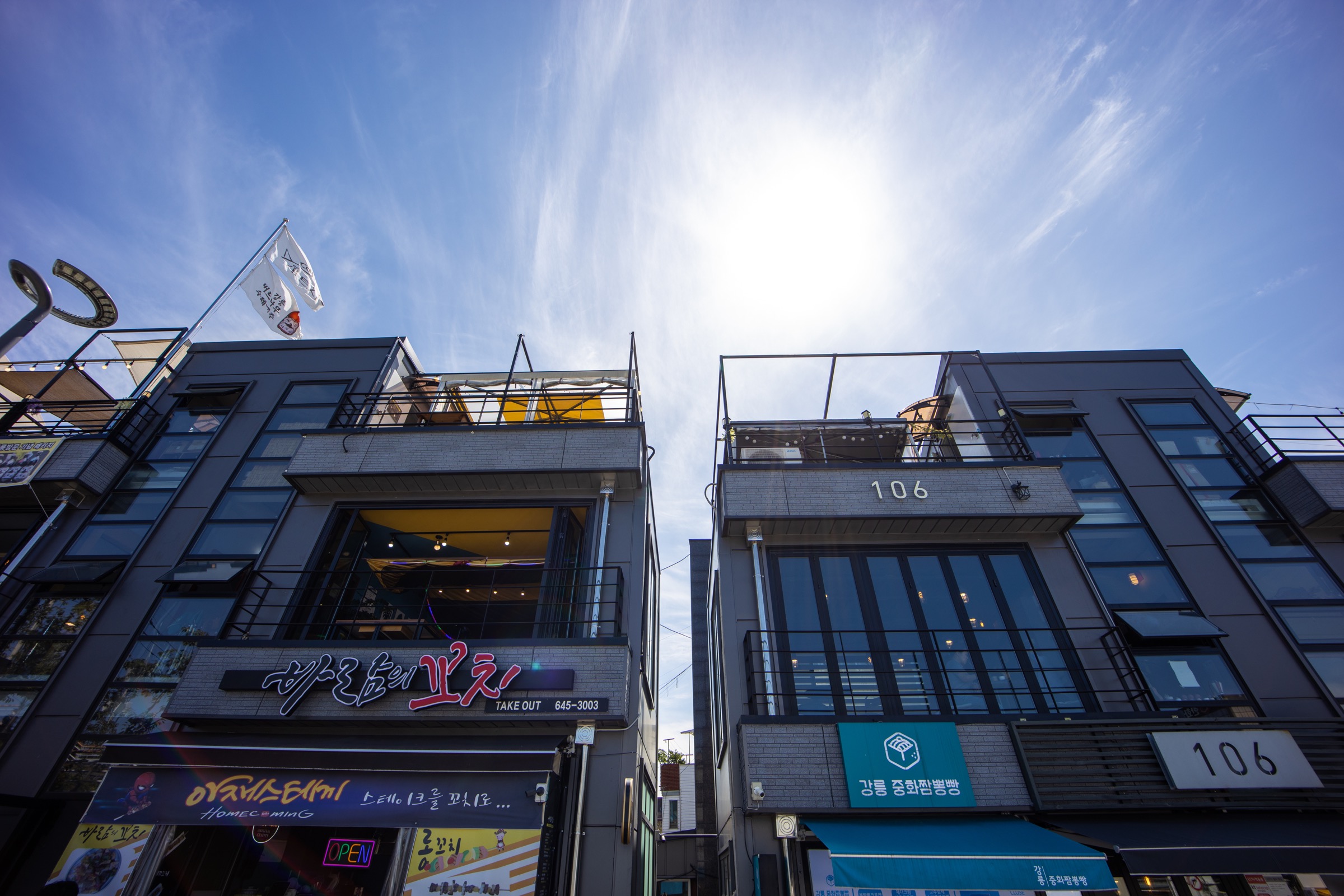 특히 우연히 찾아 들어간 초당 갤러리에서 담은 작은 네모창 밖 풍경, 강릉에 올 때마다 들리는 안목 카페거리 안쪽 벽화 골목을 평소와 다른 프레임으로 담을 수 있어 즐거웠습니다. 처음에는 신경 쓰이는 왜곡도 다이내믹한 연출로 소화하거나 정 안되면 후보정 때 주변부를 잘라내 사용할 생각으로 촬영하니 고민이 한결 줄더군요.