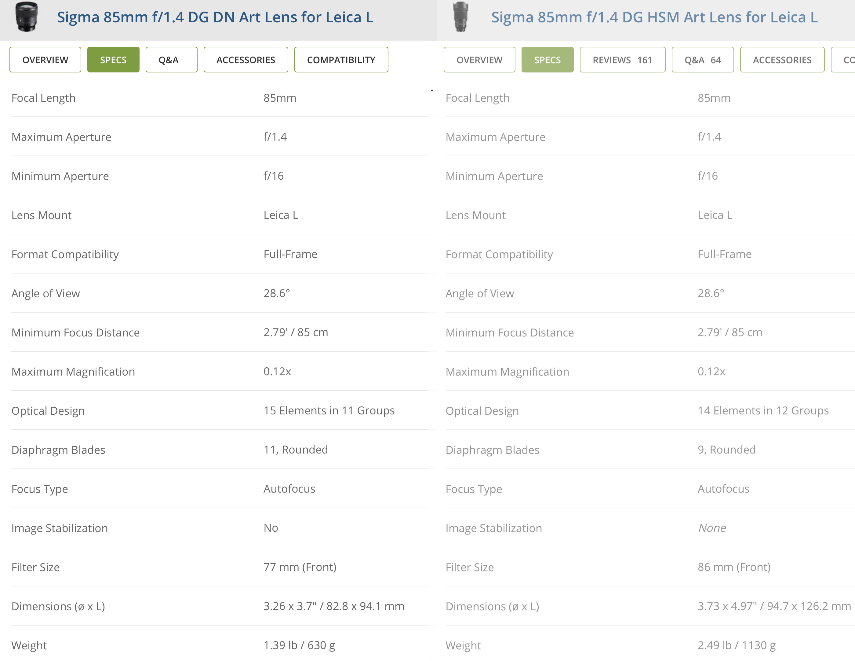 위 표는 두 85mm F1.4 ART 렌즈의 사양을 비교한 것입니다. 85mm 초점거리와 F1.4 조리개 값을 제외하면 구성 등 대부분이 바뀌었습니다. 그 중 11매의 원형 조리개 날이 만드는 빛갈라짐이 기대됩니다. 야경도 촬영해봐야겠어요.