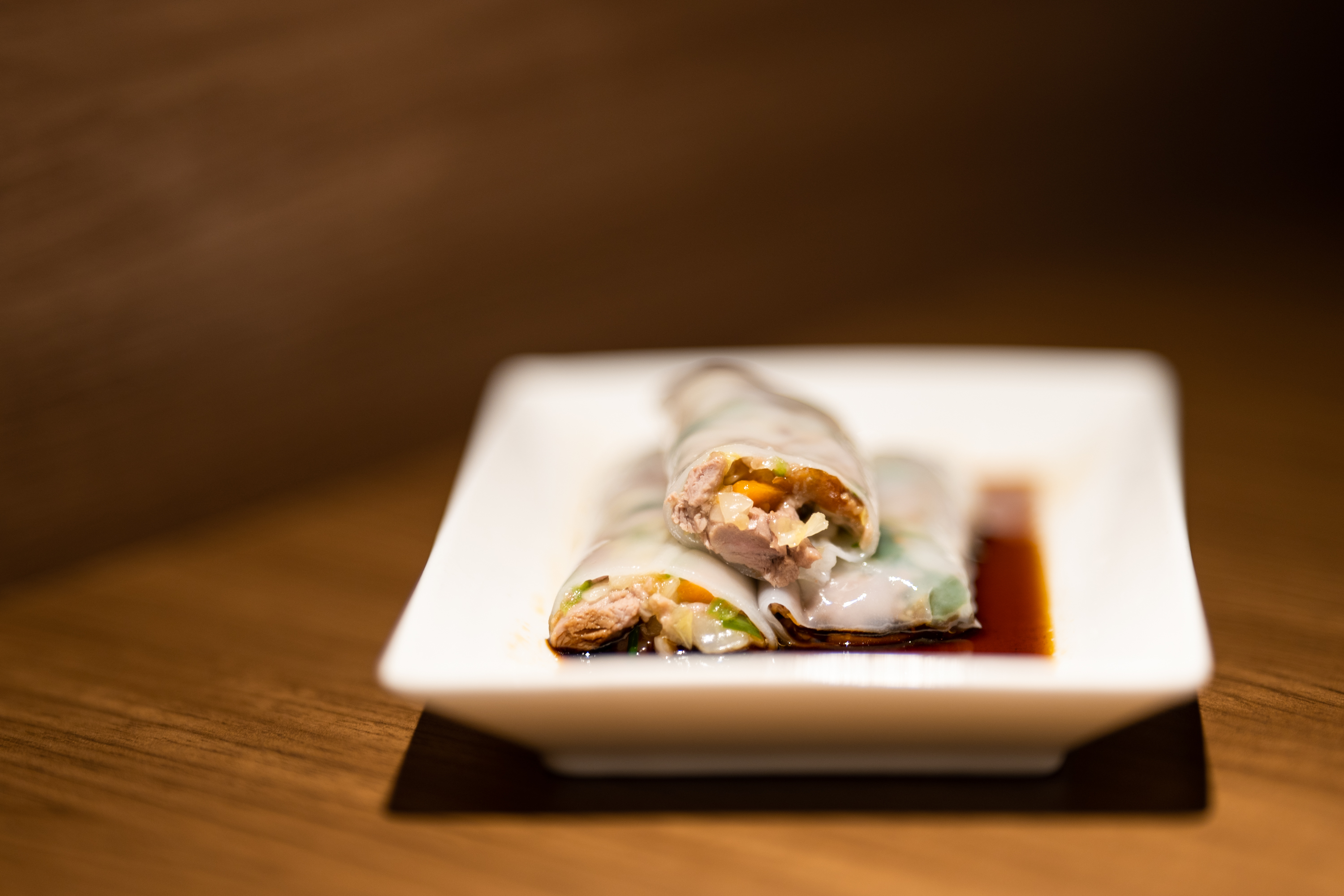 이대로 뭔가 아쉽다 싶어 주문한 돼지고기 창펀. 흡사 마포 갈비만두같은 비주얼인데, 돼지고기가 든 소를 쫄깃한 피에 감싸 소스와 함께 먹는 메뉴입니다. 하가우같은 가벼운 딤섬이라기보단 탕면과 함께 곁들이기 좋아 보이더군요. 하가우도 그랬지만 이 집의 쫄깃한 만두피는 어느 속재료와도 잘 어울리는 것 같아요.