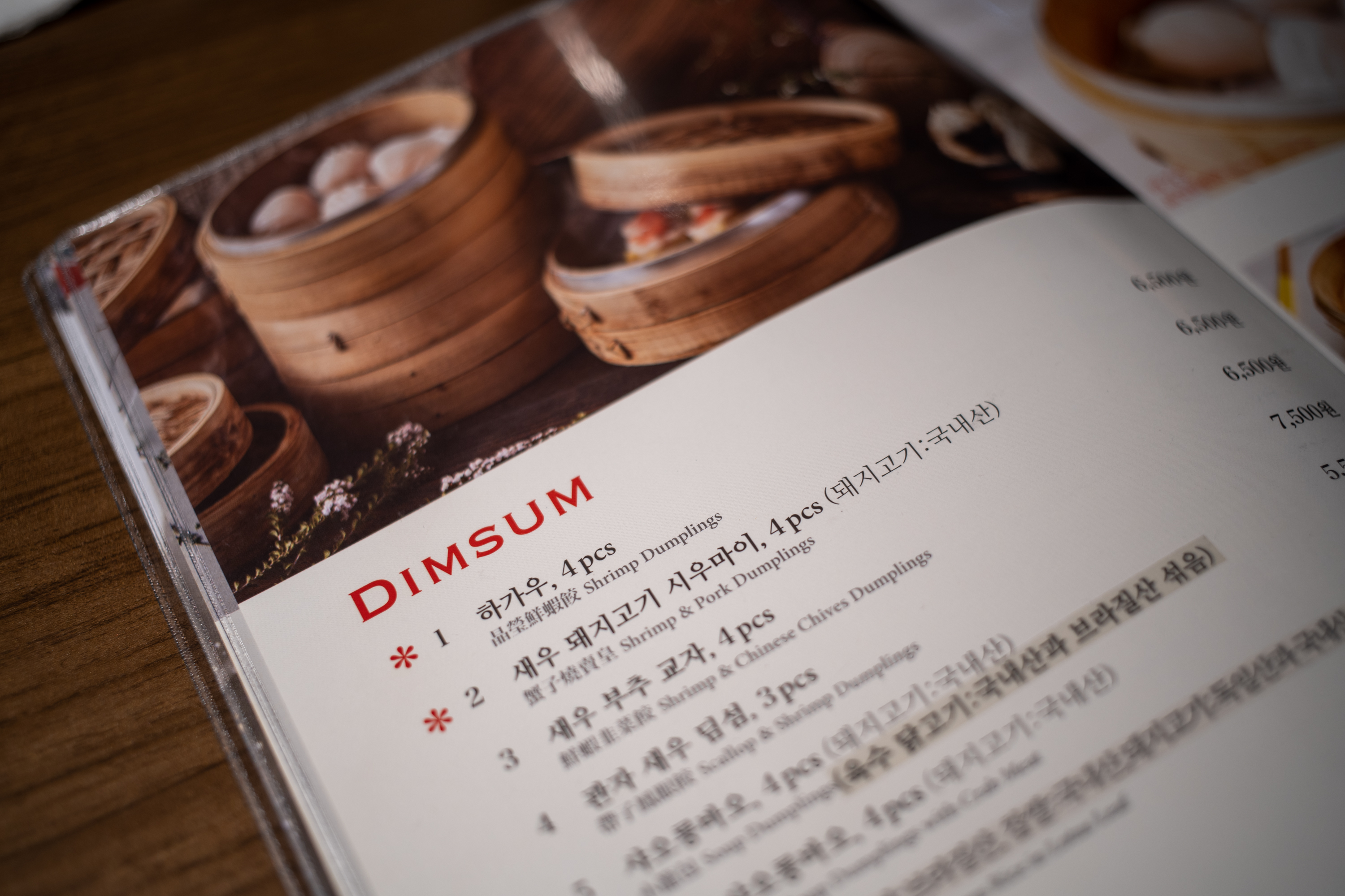 점심 메뉴 고르기 힘든 직장인, '아무거나'만 반복하는 결정 장애자라면 딤섬집은 난이도가 꽤 높습니다. 메뉴 특성상 종류가 많은 편이고 1인 1메뉴보단 다인 다메뉴로 식사하는 경우가 많거든요. 이럴 땐 보통 메뉴 앞에 별 또는 '인기' 표시가 된 메뉴들을 선택하면 참패는 면합니다. 저는 첫 방문때는 주로 그 식당의 대표 메뉴를 고르는 편이라 새우 딤섬인 하가우, 그리고 식사용 볶음면을 주문했습니다.