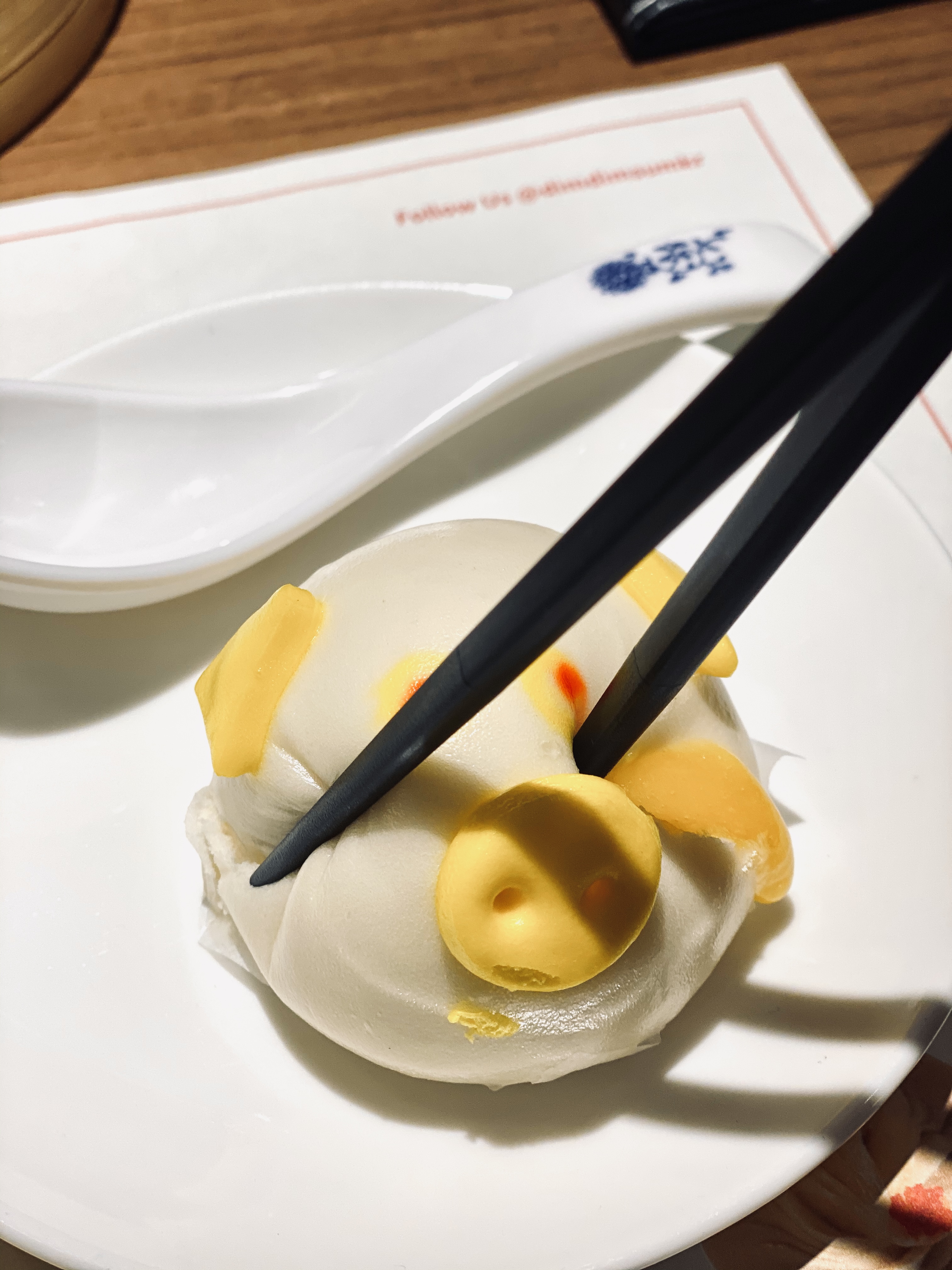 사실 이 집에서 가장 맘에 든 메뉴는 이 피기 커스터드 번입니다. 폭신한 빵에 안에는 커스터드 크림이 있는 딤섬인데, 찐빵에 슈크림이 든 메뉴라고 생각하면 비슷하겠어요. 무엇보다 이 메뉴는 귀여운 비주얼이 눈과 마음을 사로잡습니다. 이날은 품절로 주문하지 못해서 다음 방문때 먹었어요.