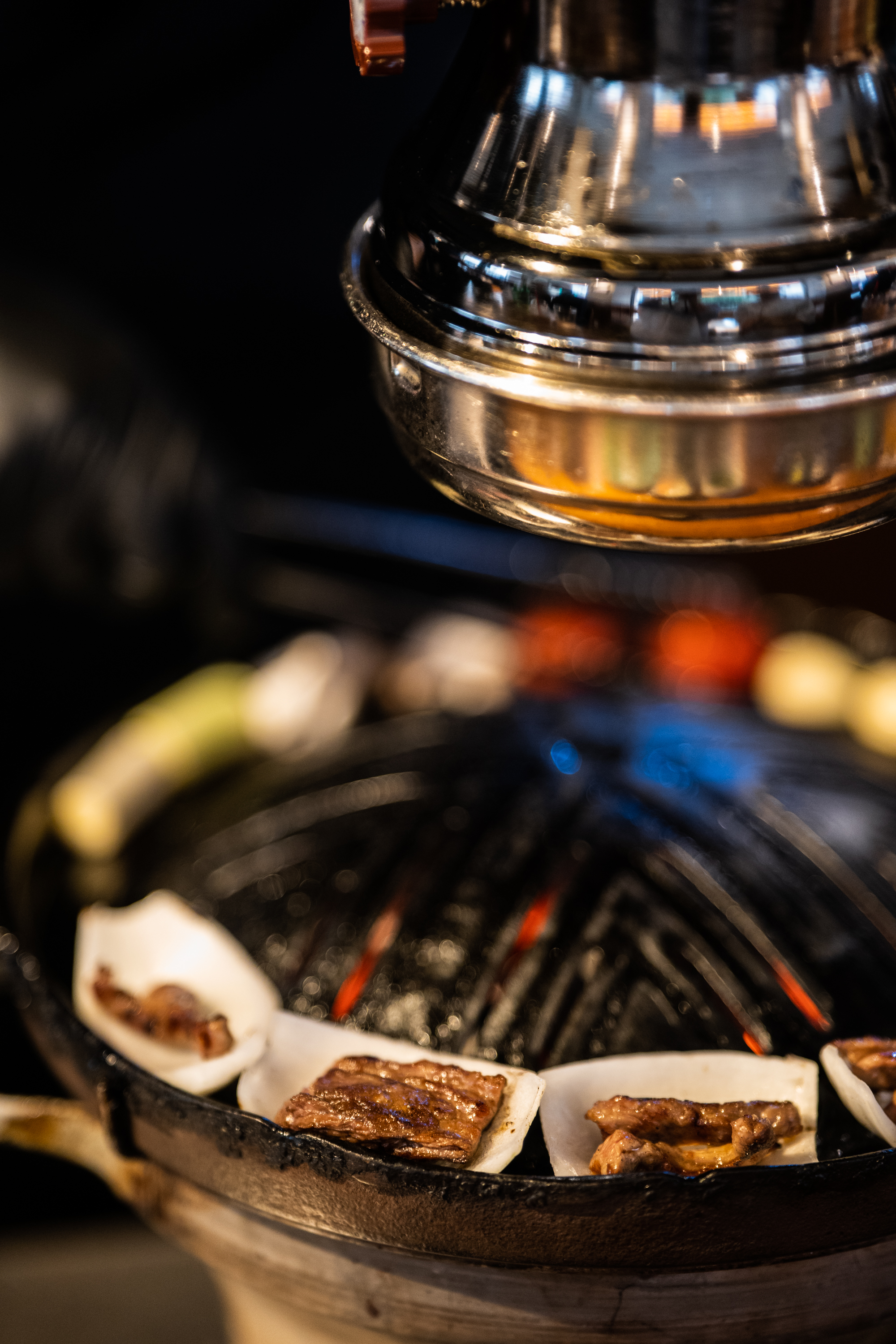 양고기는 굽는 모습이 정말 아름답죠. 그래서 식사 시작부터 끝까지 약 한 시간 반 동안 쉬지 않고 사진을 찍었습니다. 눈치가 좀 보이긴 했지만서도 이런 기회가 언제 또 오겠어요.