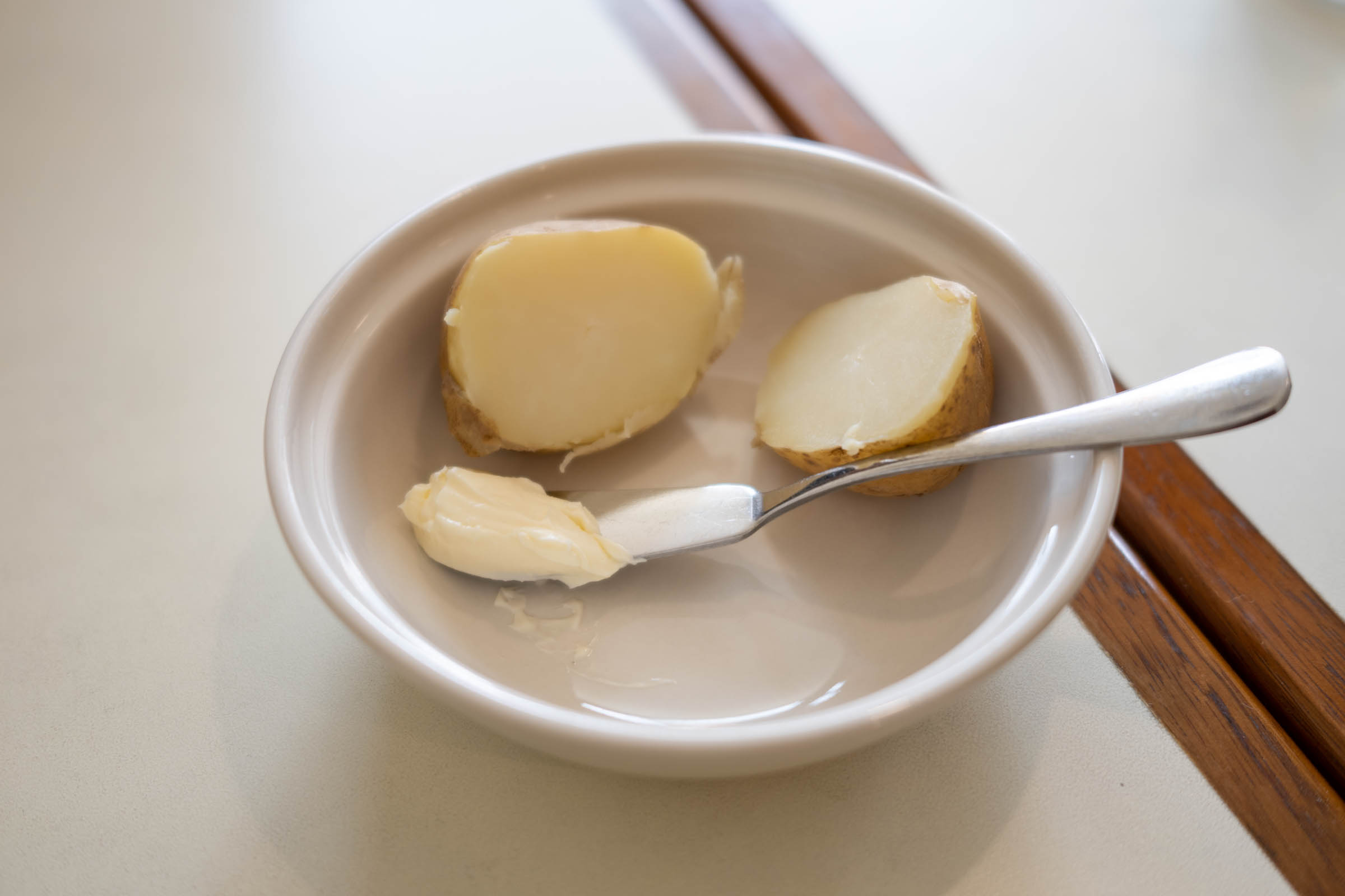 식전 메뉴로 나오는 찐감자. 잘 삶은 감자는 식감이 좋고 함께 나오는 마요네즈(?)-마가린 같기도 하고 사실 잘 모르겠어요-와 함께 먹으면 별미입니다. 밥 먹기 전에 식욕 돋우기 좋아요. 사이드 메뉴로 감자 크로켓이 있는데, 본 메뉴의 양이 적은 편이 아닌데다 식전 감자까지 있으니 이것저것 시켰다간 배가 너무 불러요. 메뉴 선택에 참고하세요.